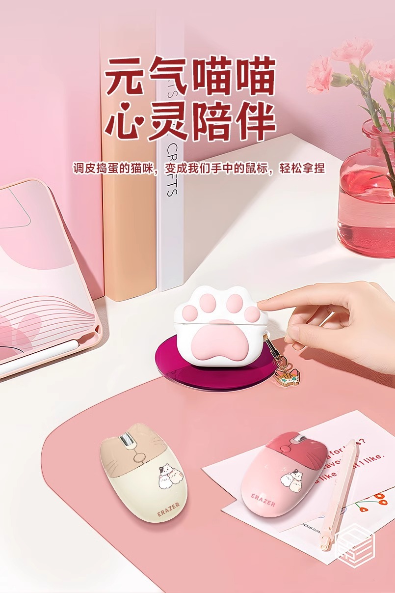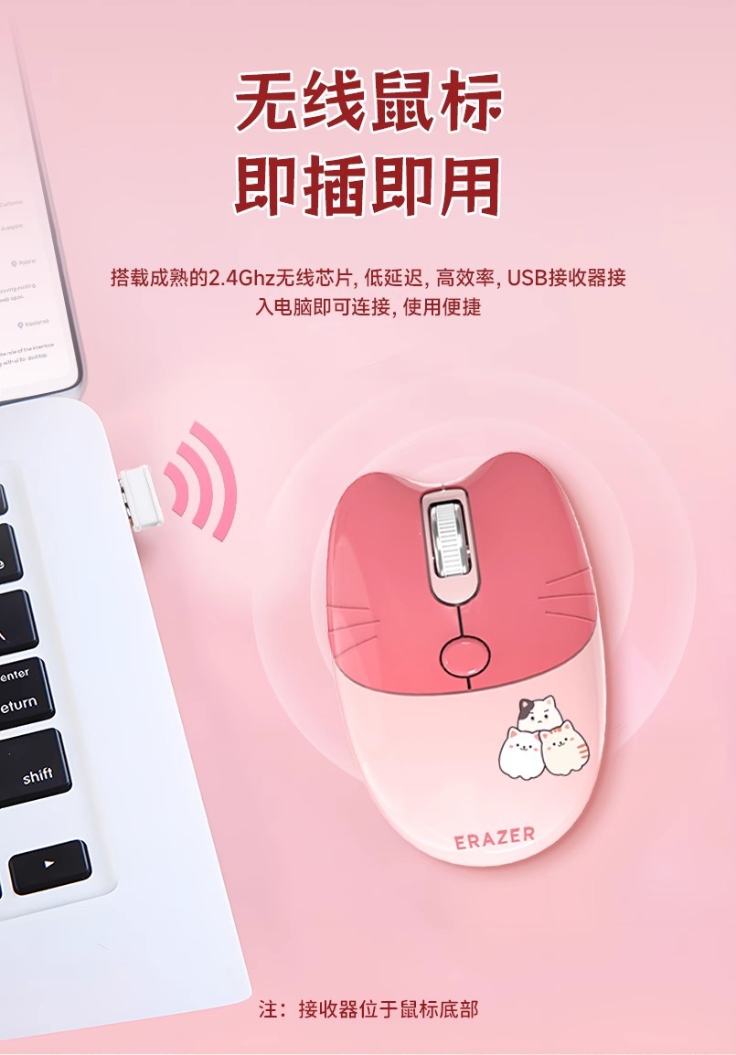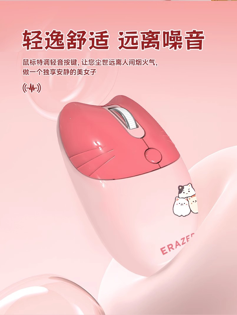 전원 무선 마우스 소녀 높은 색상 값 귀여운 핑크 야옹 귀여운 만화 음소거 사무실 컴퓨터 마우스