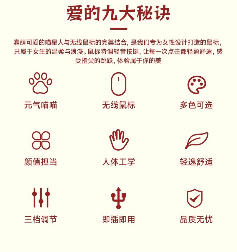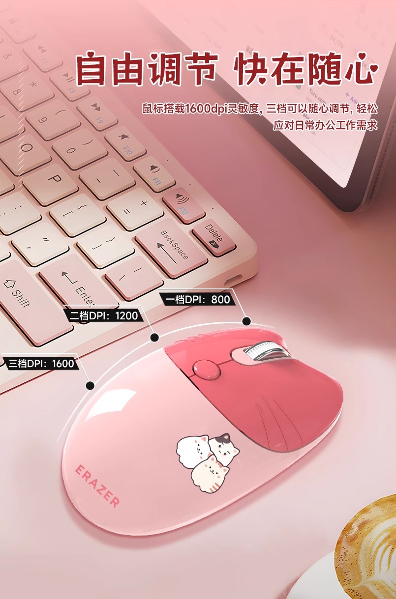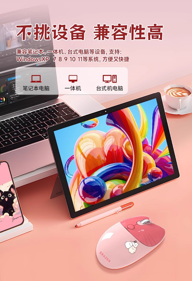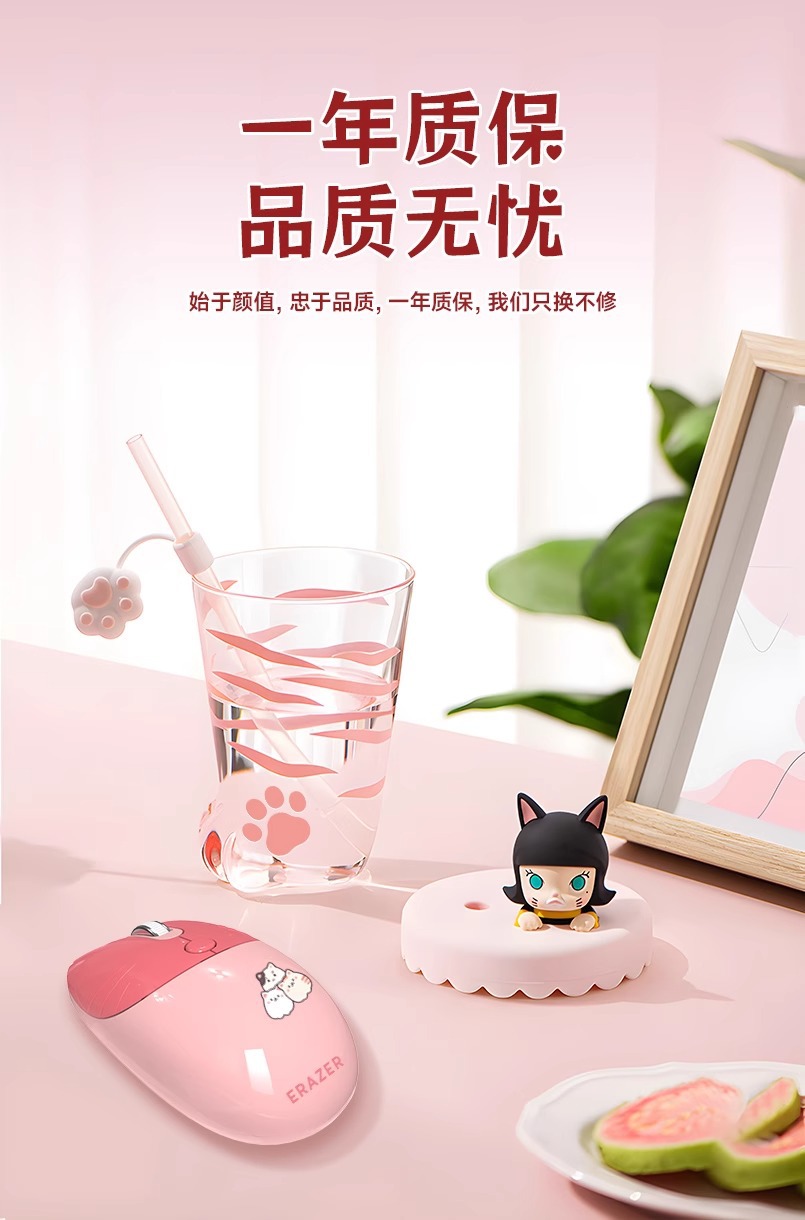 전원 무선 마우스 소녀 높은 색상 값 귀여운 핑크 야옹 귀여운 만화 음소거 사무실 컴퓨터 마우스