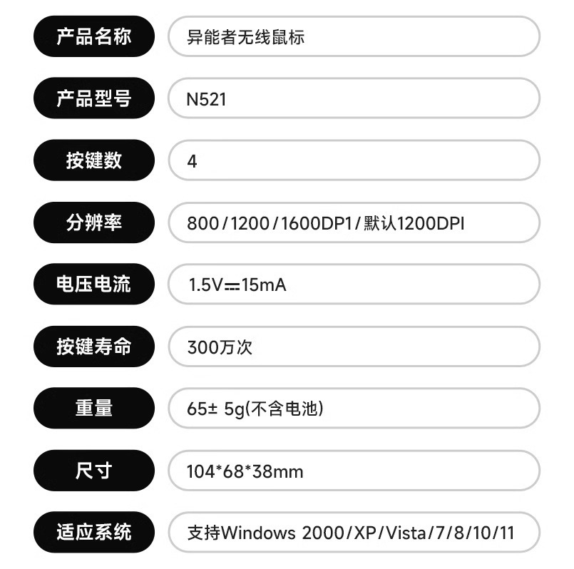 • 무선 마우스 N521 고양이 귀 밀크티 화이트