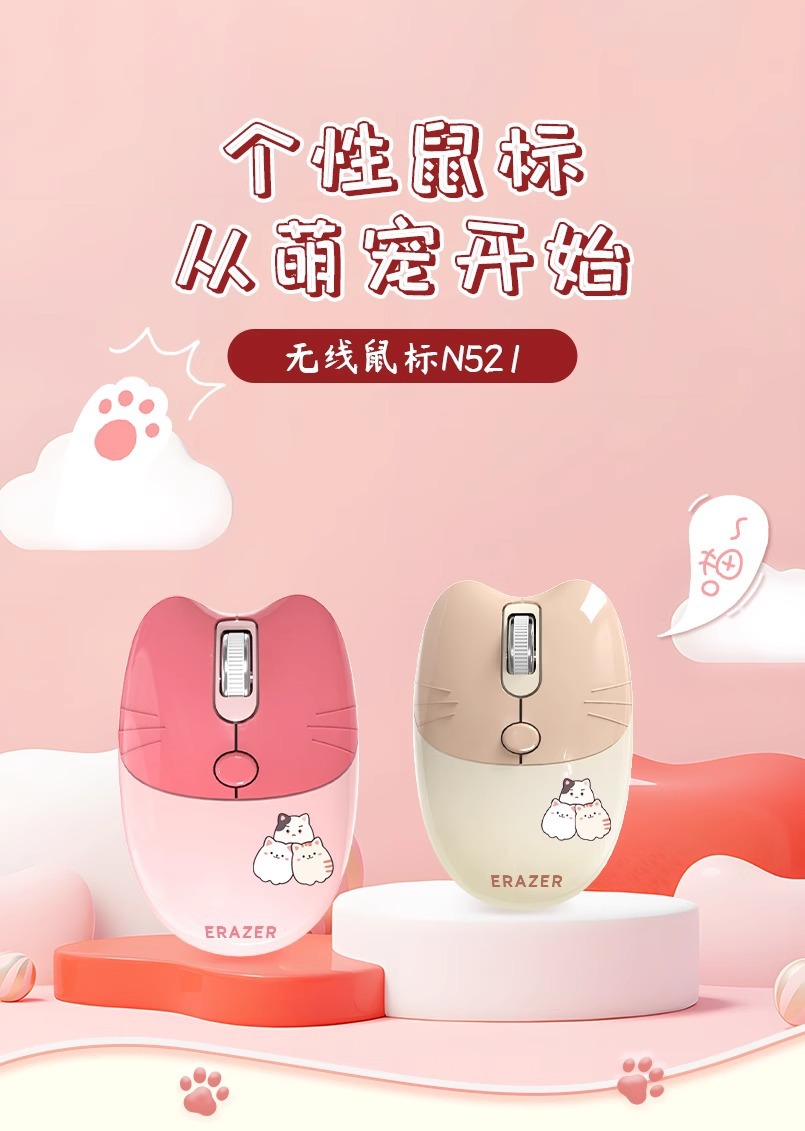 • 무선 마우스 N521 고양이 귀 복숭아 가루