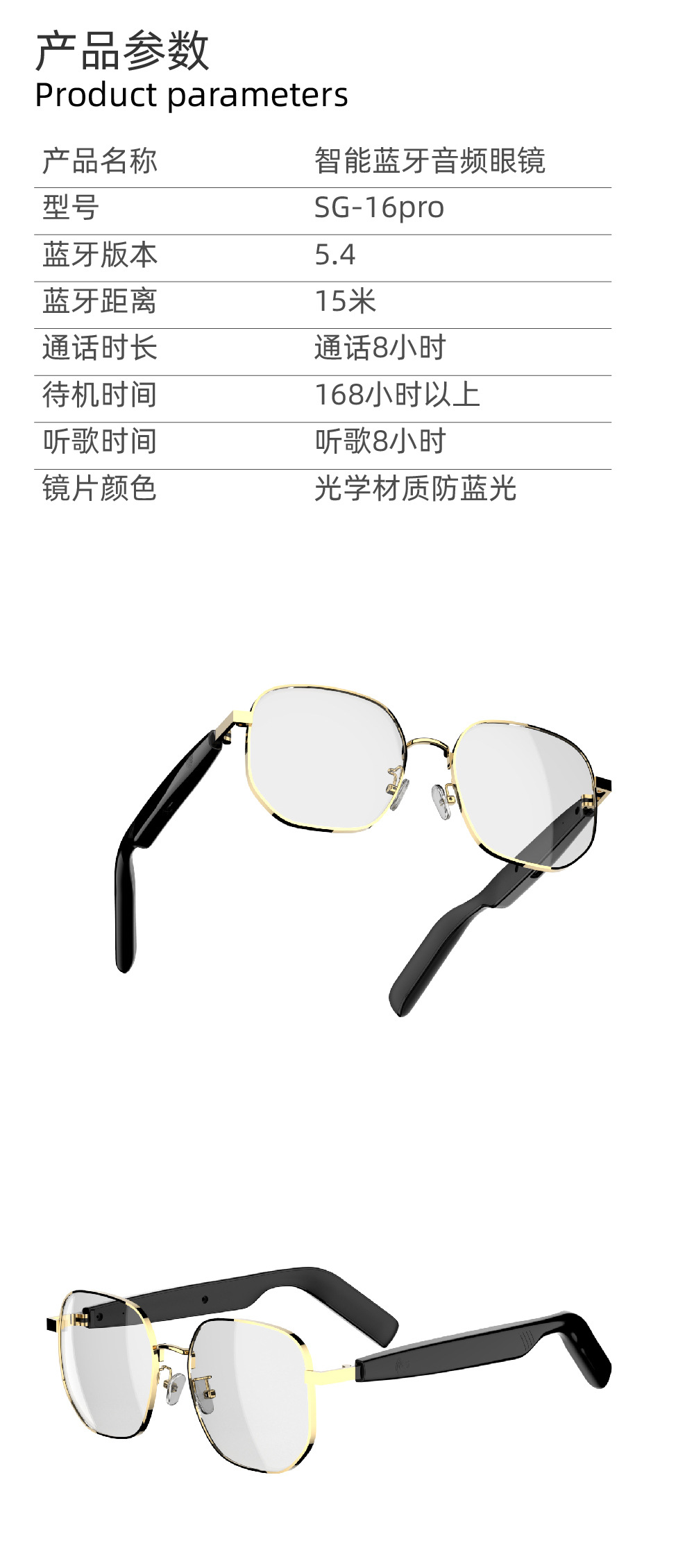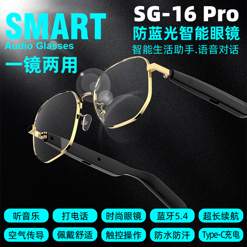 SG-16PRO 블루투스 안경 음악 안경 방향 오디오 안경 안티 블루 라이트 TWS 스마트 안경