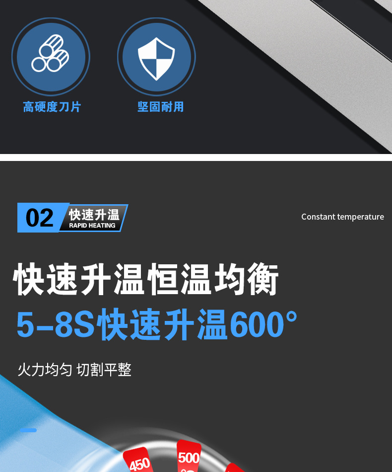 • 300W [온도 조절 가능] + 스페이드 모양의 전기 가열 칼