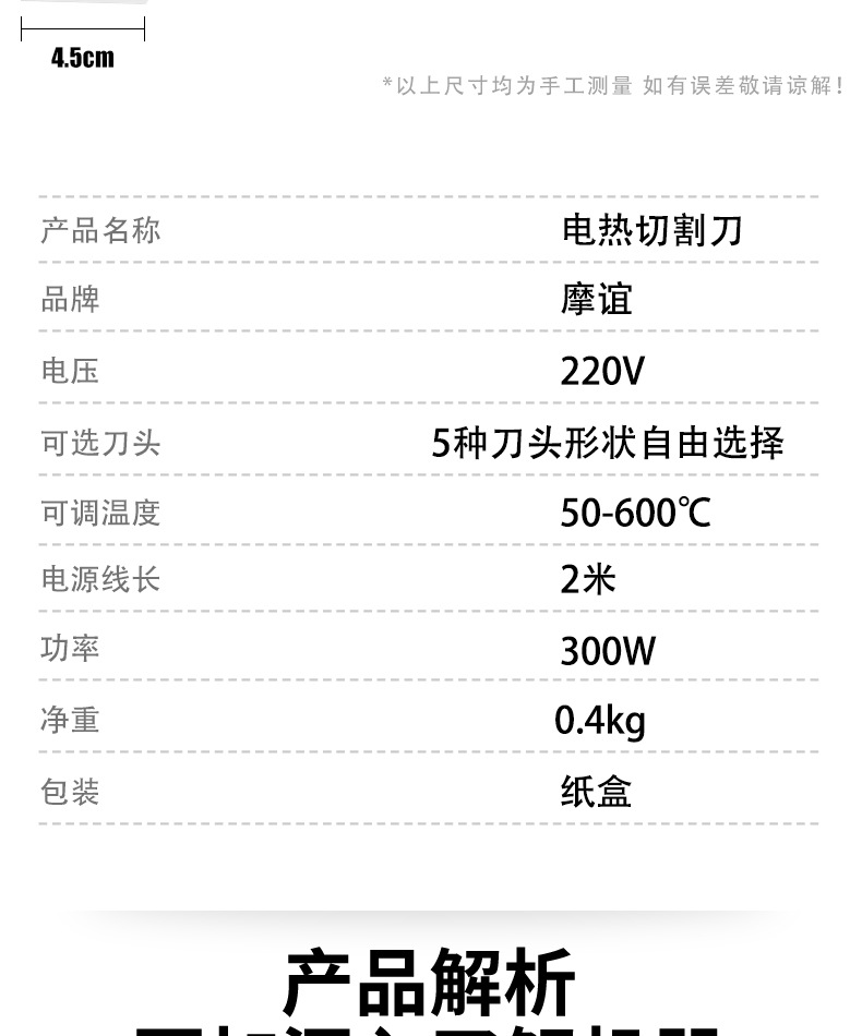 • 300W [온도 조절 가능] + 10cm 전기 가열 칼