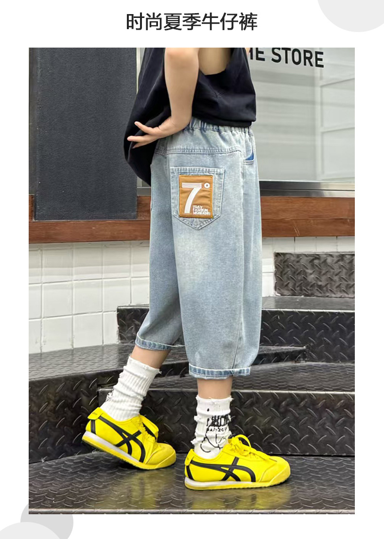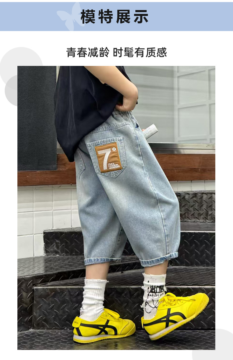 아동복 소년 여름 반바지 바지 2025 새로운 여름 얇은 중간 길이 바지 중 및 큰 어린이를위한 유행 청바지스토어 가기