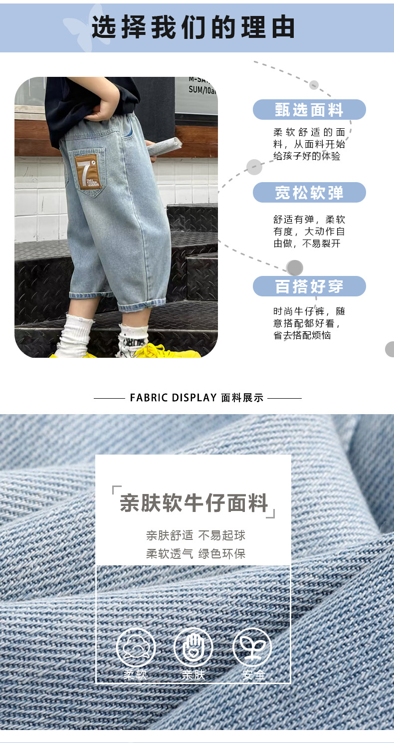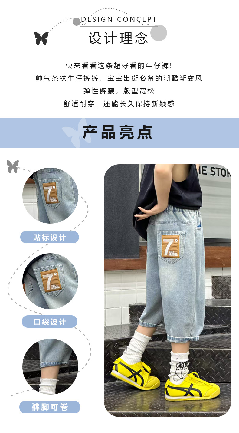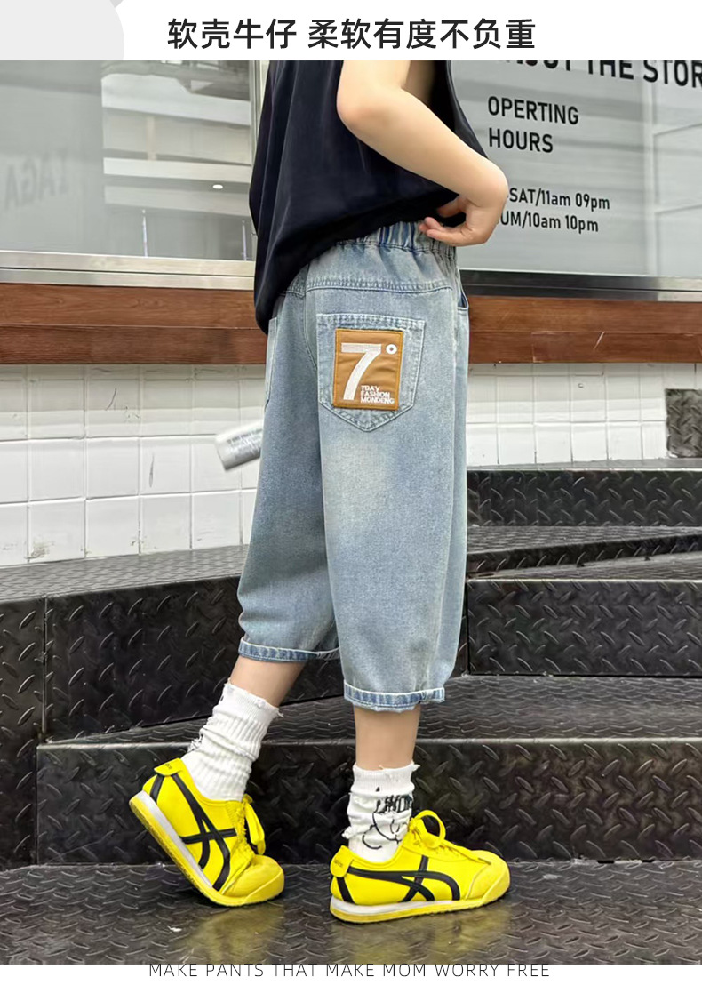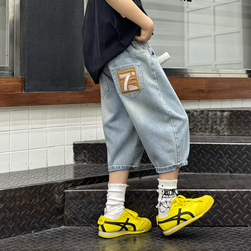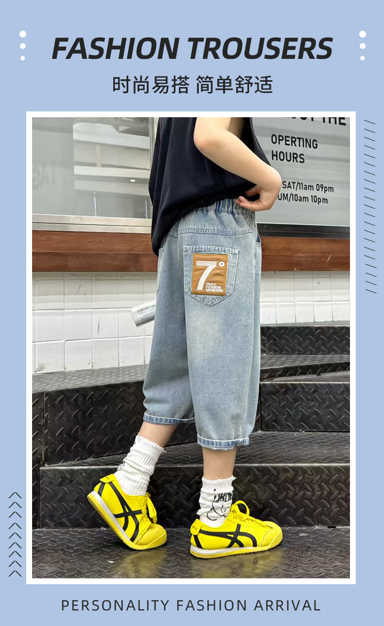 아동복 소년 여름 반바지 바지 2025 새로운 여름 얇은 중간 길이 바지 중 및 큰 어린이를위한 유행 청바지