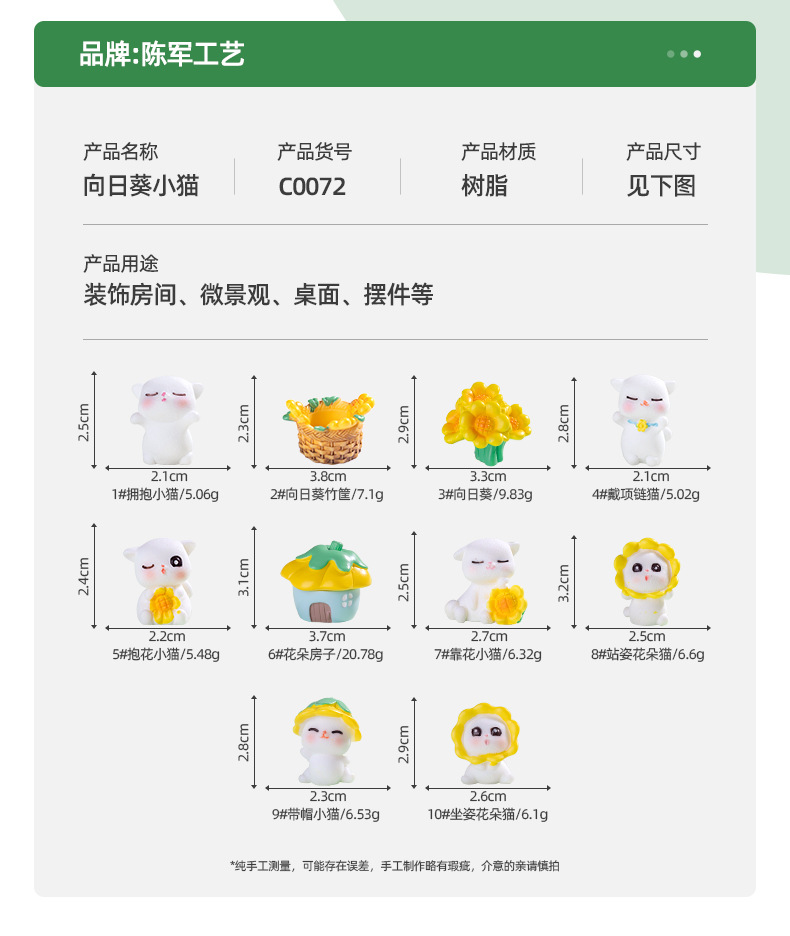 귀여운 해바라기 고양이 인형 정원 조경 DIY 장식 교수형 액세서리 마이크로 풍경 미니 장식품스토어 가기
