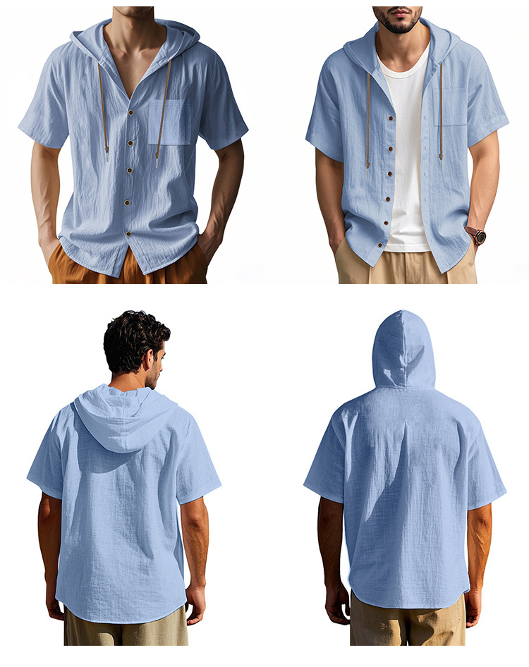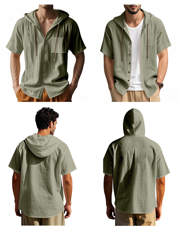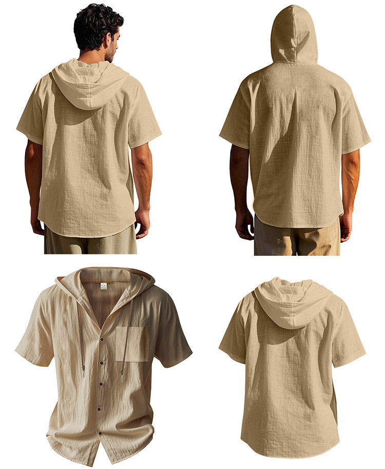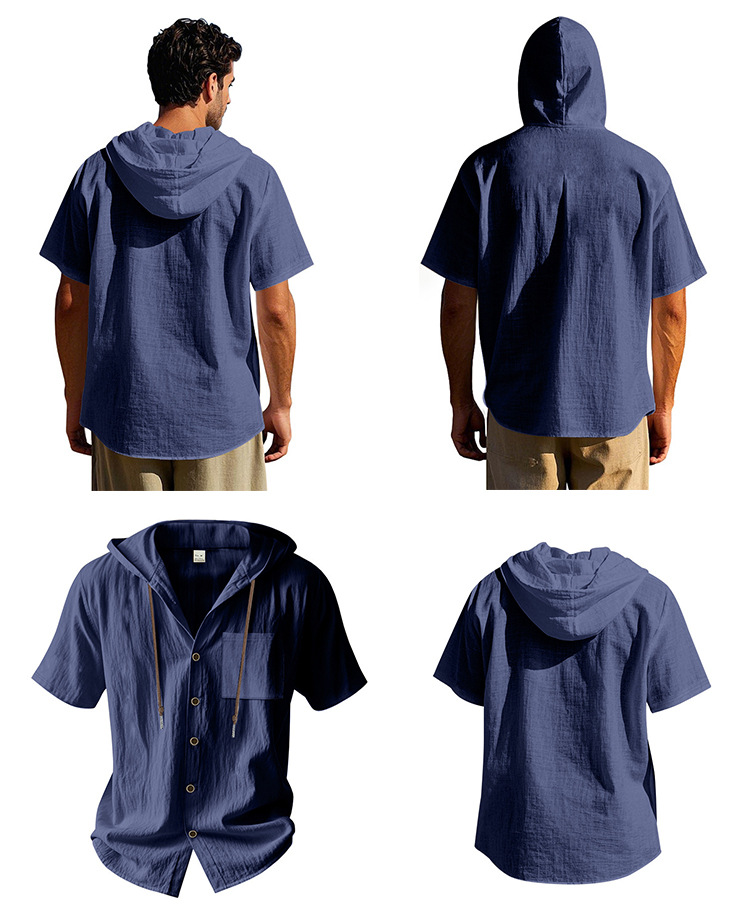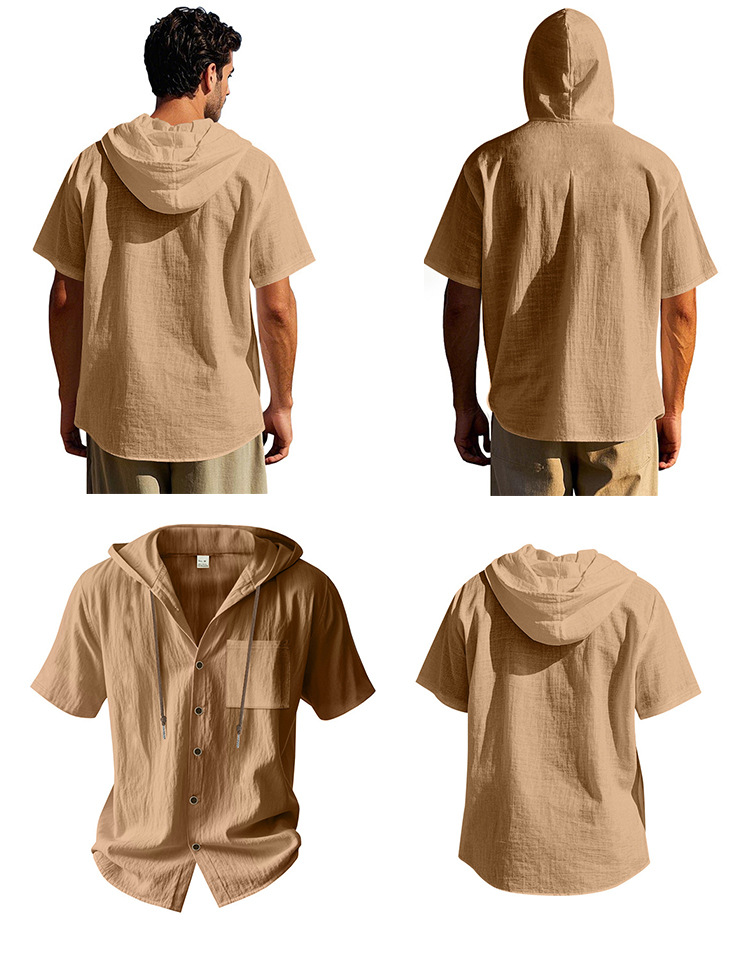 유럽과 미국의 국경 간 남성 캐주얼 반팔 셔츠 끈 버튼 포켓 카디건 셔츠 트렌디 루즈 비치 티셔츠