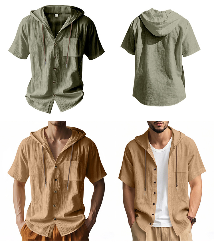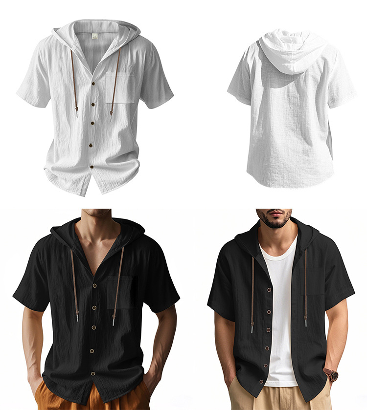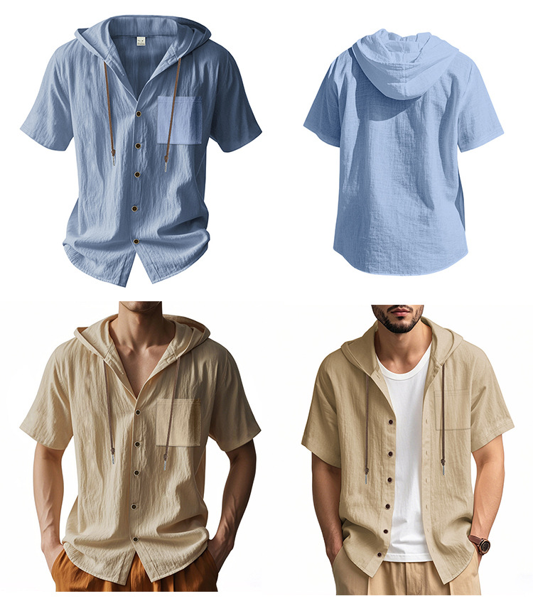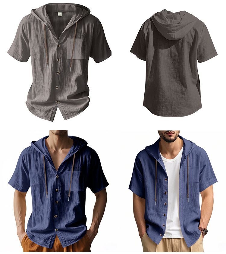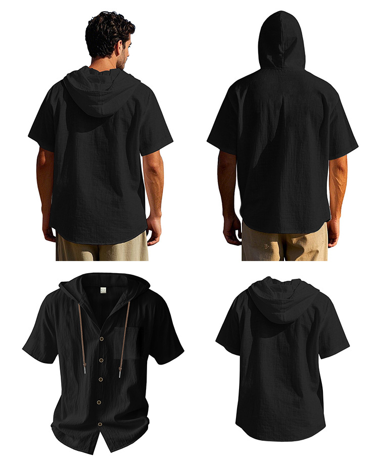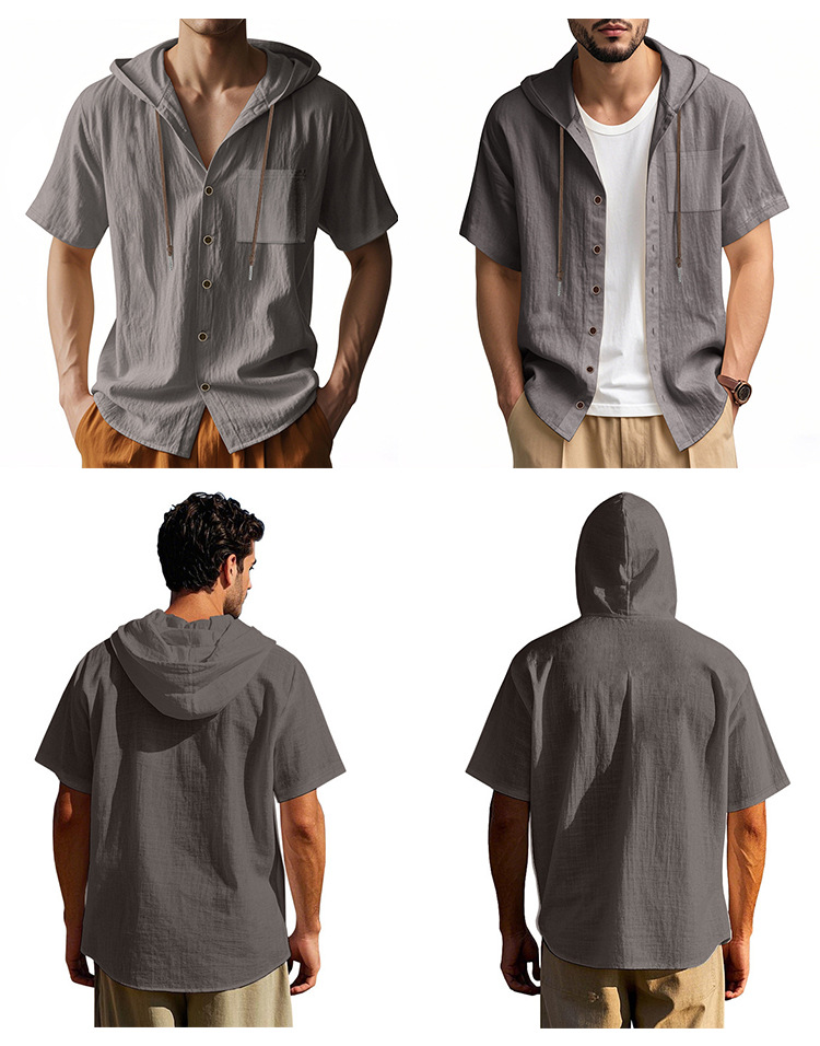 유럽과 미국의 국경 간 남성 캐주얼 반팔 셔츠 끈 버튼 포켓 카디건 셔츠 트렌디 루즈 비치 티셔츠