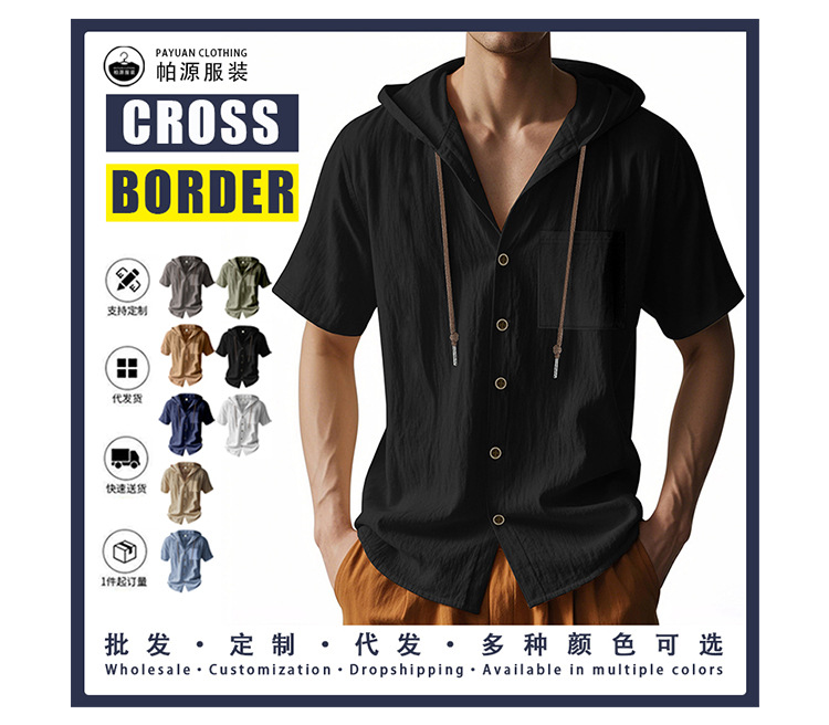 유럽과 미국의 국경 간 남성 캐주얼 반팔 셔츠 끈 버튼 포켓 카디건 셔츠 트렌디 루즈 비치 티셔츠스토어 가기