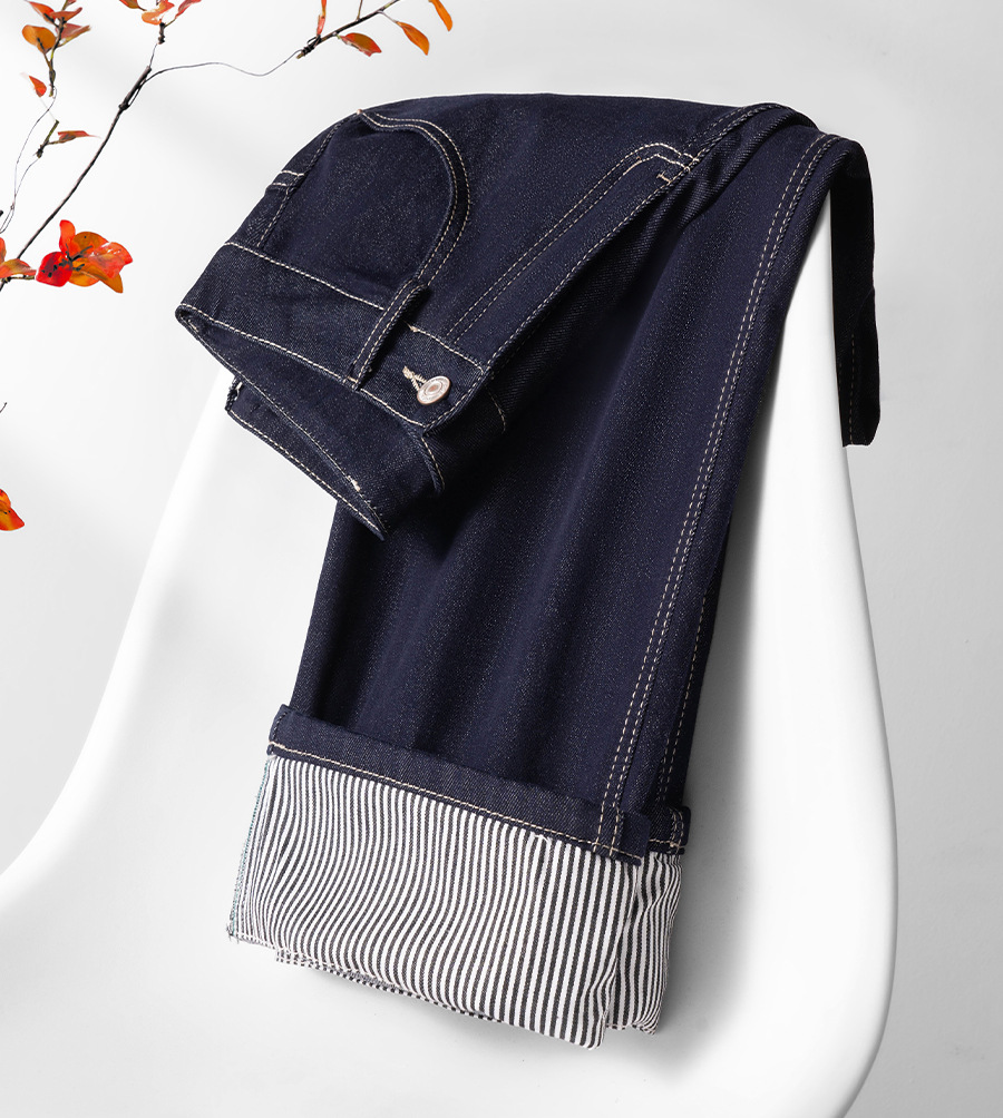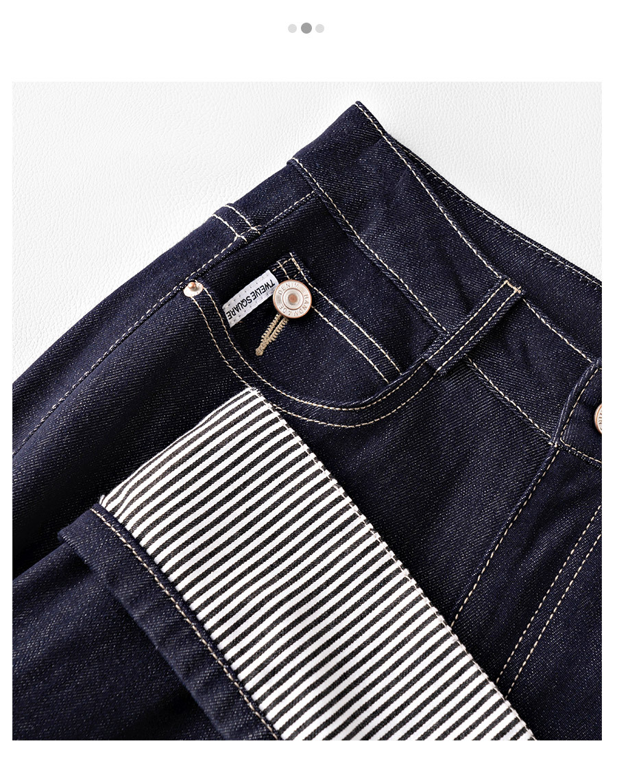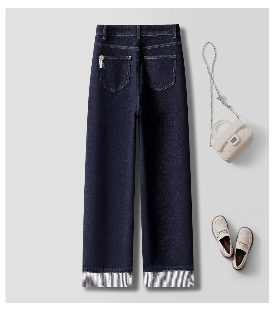 다크 블루 턴 업 스트레이트 텐셀 청바지 여자 2025 년 봄 새로운 높은 허리 좁은 넓은 다리 바지 자른 바지스토어 가기