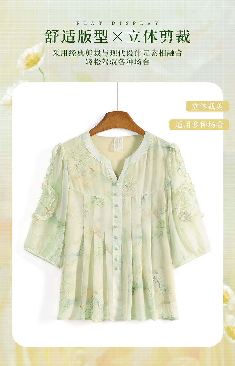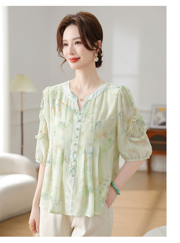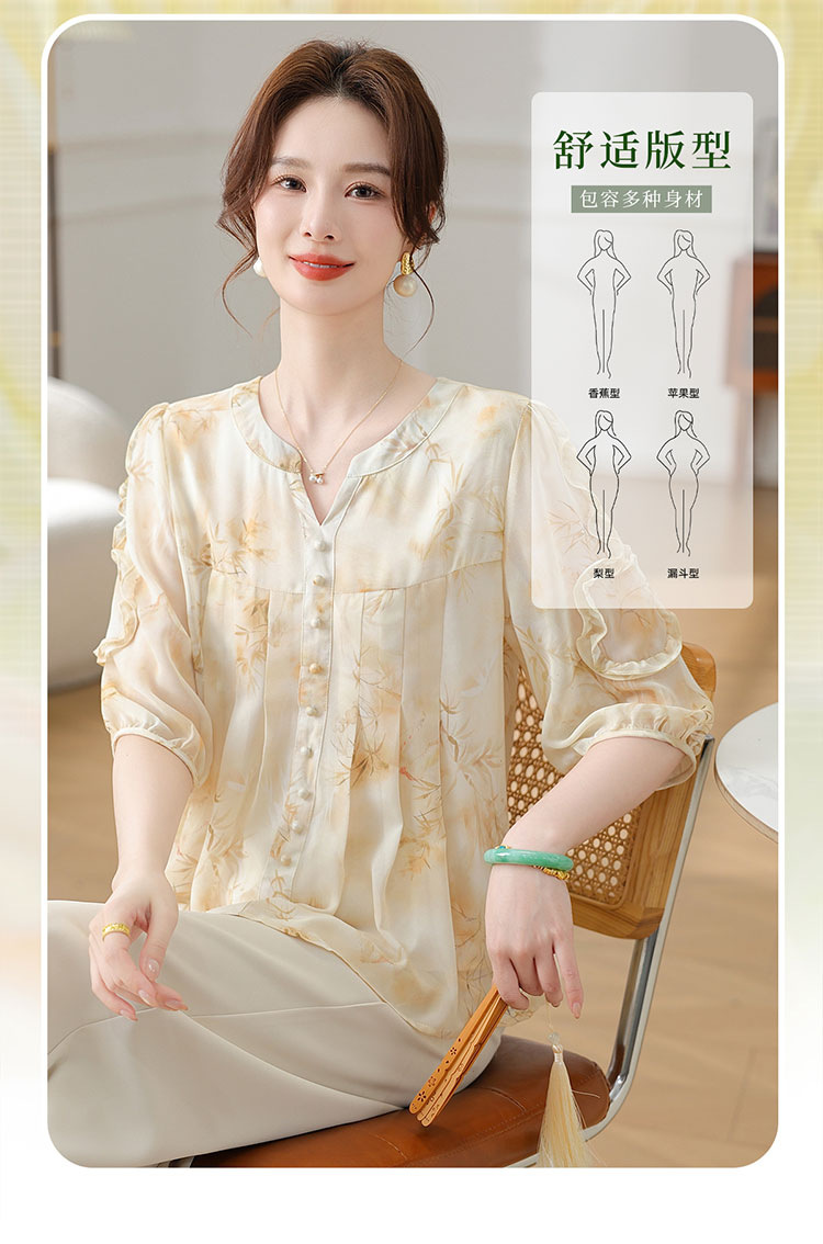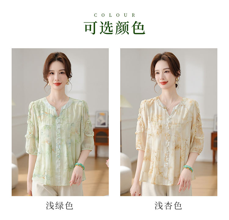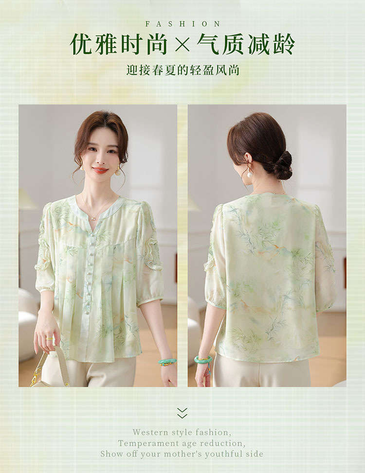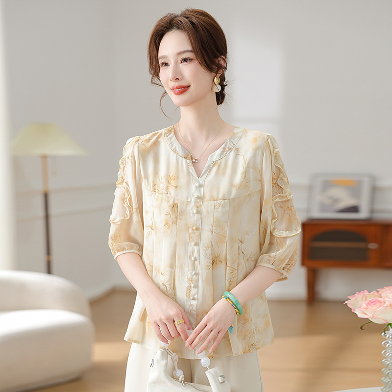 여름 쉬폰 셔츠, 티셔츠, 가볍고 달콤하며 40, 50대를 위한 연령 감소 의류, 가볍고 꽃무늬, 루즈함