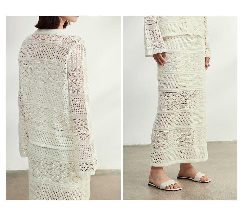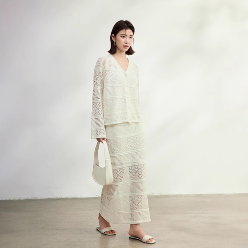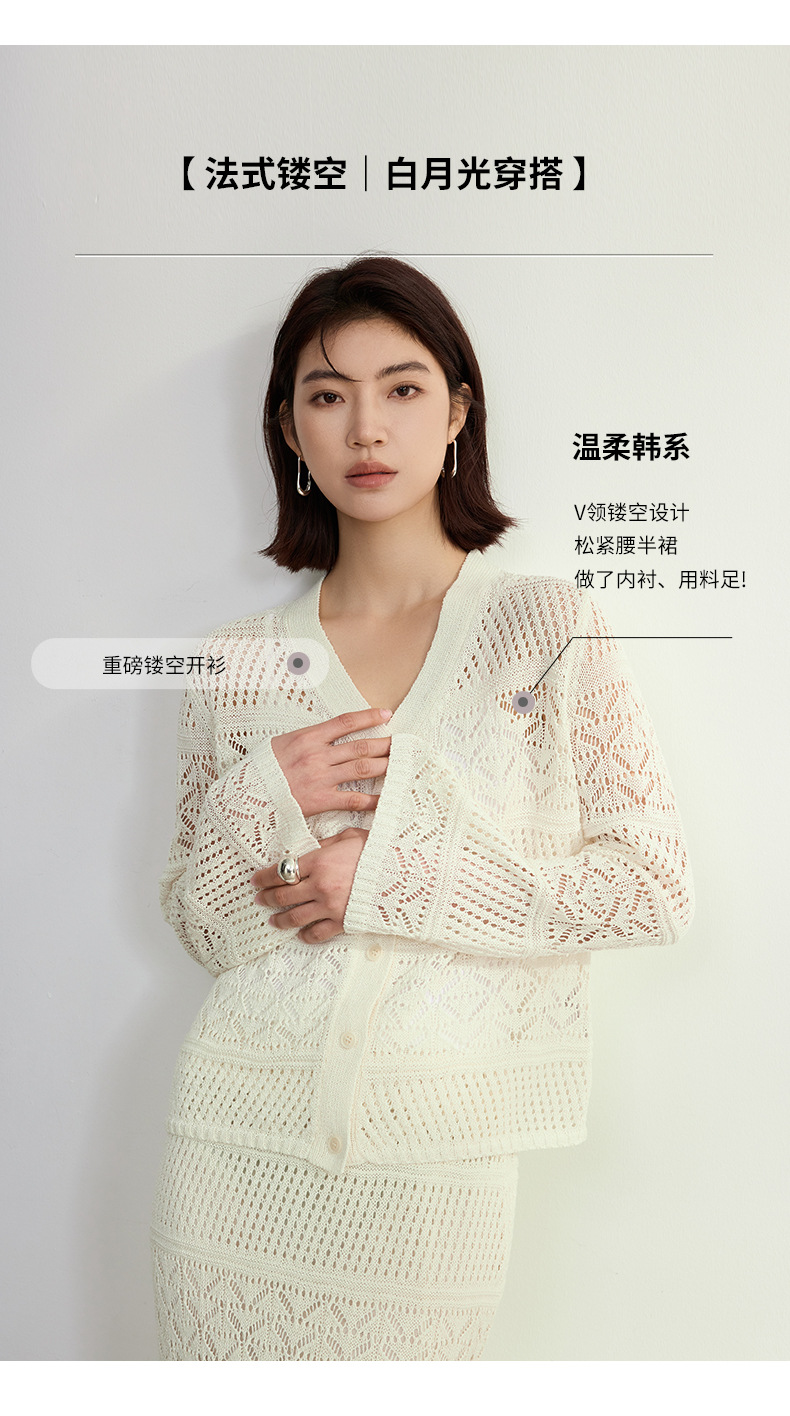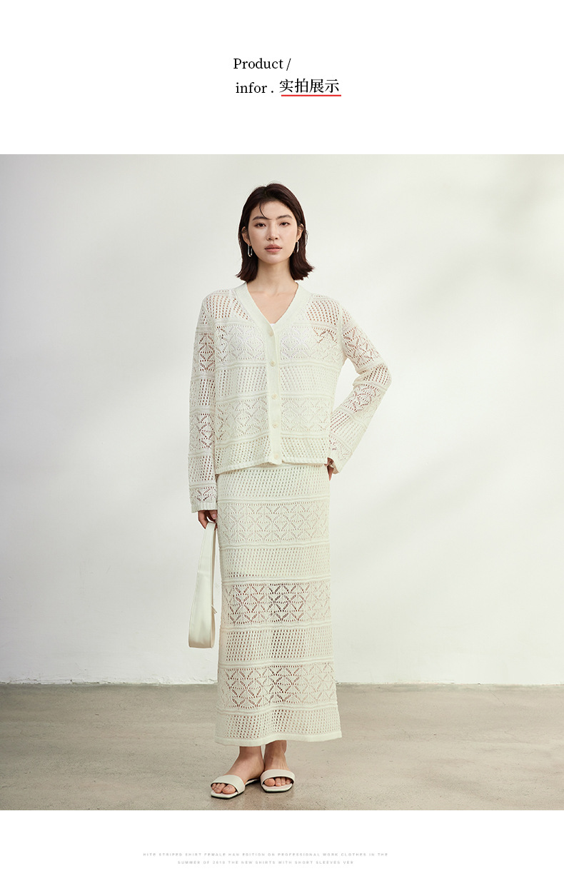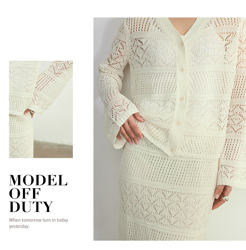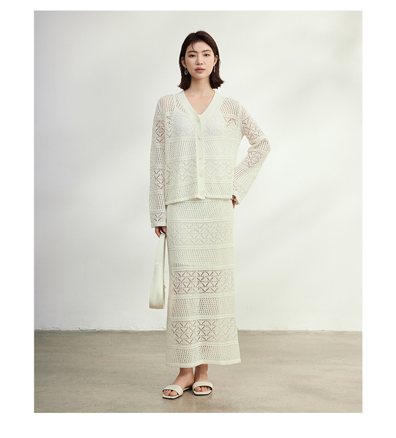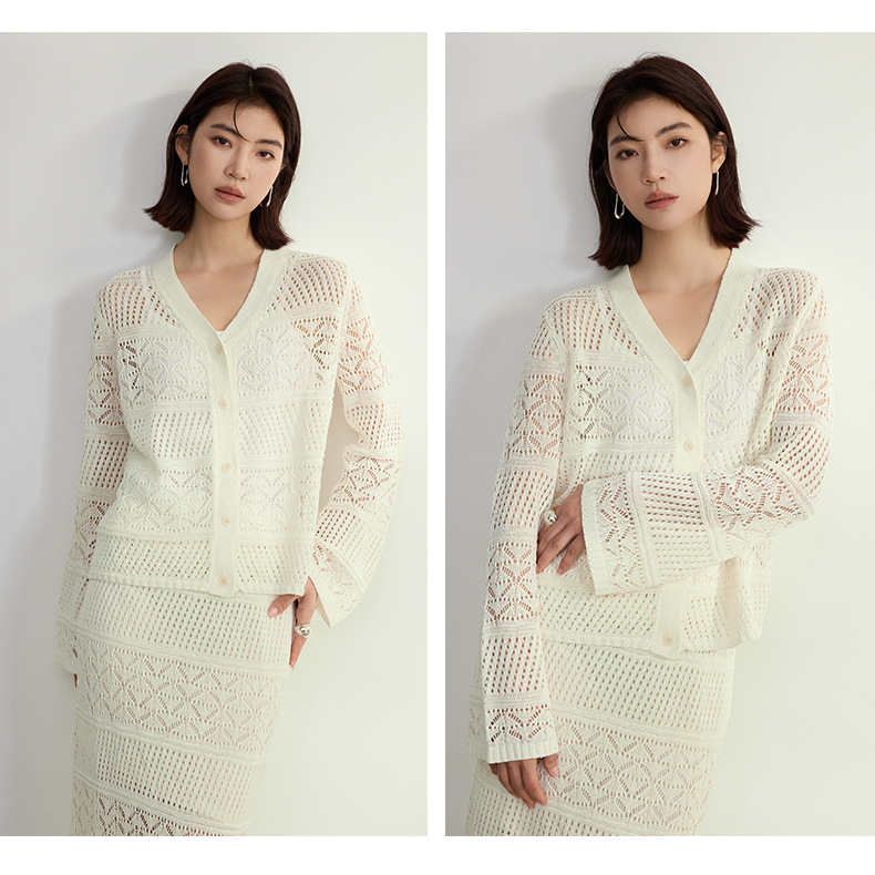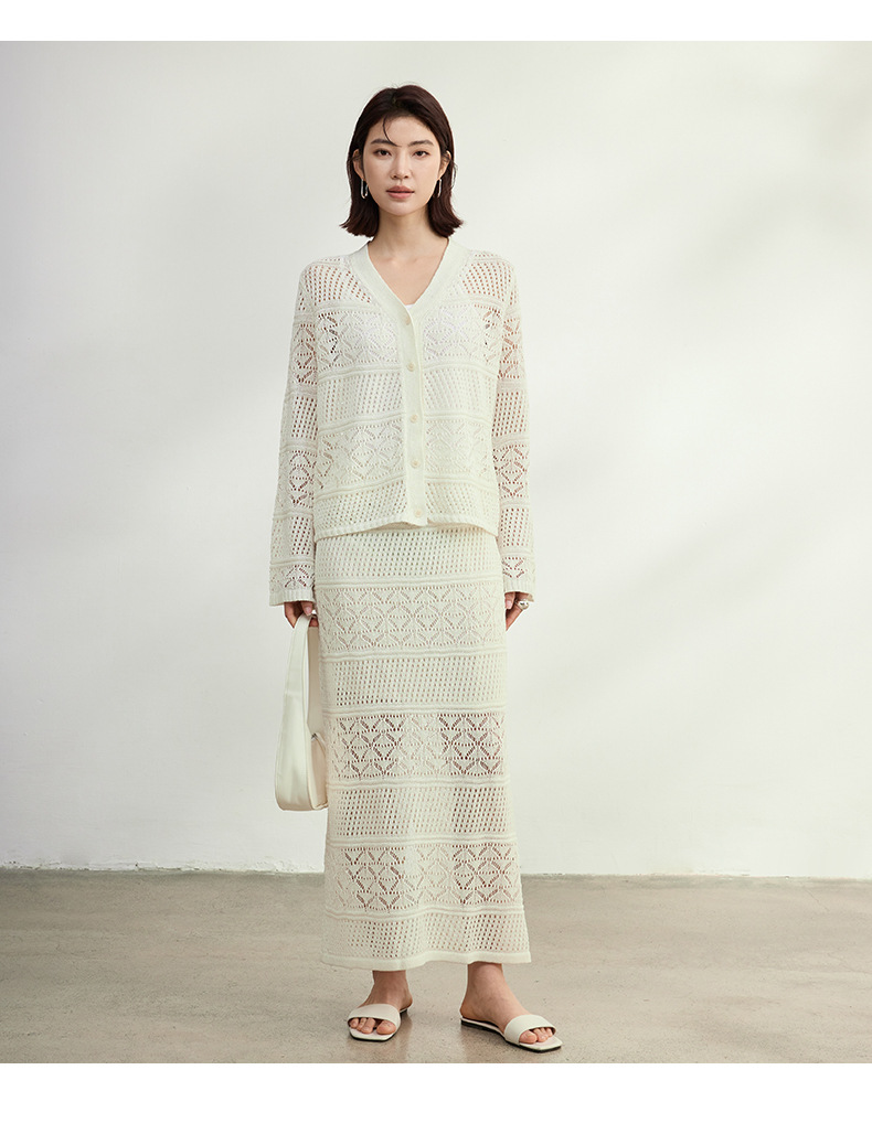 멀버리 실크와 일본산 종이실로 만든 브이넥 니트 가디건과 여성용 스커트 투피스 세트, 새로운 초봄 패션 세트스토어 가기