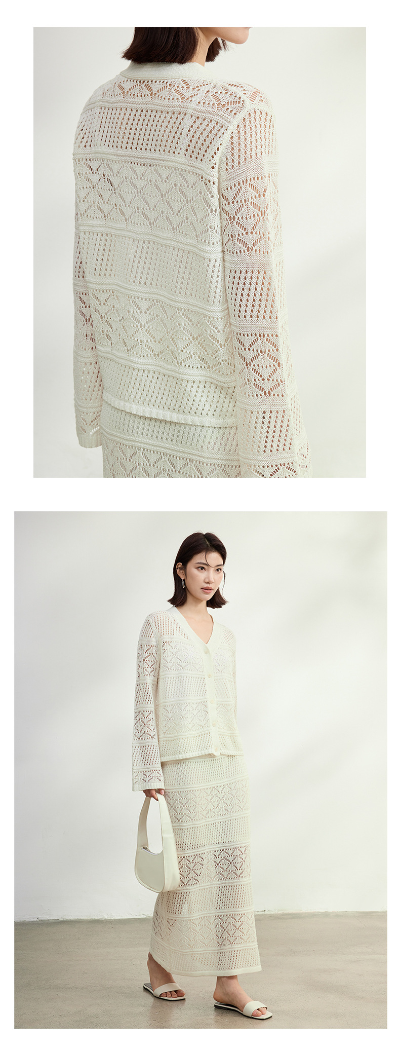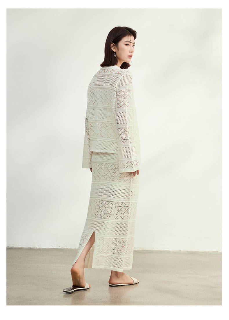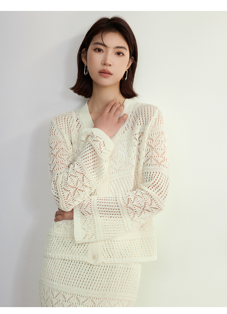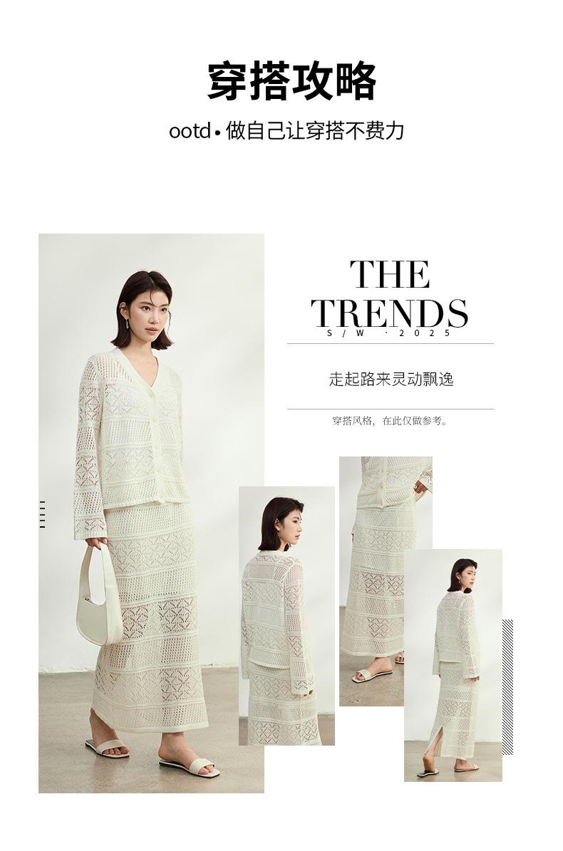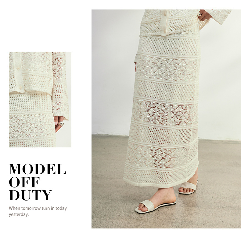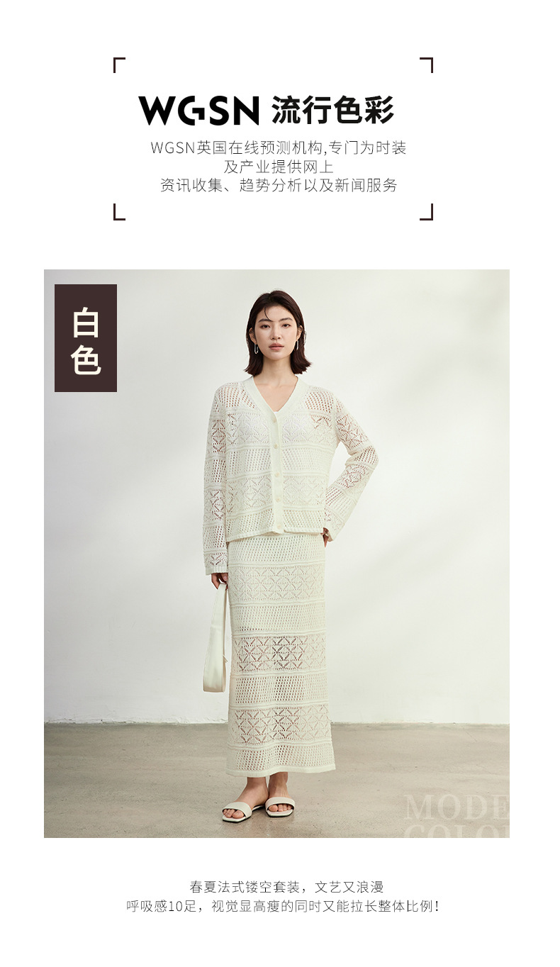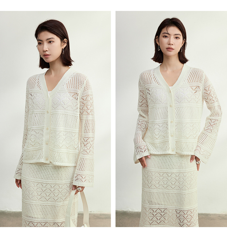 멀버리 실크와 일본산 종이실로 만든 브이넥 니트 가디건과 여성용 스커트 투피스 세트, 새로운 초봄 패션 세트스토어 가기
