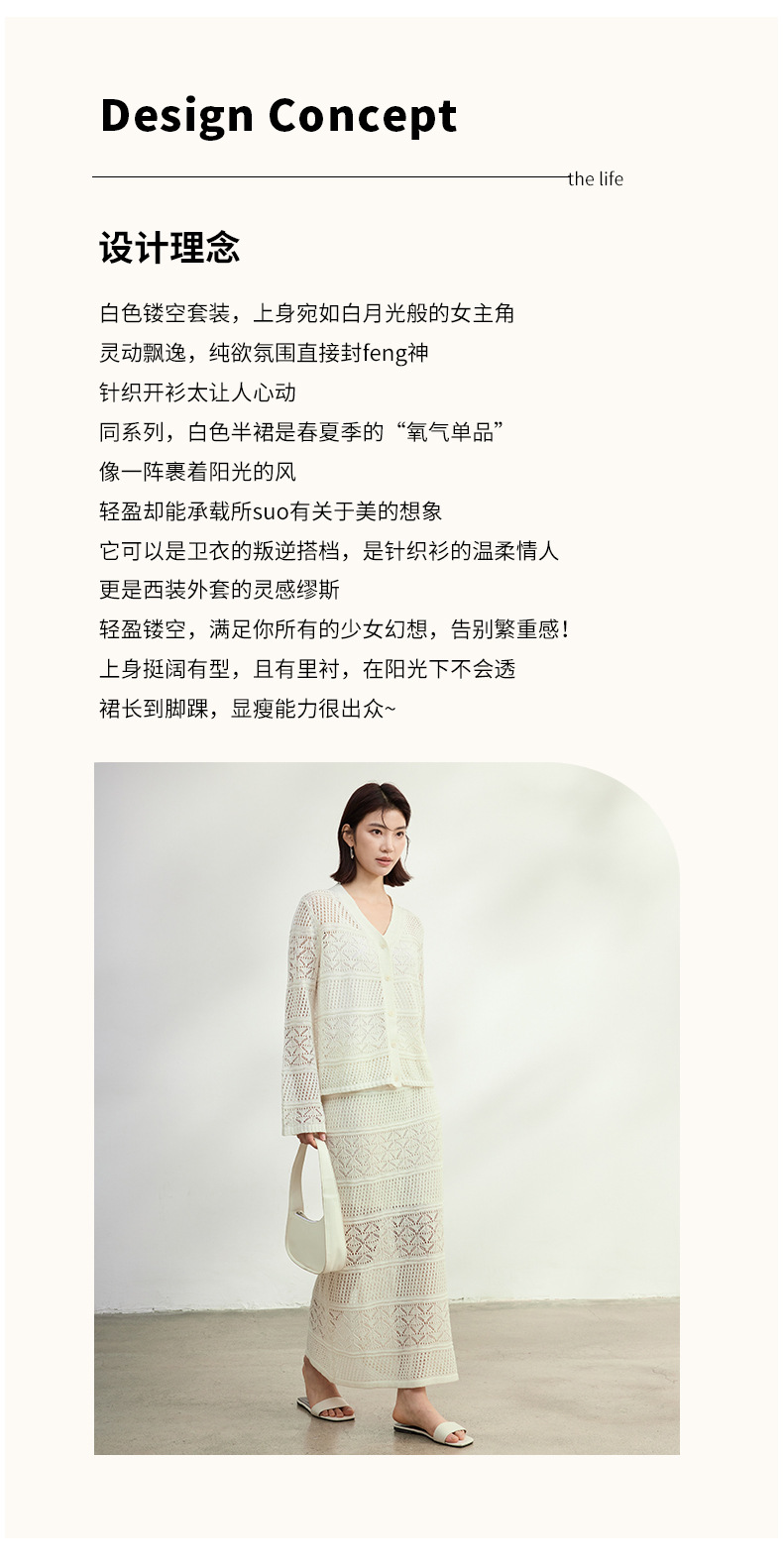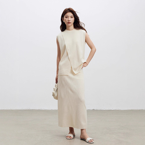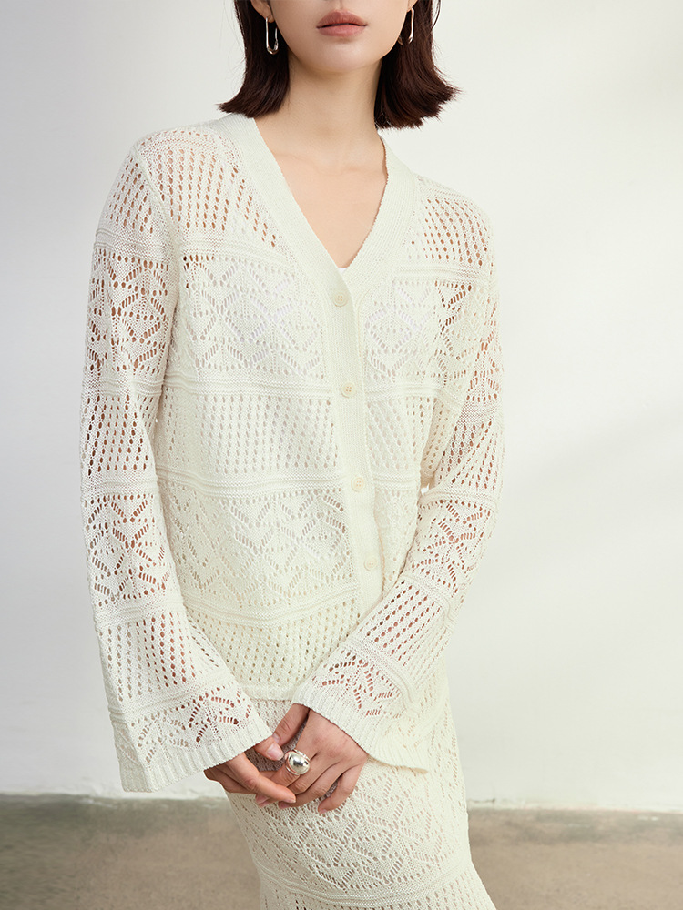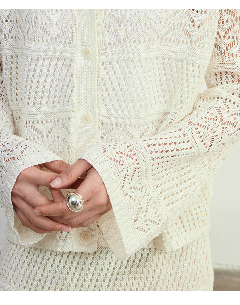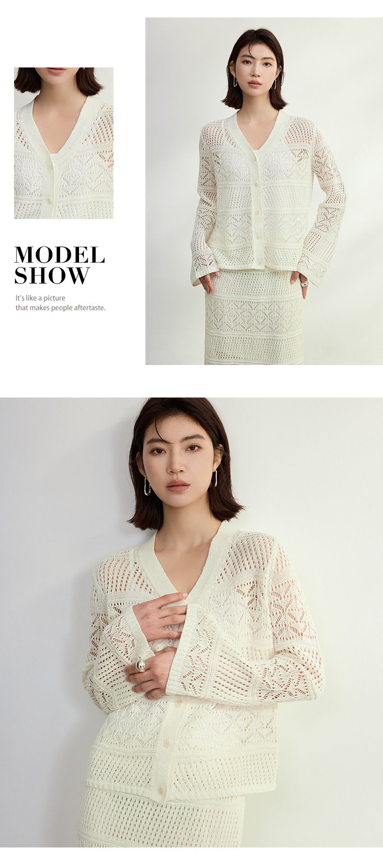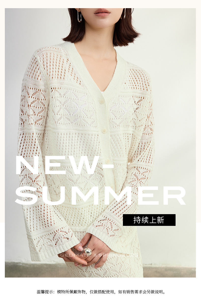 멀버리 실크와 일본산 종이실로 만든 브이넥 니트 가디건과 여성용 스커트 투피스 세트, 새로운 초봄 패션 세트스토어 가기