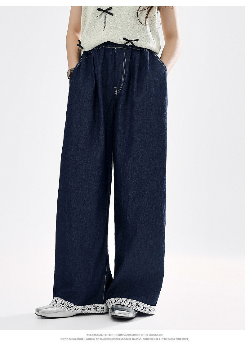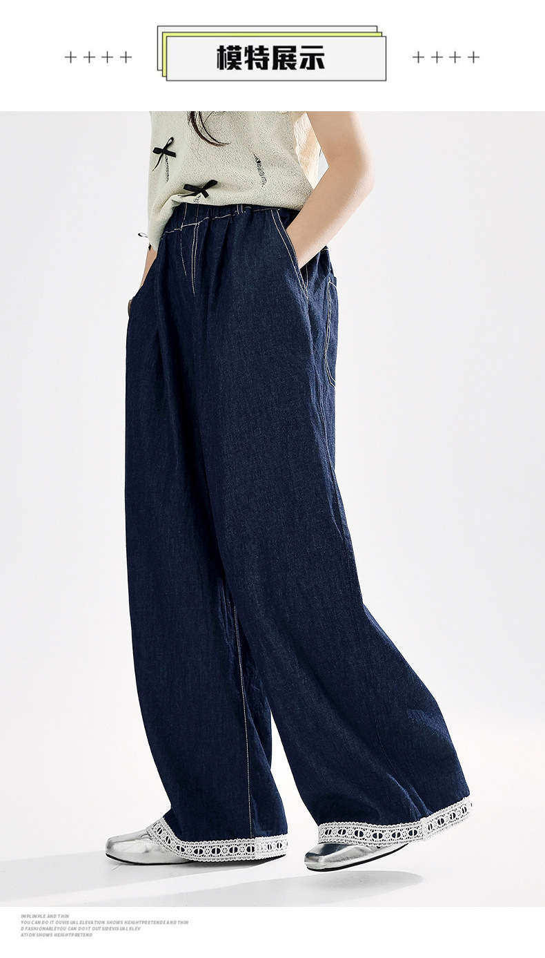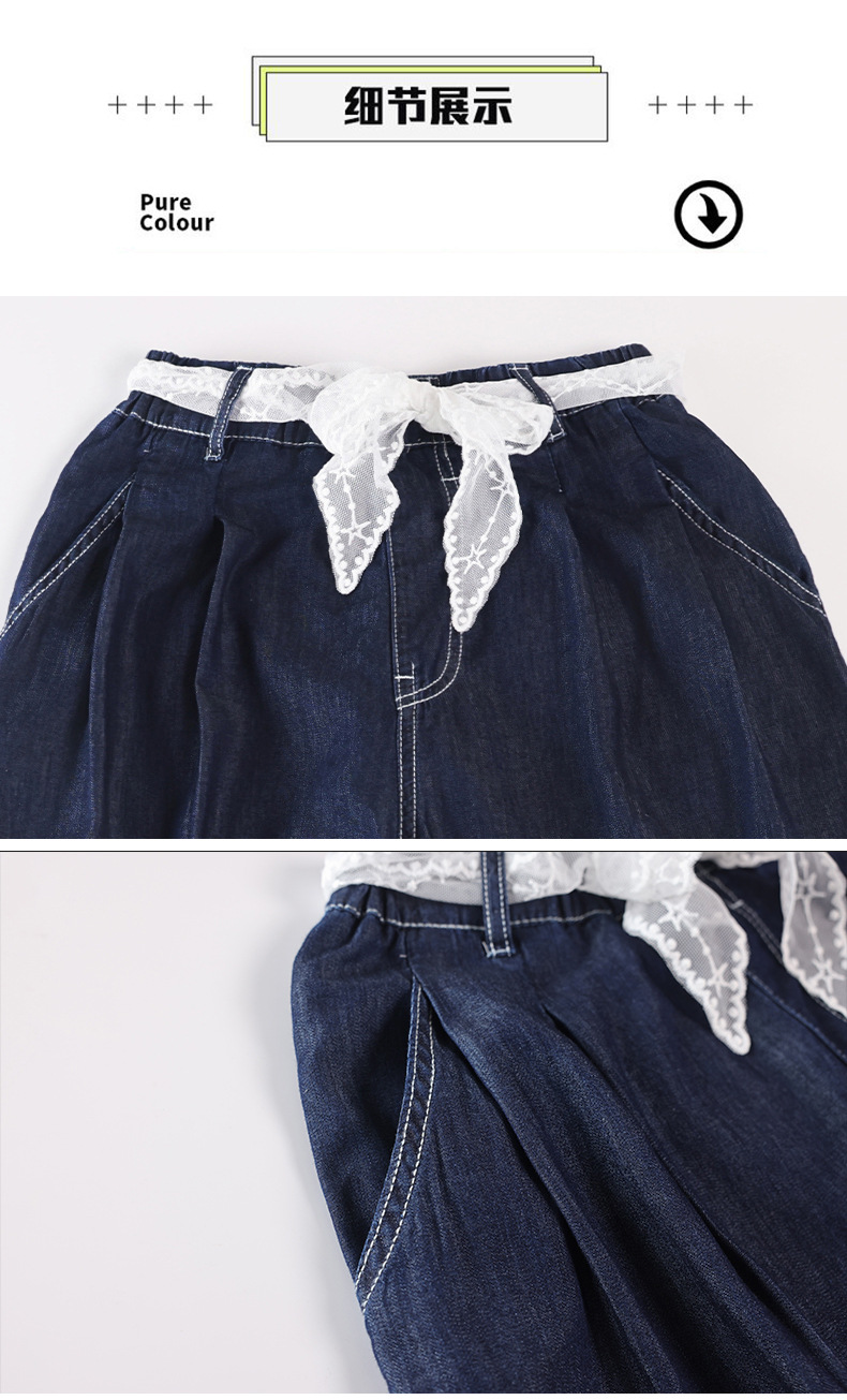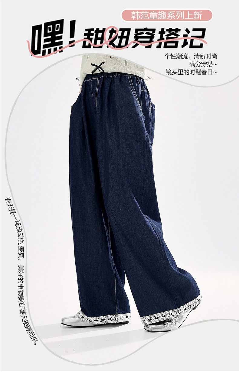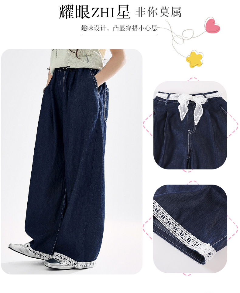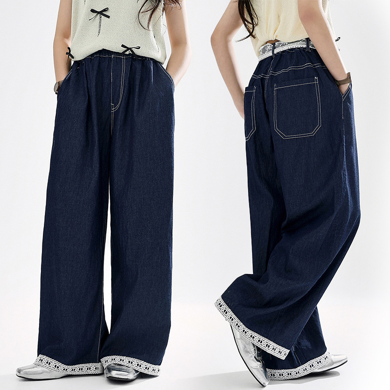 소녀 여름 청바지 중 큰 어린이 느슨한 직선 넓은 다리 바지 여름 얇은 모기 방지 바지 중학생 착용
