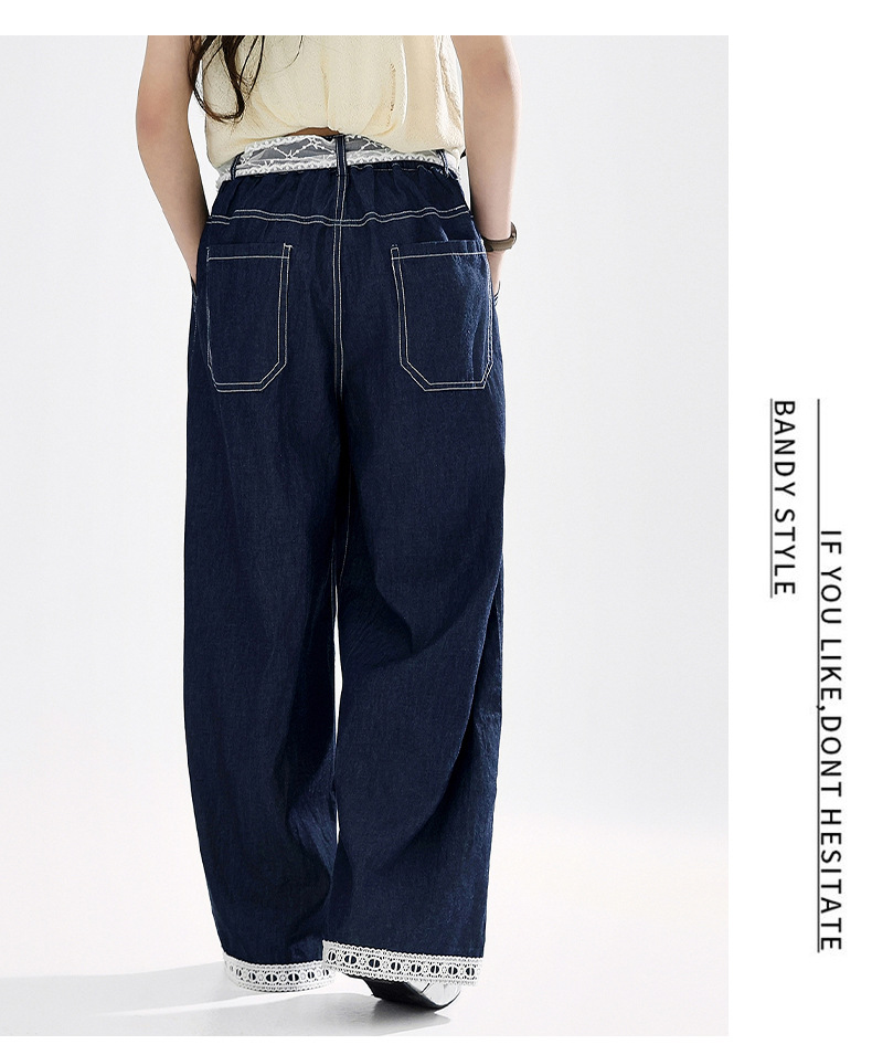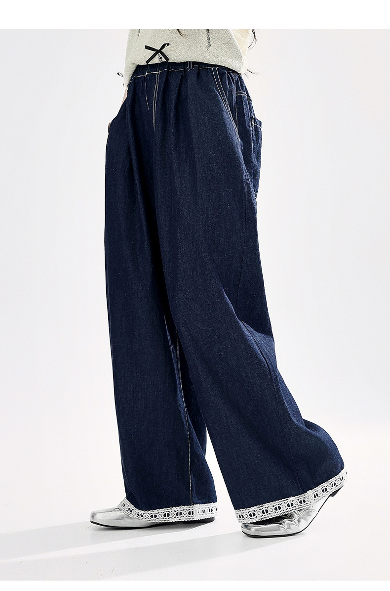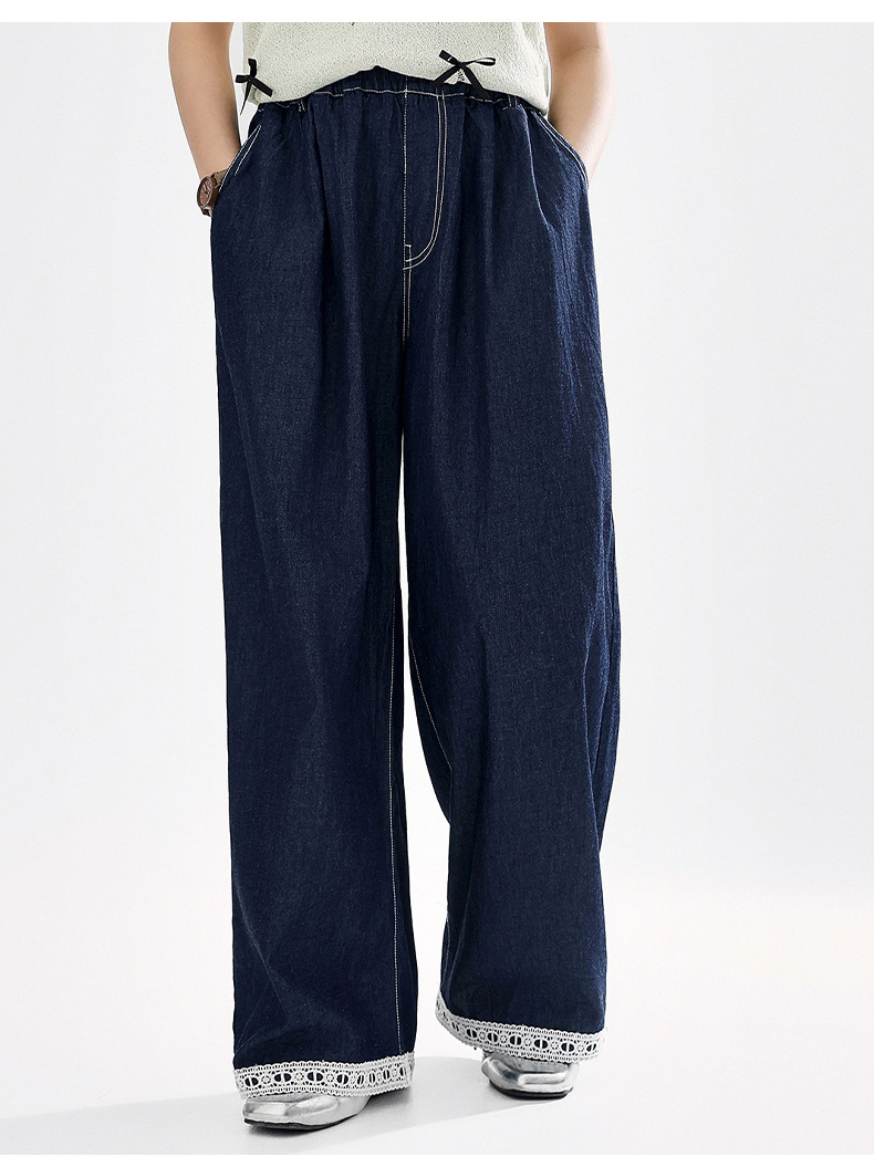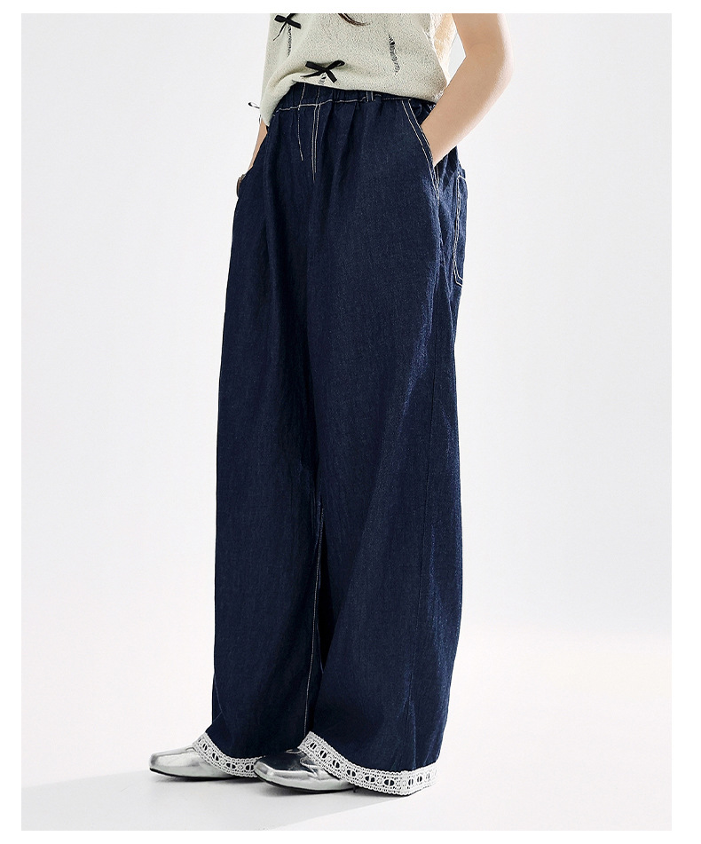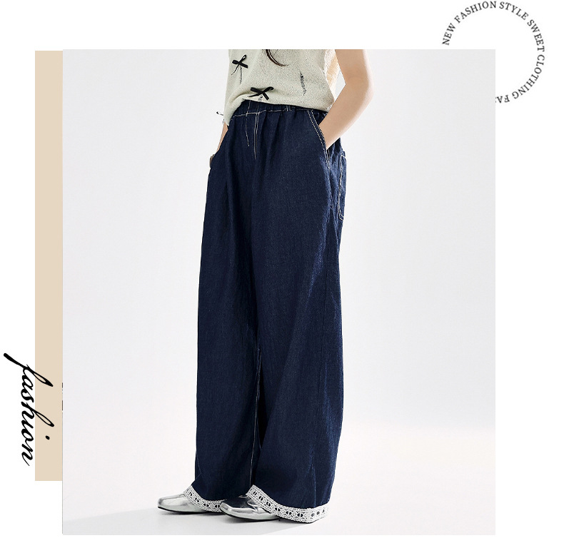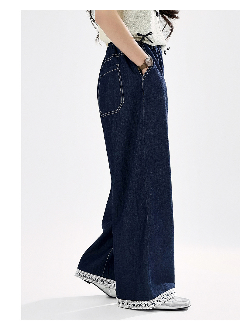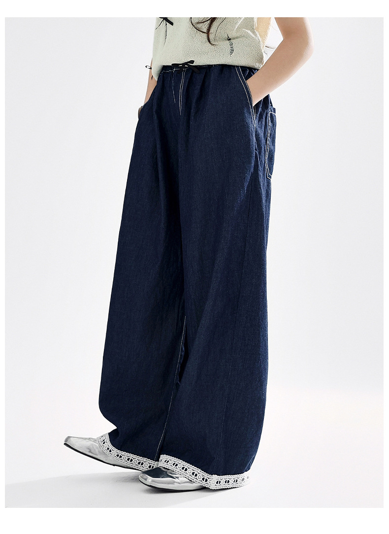 소녀 여름 청바지 중 큰 어린이 느슨한 직선 넓은 다리 바지 여름 얇은 모기 방지 바지 중학생 착용