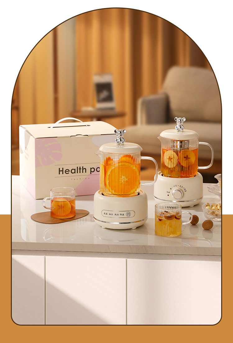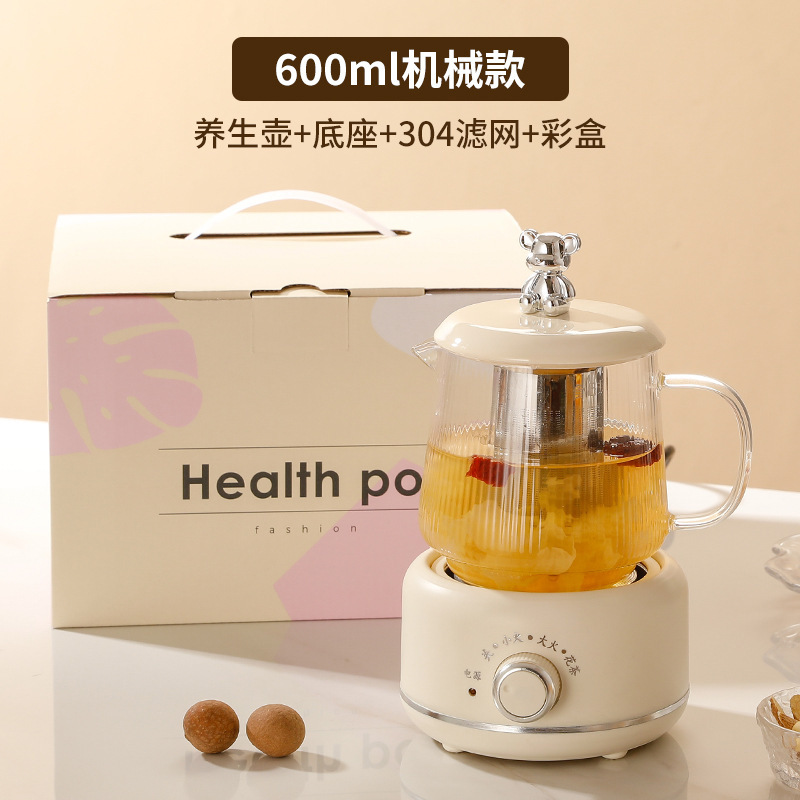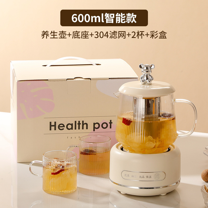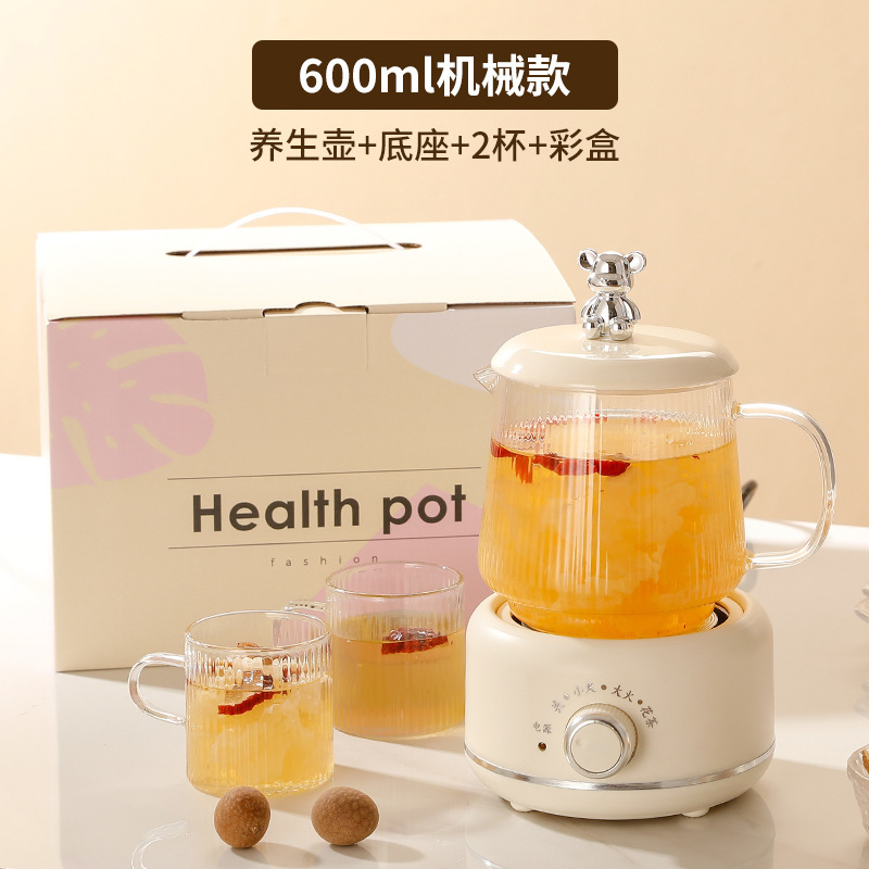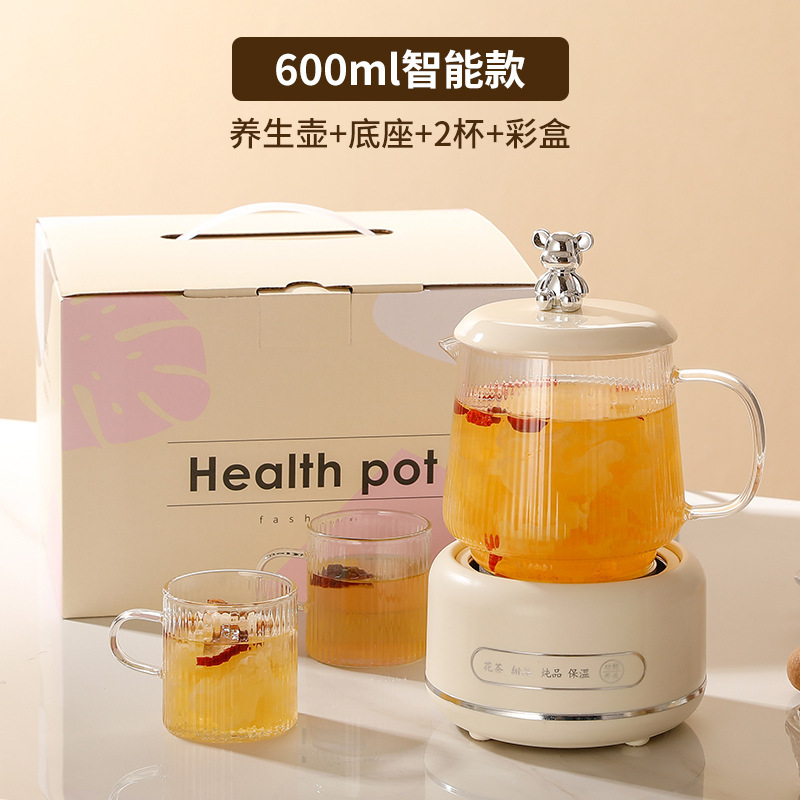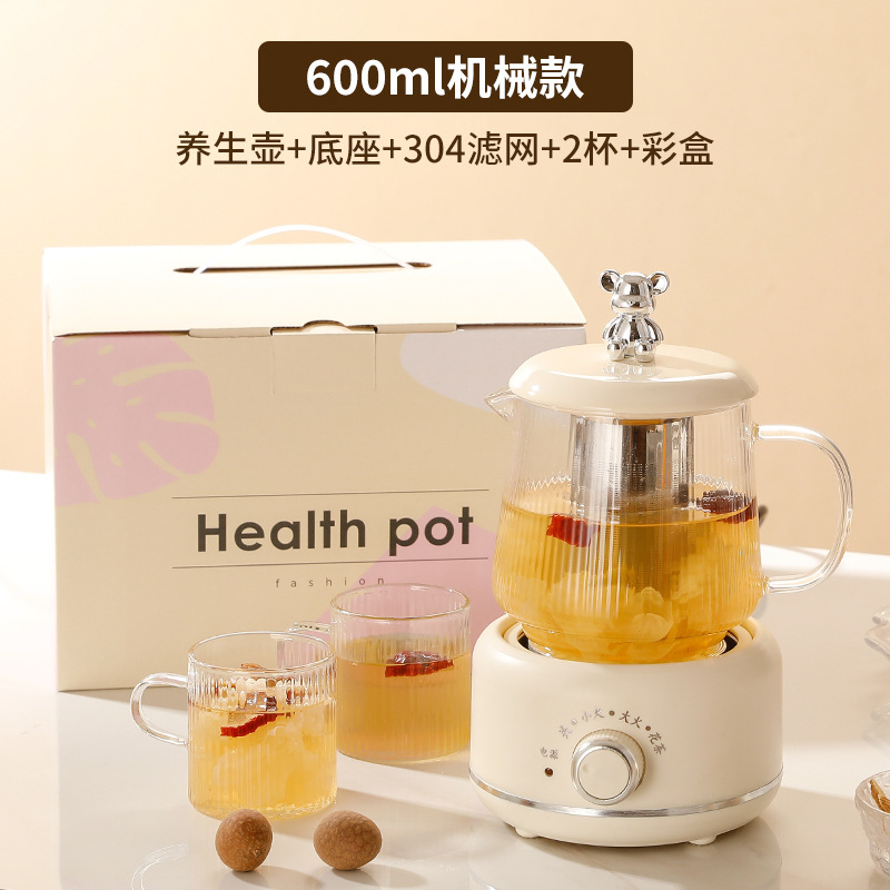 건강 냄비 가정용 다기능 전체 유리 차 메이커 주전자 작은 사무실 꽃 차 냄비 전기 컵 선물스토어 가기