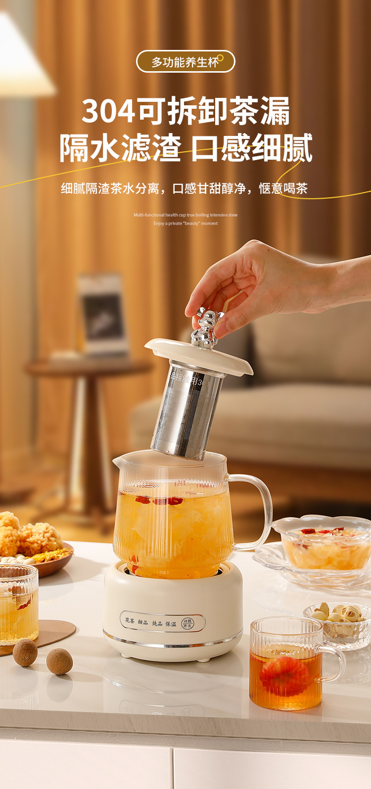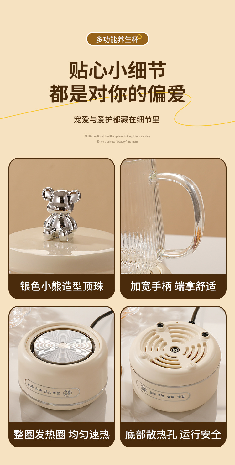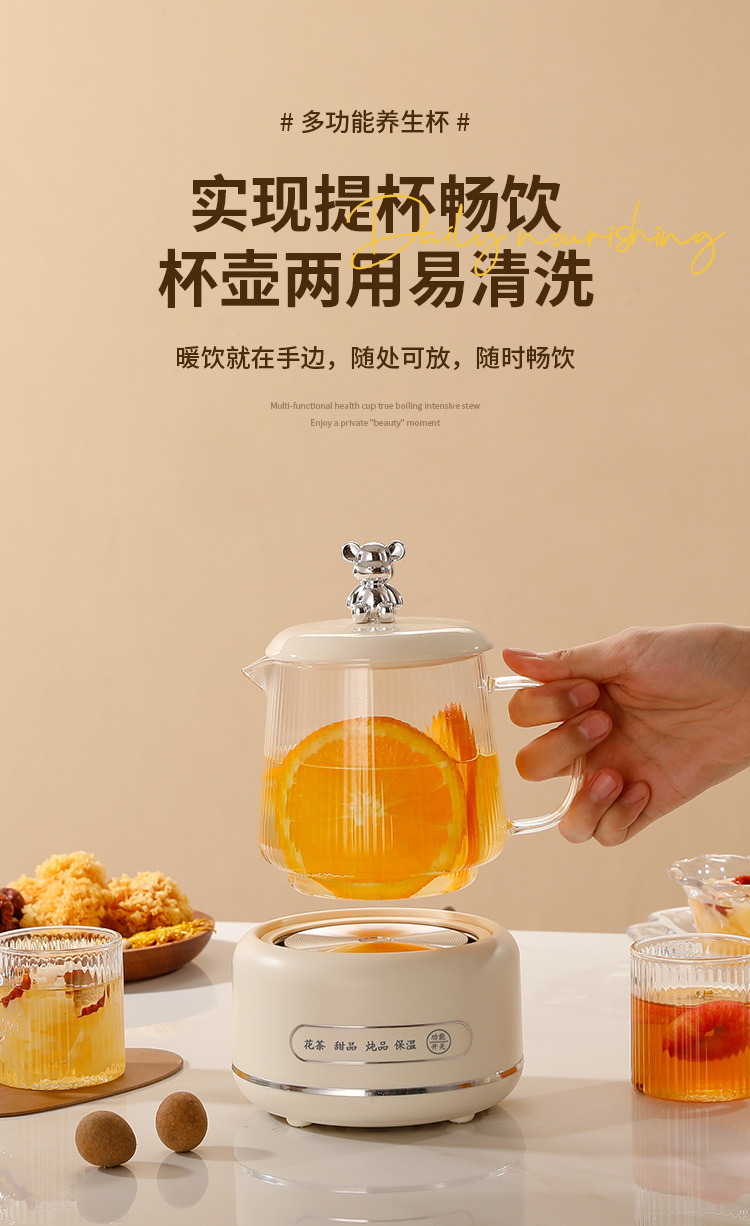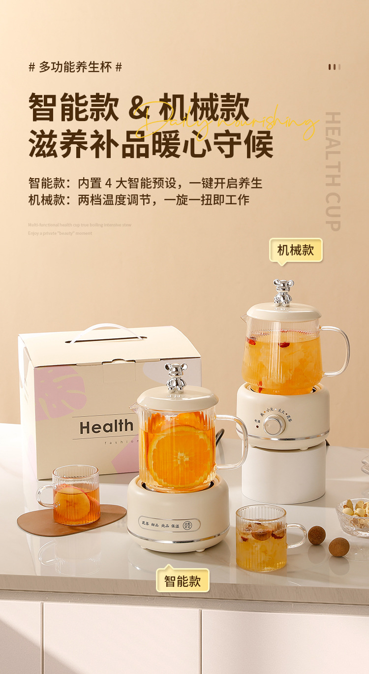 건강 냄비 가정용 다기능 전체 유리 차 메이커 주전자 작은 사무실 꽃 차 냄비 전기 컵 선물스토어 가기