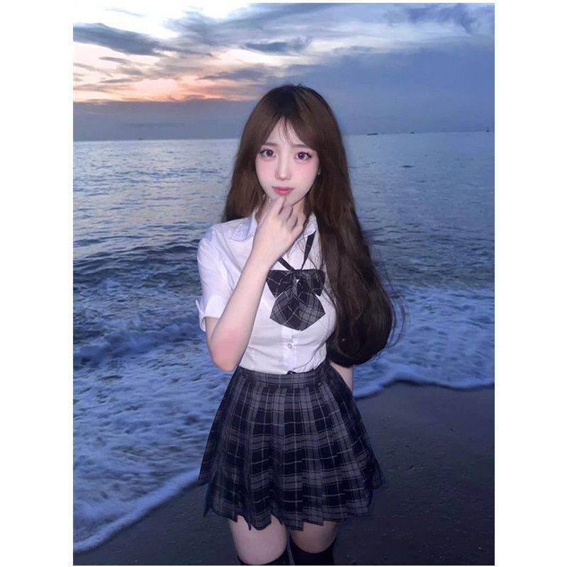 VWRKFL 대학 스타일 JK 유니폼 정품 셔츠 여성의 여름 꽉 허리 슬리밍 셔츠 높은 허리 슬리밍 스커트 세트스토어 가기