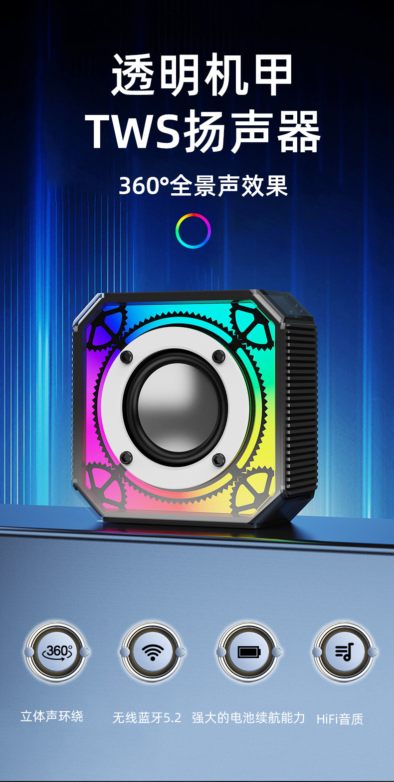 메카 스타일 무선 블루투스 스피커 레트로 플러그인 카드 HIFI 오디오 야외 휴대용 서브 우퍼 소형 스피커