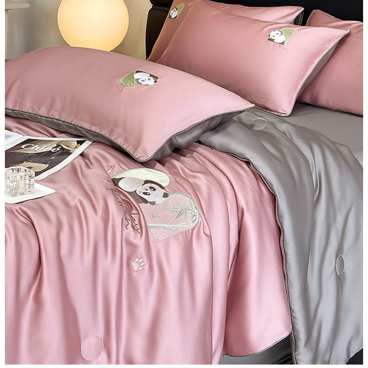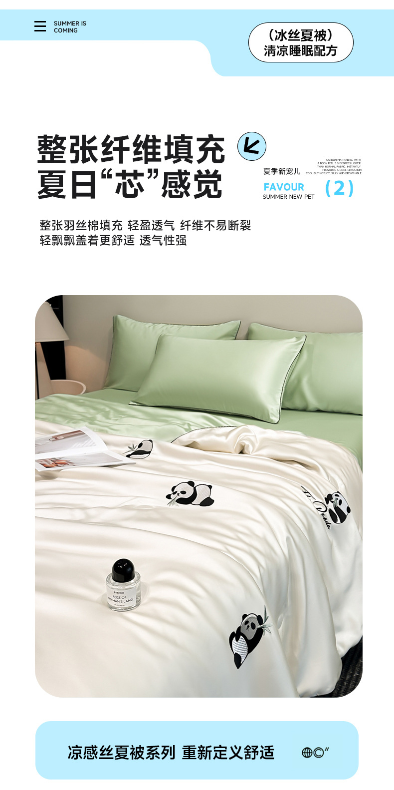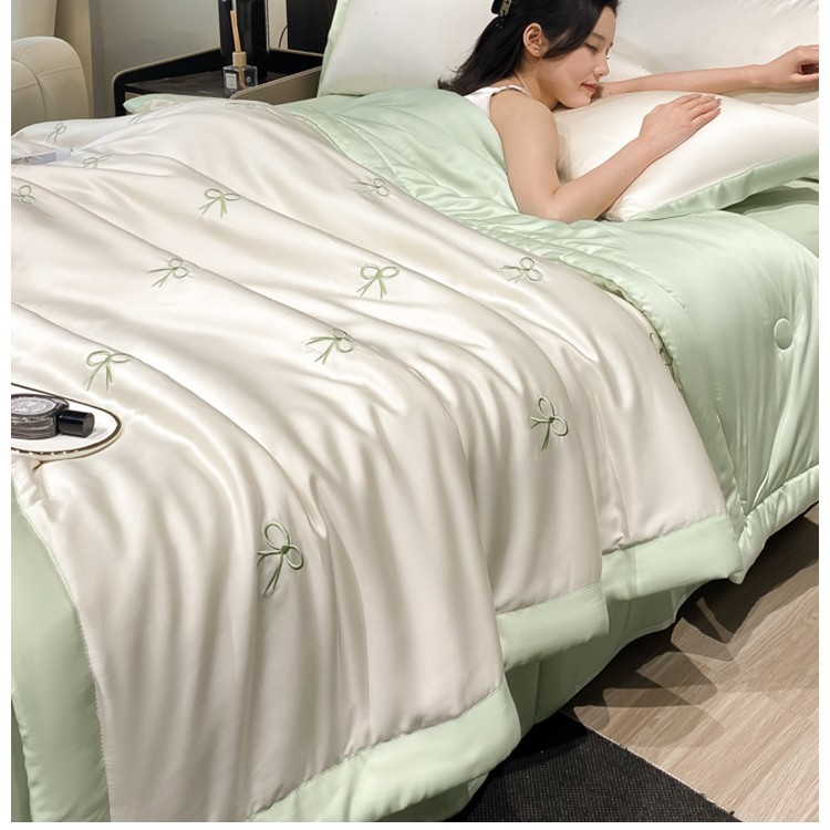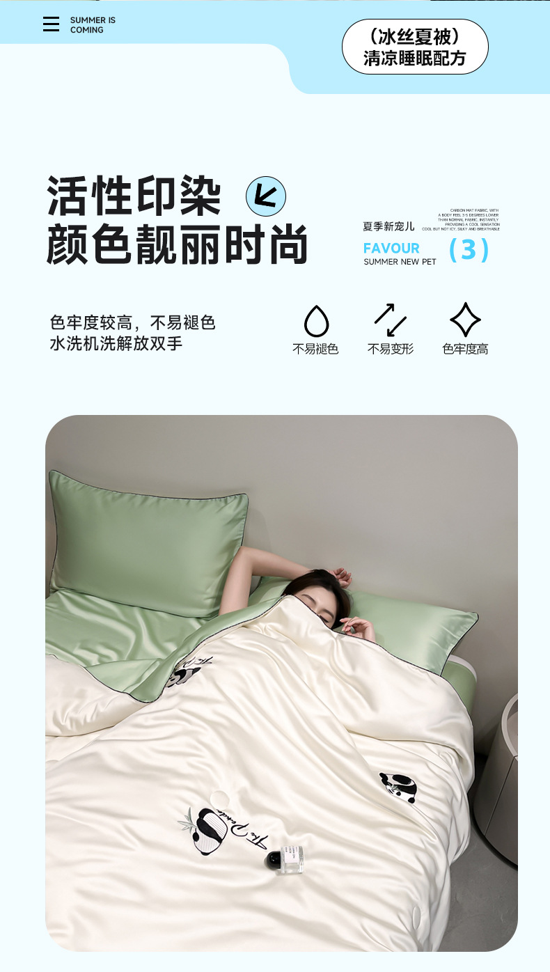 2025 신형 여름 이불, 여름 시원한 이불, 여름 시원한 얼음 실크 에어컨 이불 4종 세트, 싱글 및 더블 얇은 이불, 세탁기 사용 가능