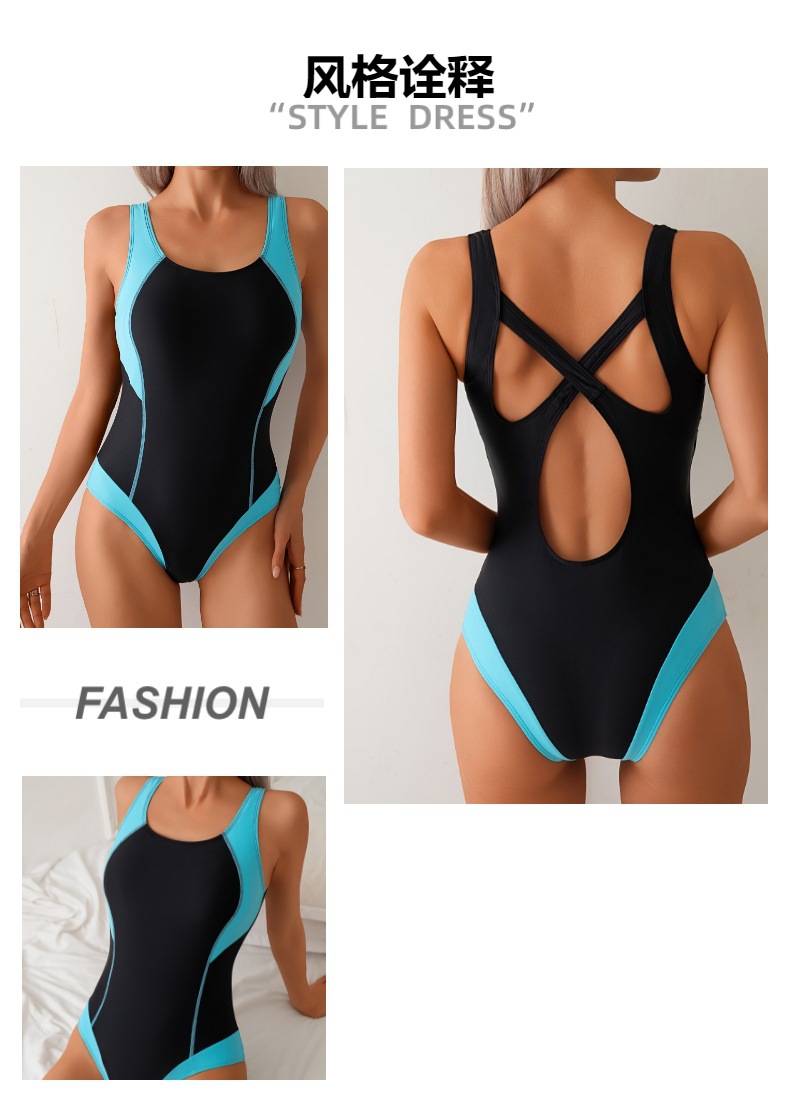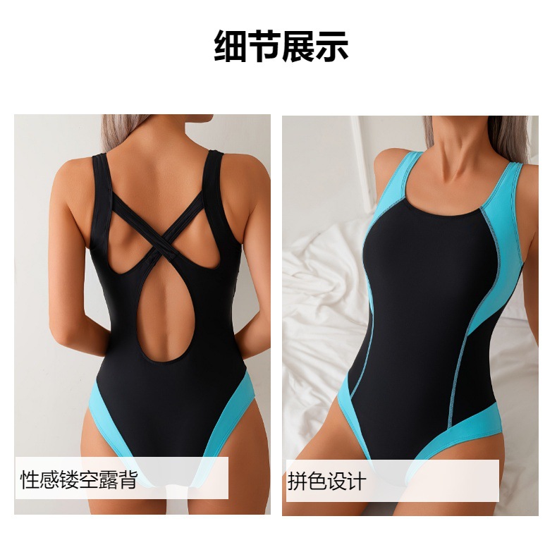 2025 새로운 여성 보수적 인 컬러 매칭 삼각형 원피스 타이트 수영복스토어 가기