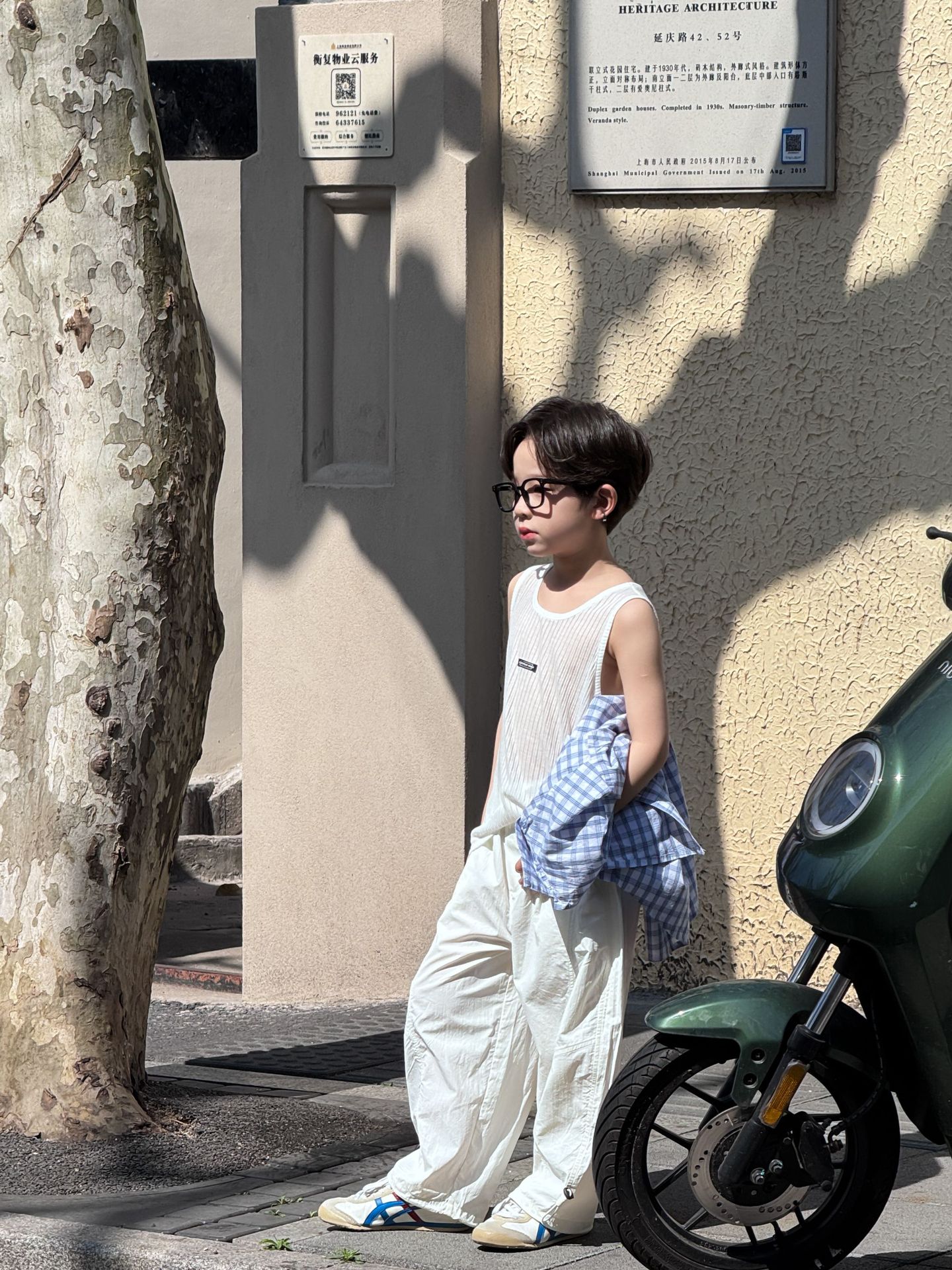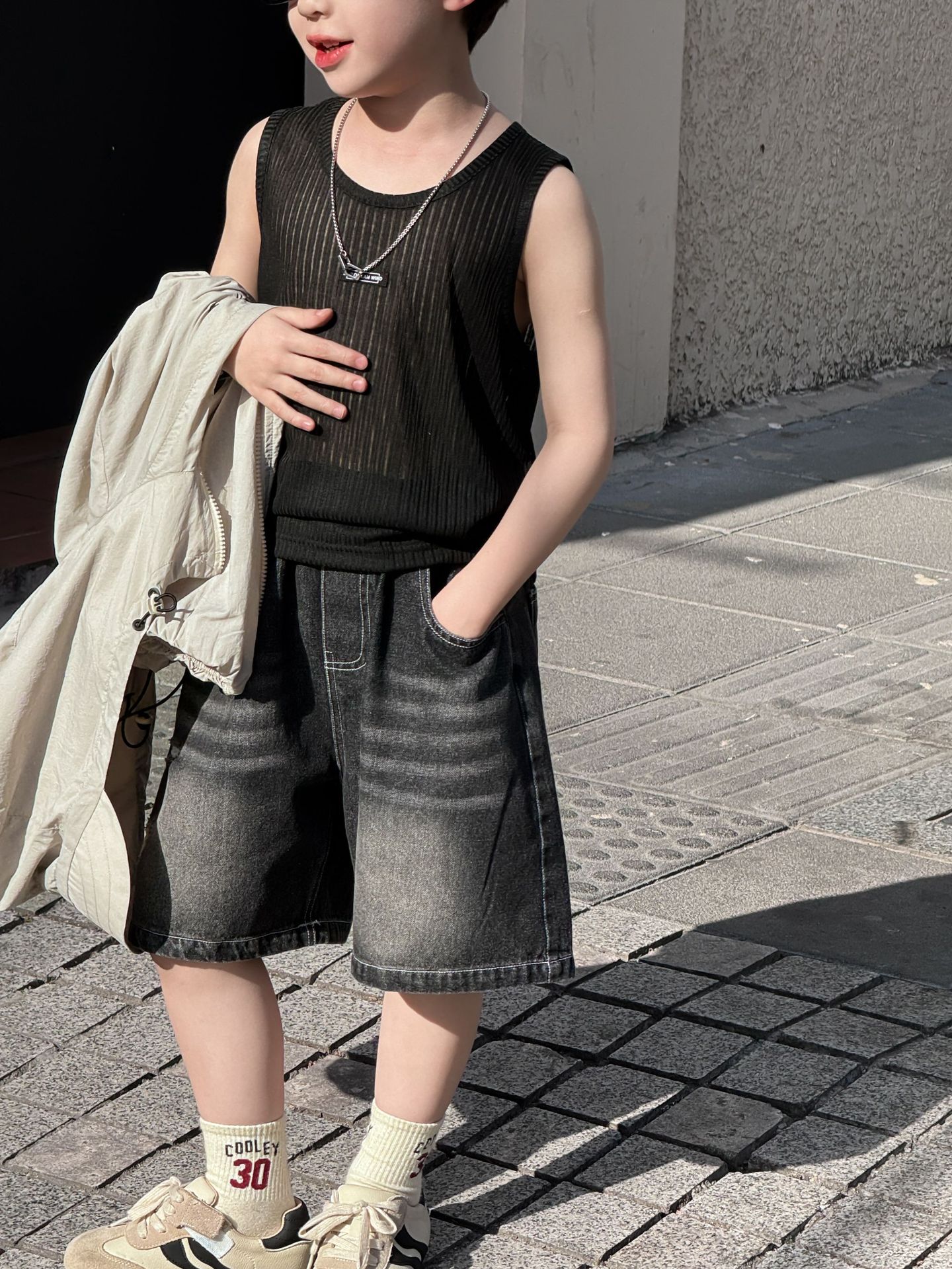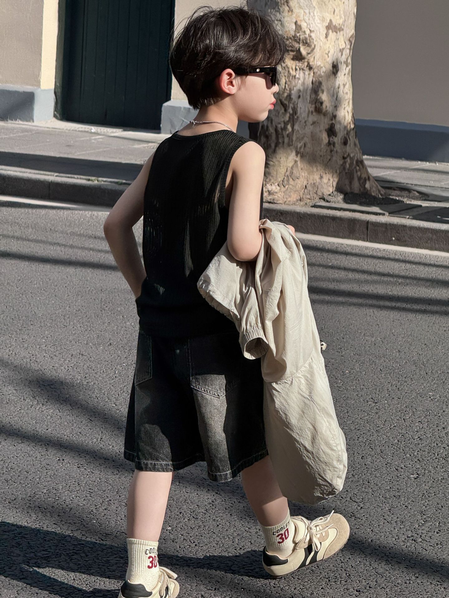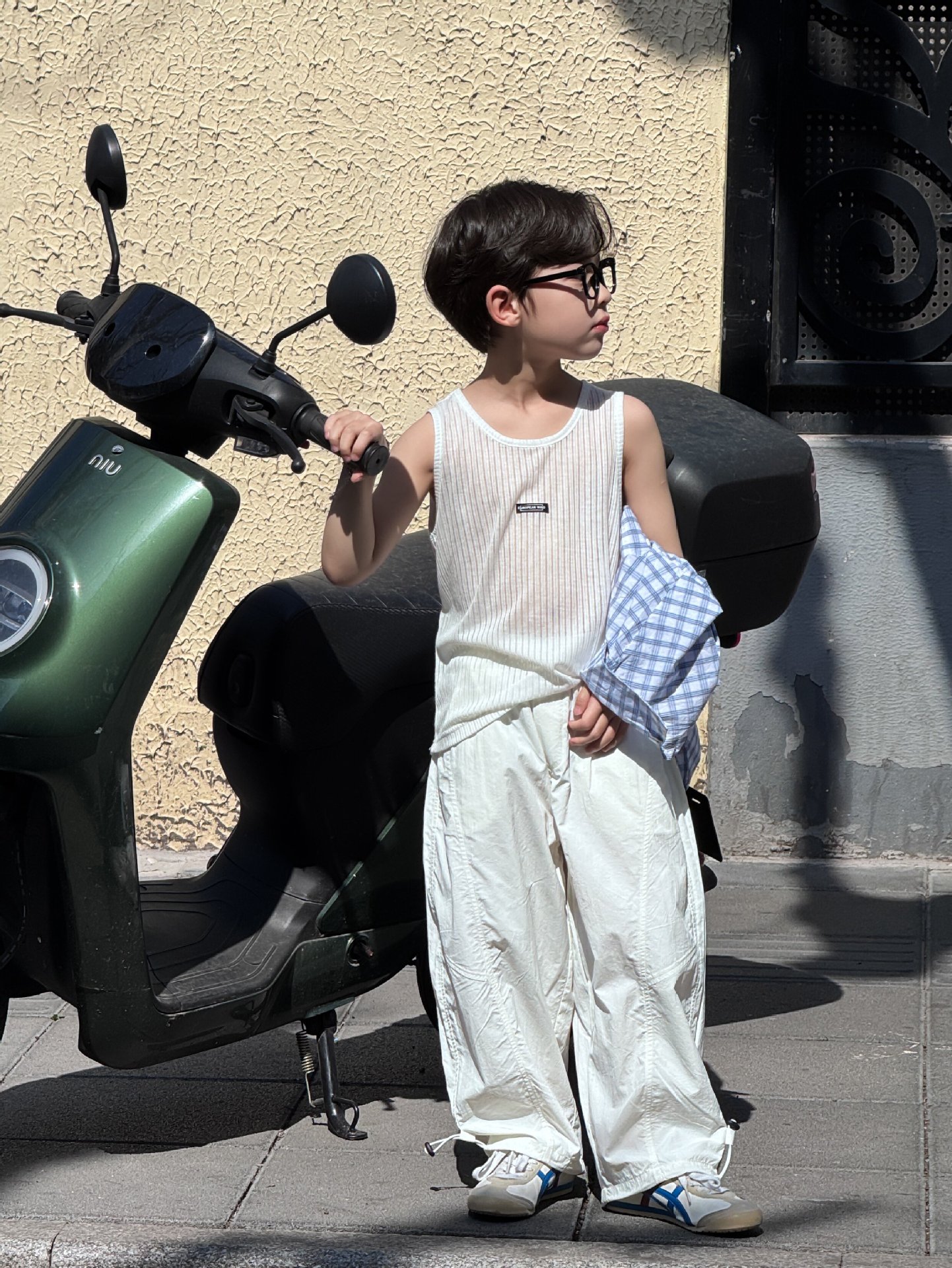 25 중소형 어린이 및 소년을위한 여름 한국 아동복 중공 구덩이 스트립 라벨링 경량 통기성 민소매 조끼 탑스토어 가기