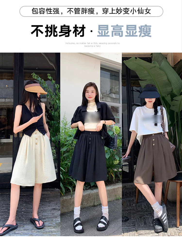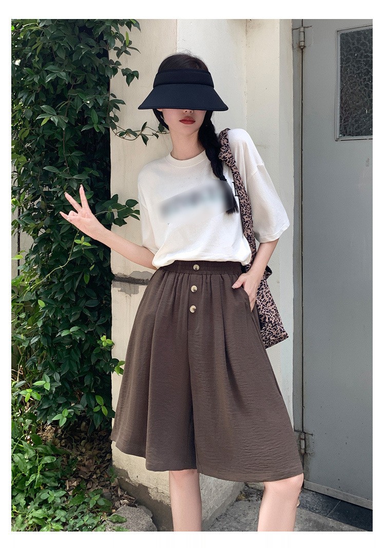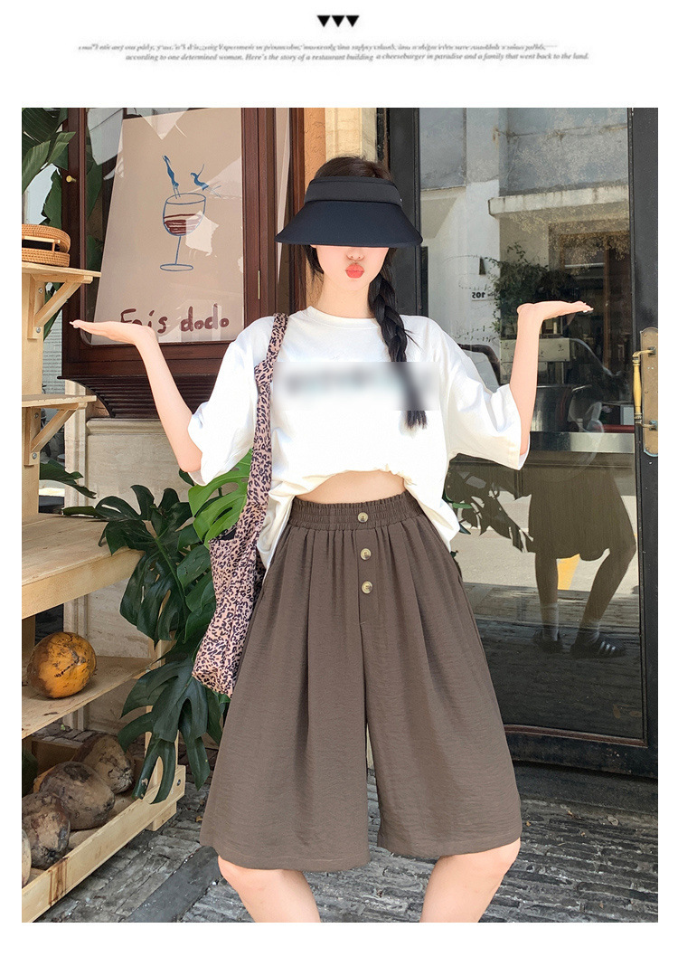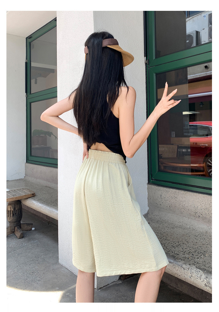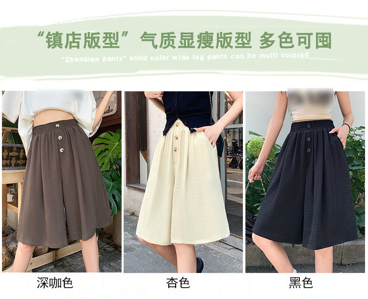 플러스 사이즈 150.00kg 캐주얼 와이드 레그 중간 길이 바지 여성의 여름 얇은 아이스 실크 바지 높은 허리 딥 슬림 룩 5 길이 바지 여성스토어 가기