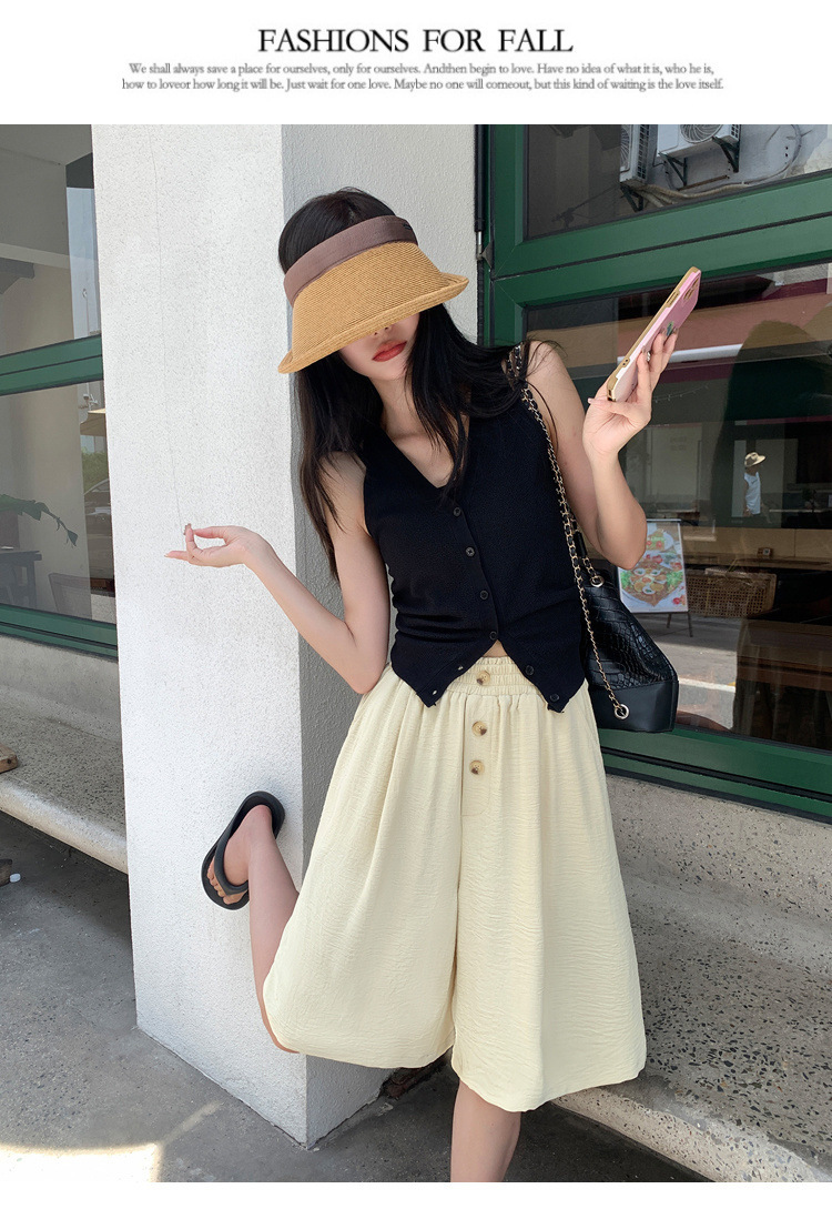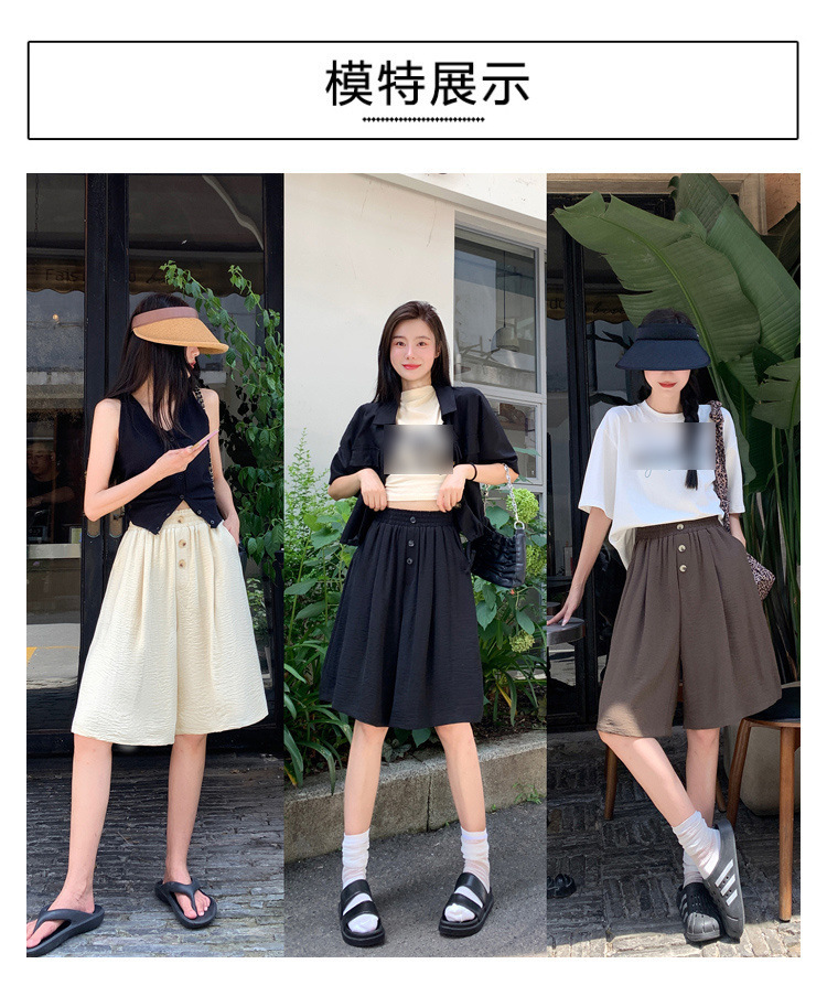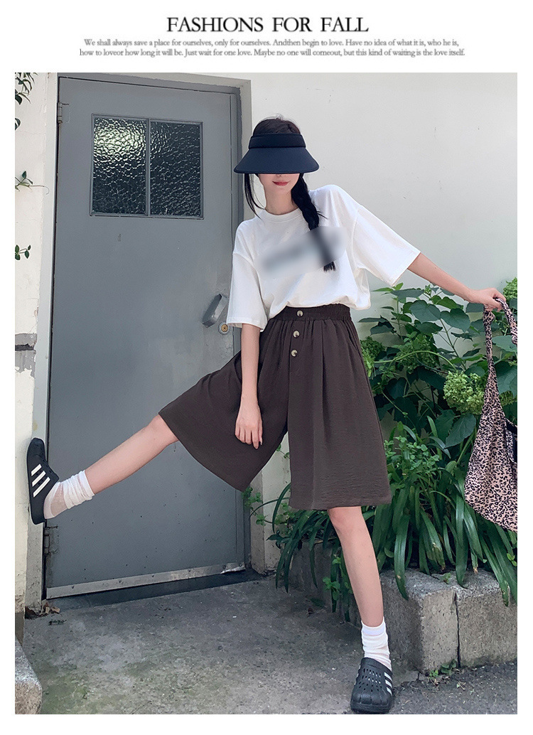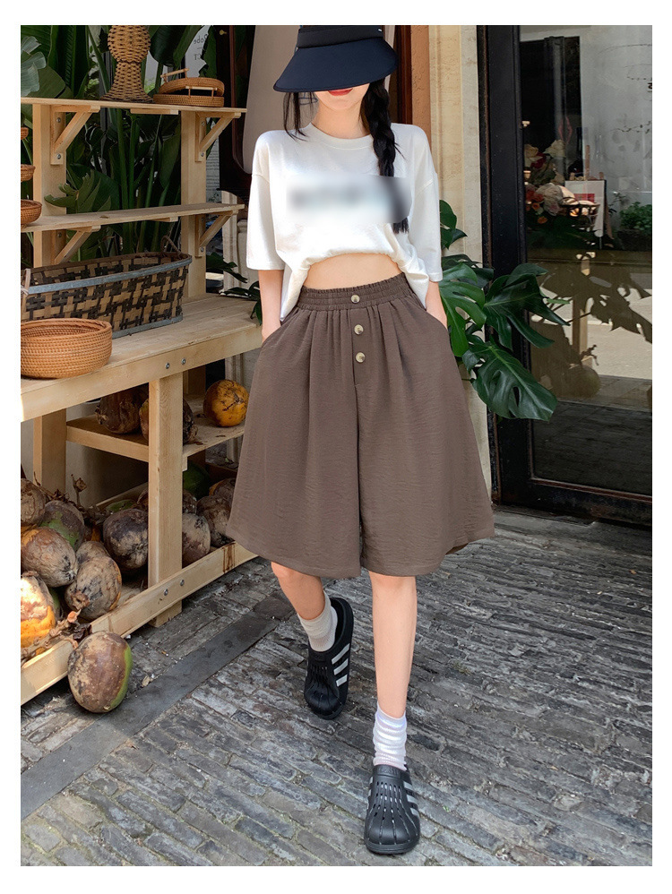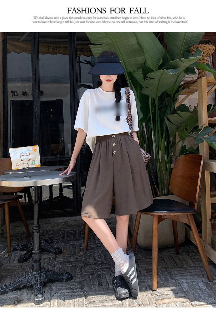 플러스 사이즈 150.00kg 캐주얼 와이드 레그 중간 길이 바지 여성의 여름 얇은 아이스 실크 바지 높은 허리 딥 슬림 룩 5 길이 바지 여성스토어 가기