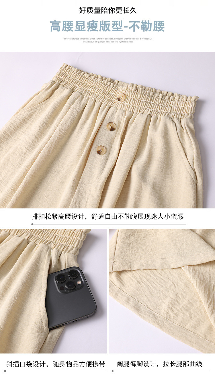 플러스 사이즈 150.00kg 캐주얼 와이드 레그 중간 길이 바지 여성의 여름 얇은 아이스 실크 바지 높은 허리 딥 슬림 룩 5 길이 바지 여성