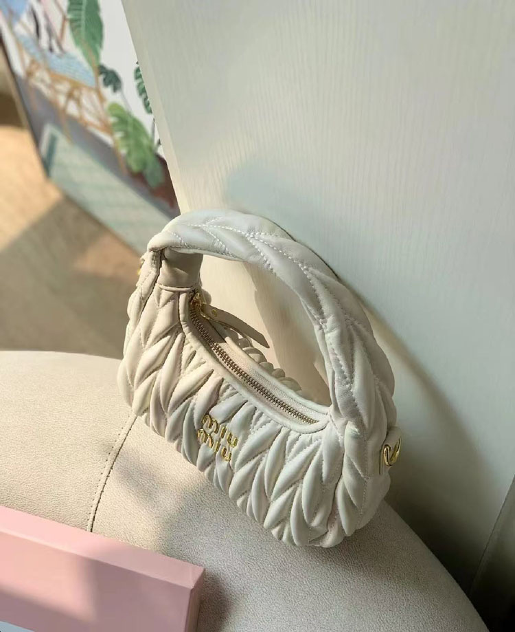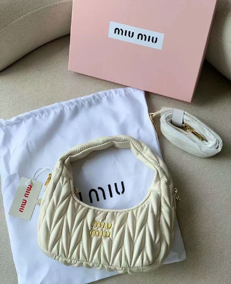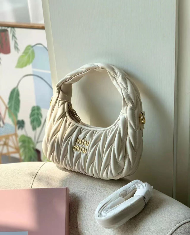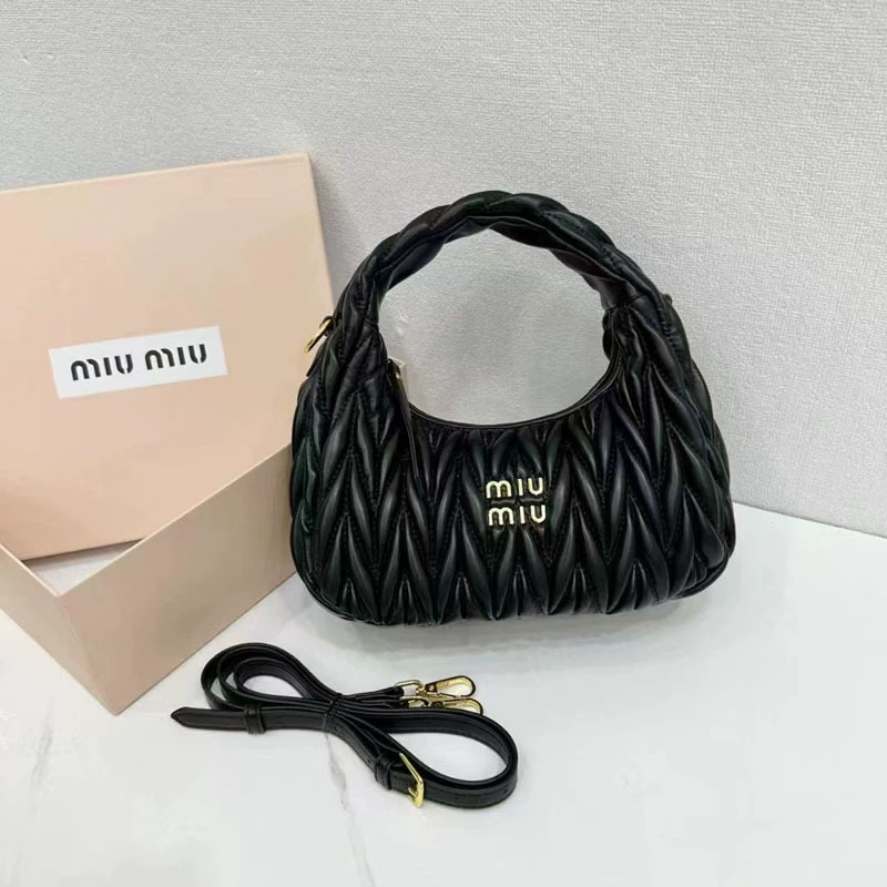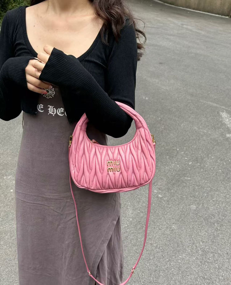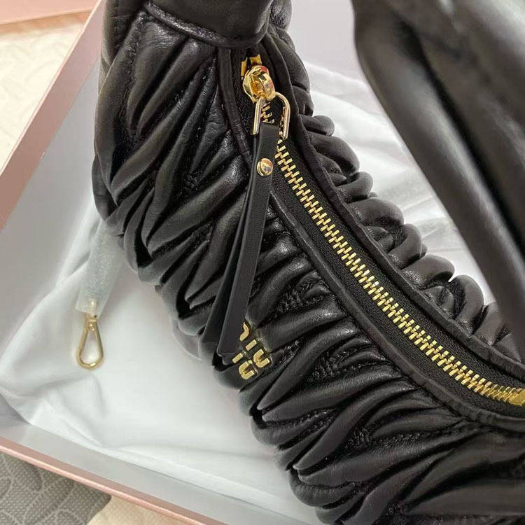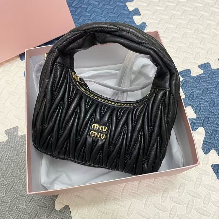 MIU 주름 양가죽 만두 가방 HOBO 언더암 가방 유행 올 매치 핸드 헬드 숄더 백 크로스 바디 초승달 여성용 가방스토어 가기