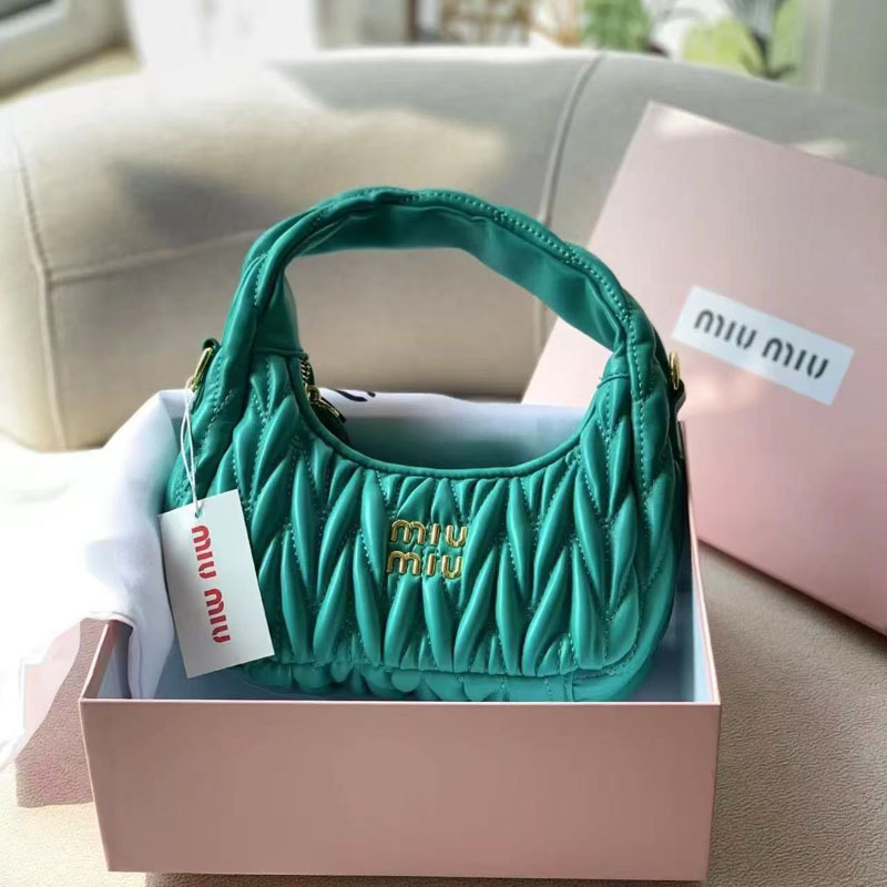 MIU 주름 양가죽 만두 가방 HOBO 언더암 가방 유행 올 매치 핸드 헬드 숄더 백 크로스 바디 초승달 여성용 가방