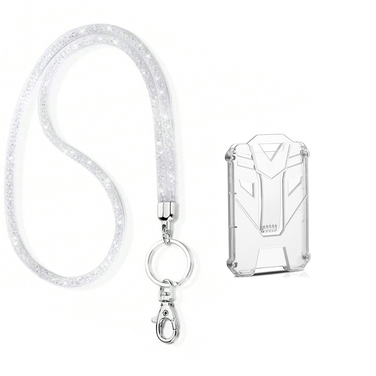 국경 간 키체인, 작업표, 넥 스트랩, 끈, 다이아몬드가 박힌 낚시 그물, 반짝이는 끈, 흰색 ID 카드 홀더