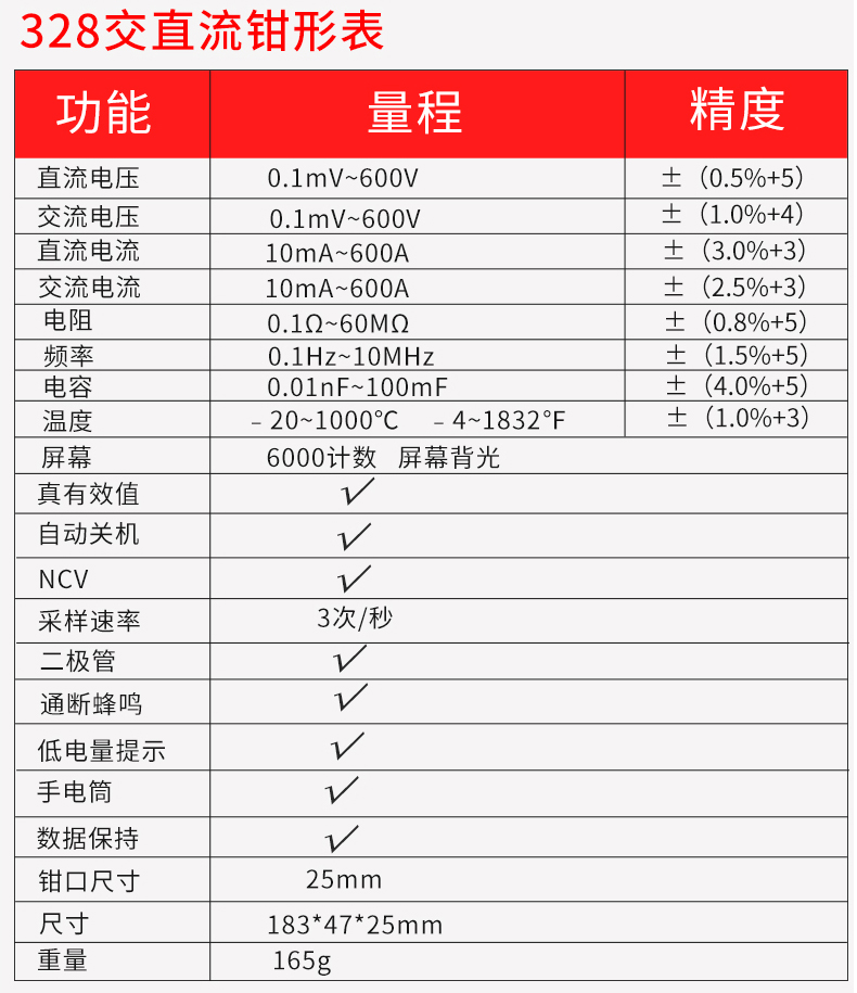 • 328D 표준 구성(32-in-1 나사, DC 전류, 커패시터 온도 제공)