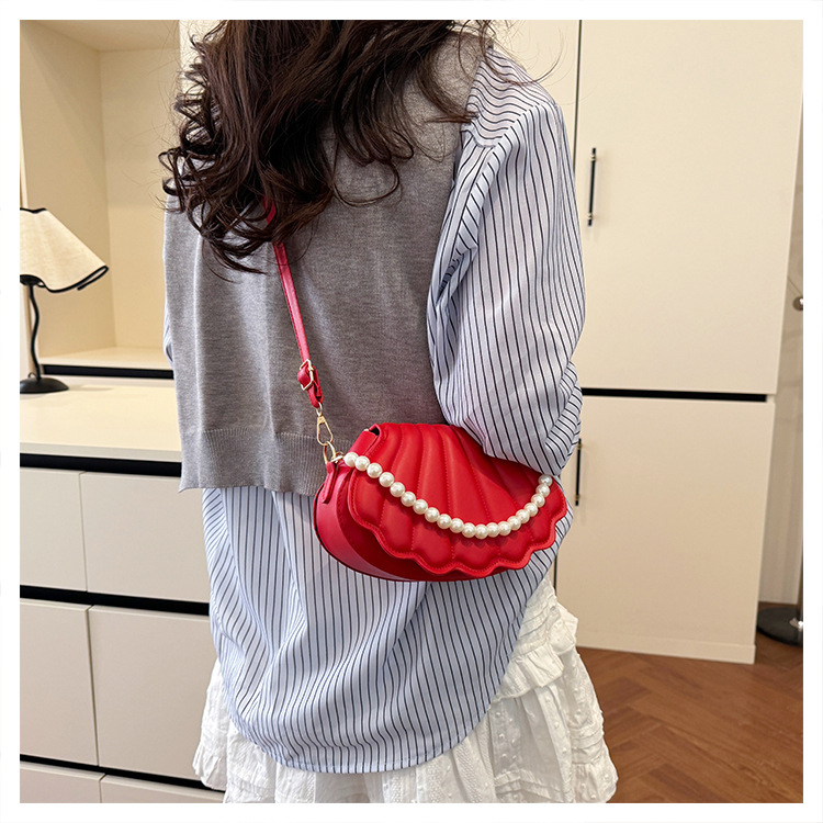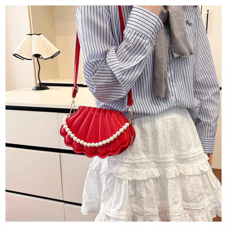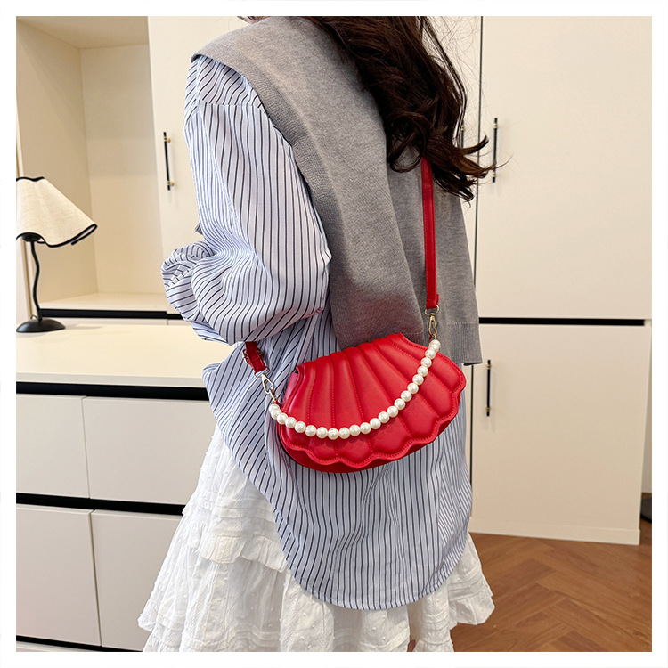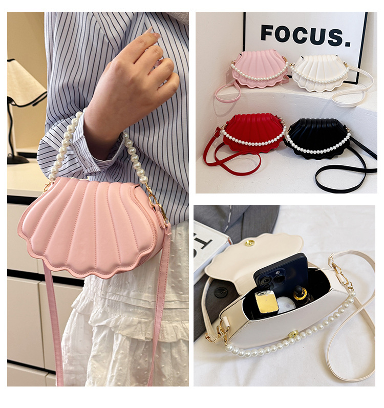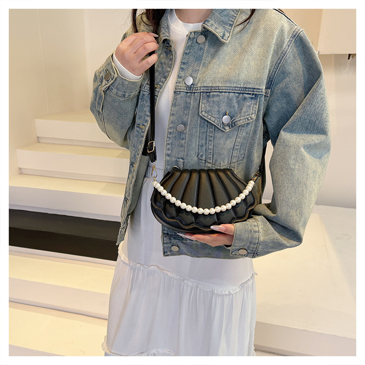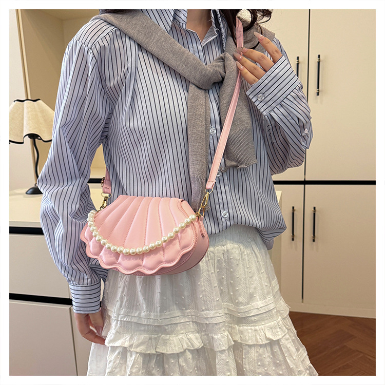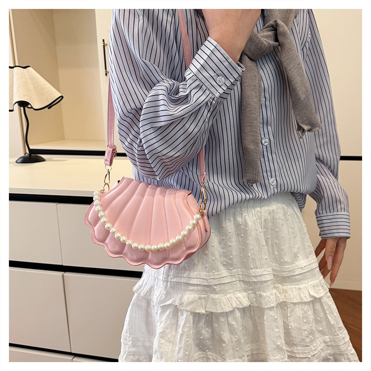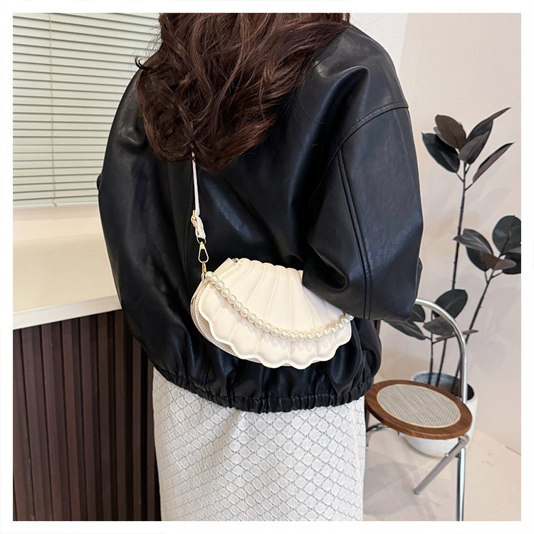쉘 백 이브닝 진주 여성용 가방 2025 새로운 싱글 숄더 크로스 바디 백 맞춤형 진주 체인 핸드백 여성용스토어 가기