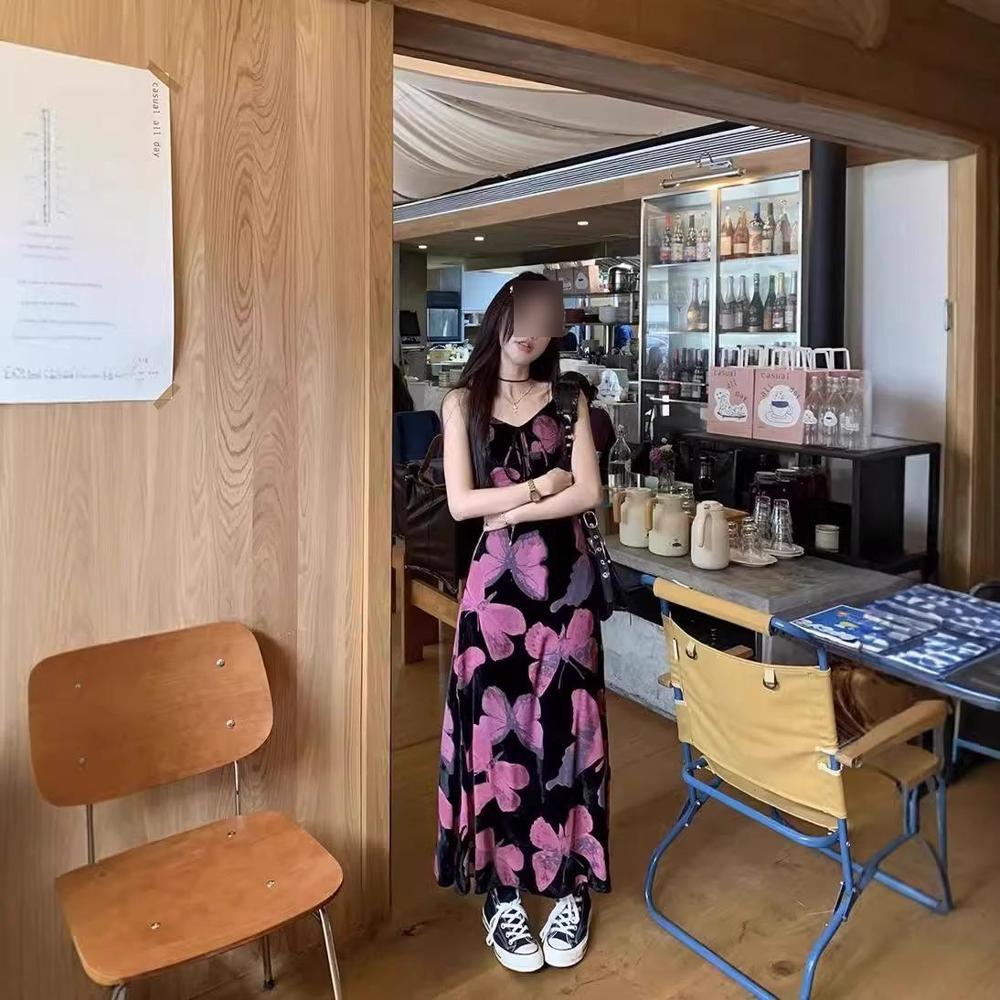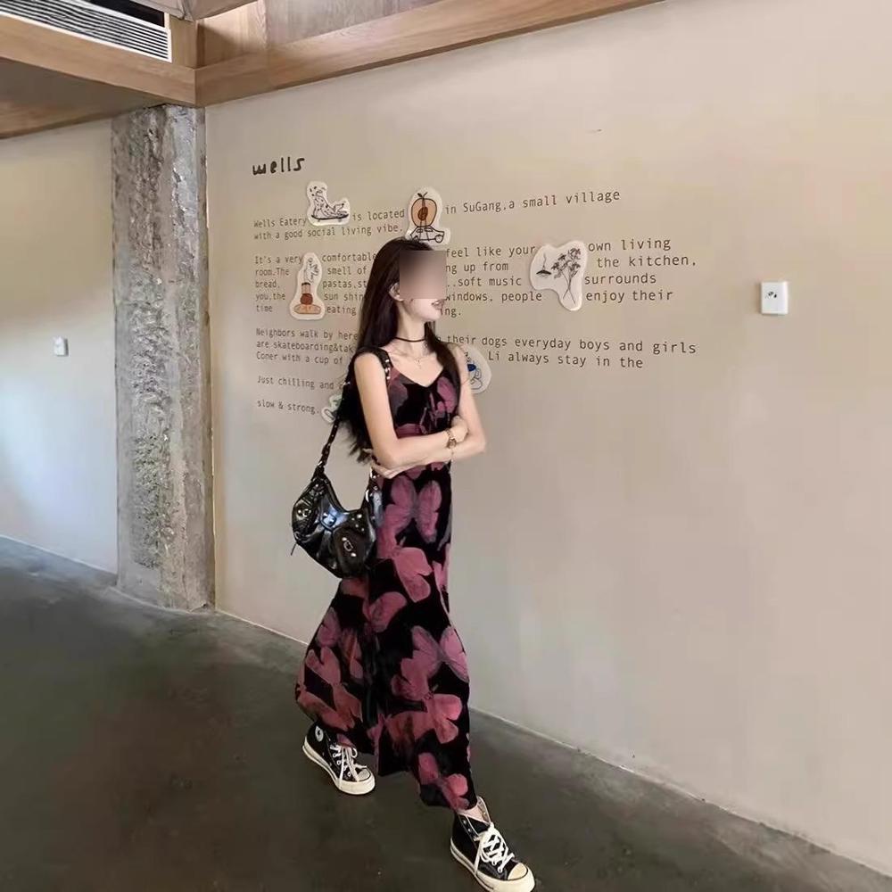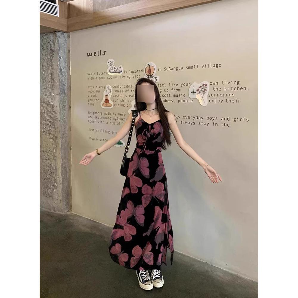 빈티지 스파이스 나비 인쇄 원피스 여성의 봄과 여름 매운 자매 순수한 욕망 바람 기질 사랑 천 종류의 슬링 스커트스토어 가기
