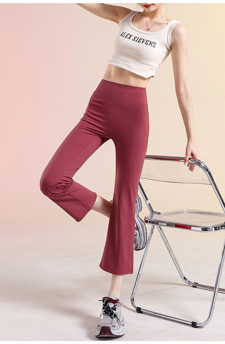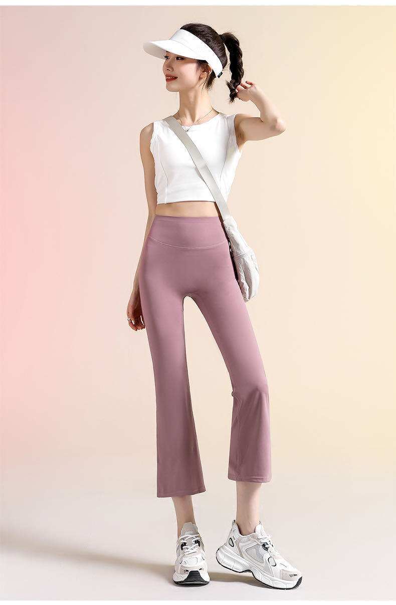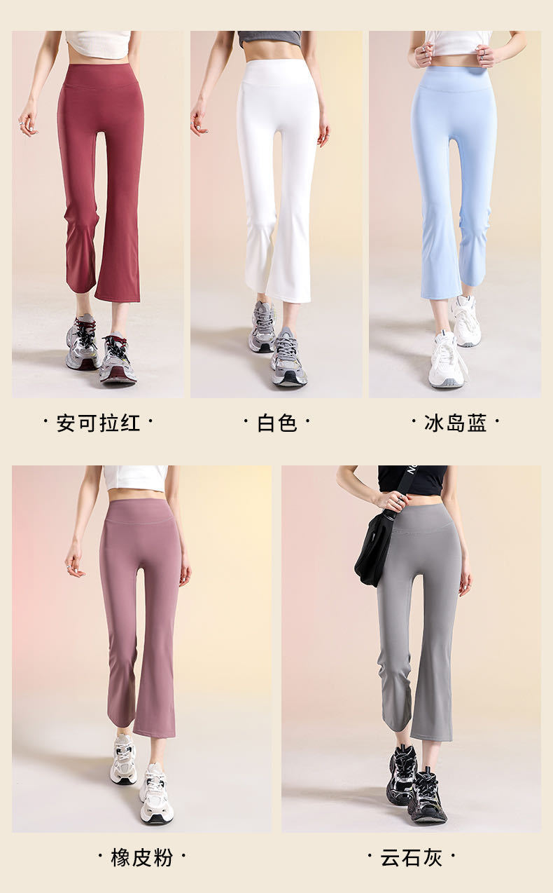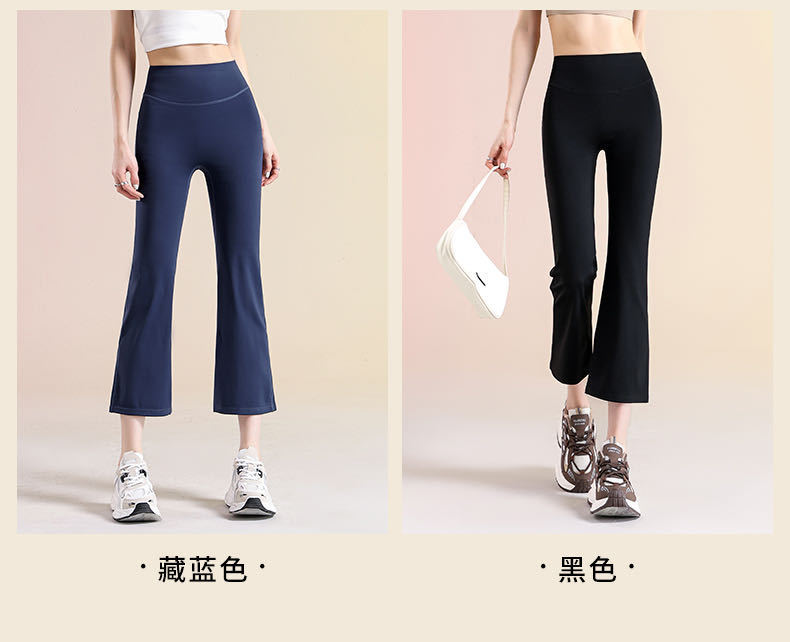 여성용 8부 블랙 마이크로 플레어 요가 팬츠, 봄 신상 하이웨이스트 슬리밍 힙업 효과, 외부 착용 가능, 편안한 라인 없는 레깅스스토어 가기