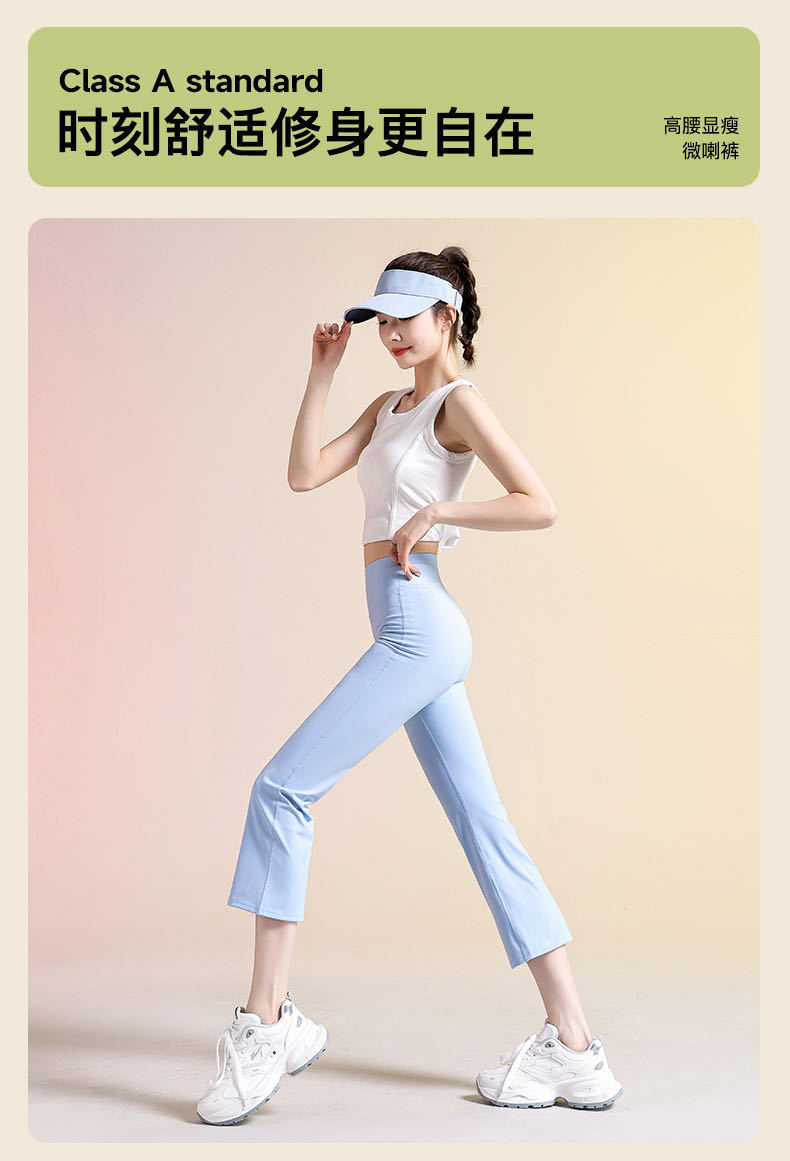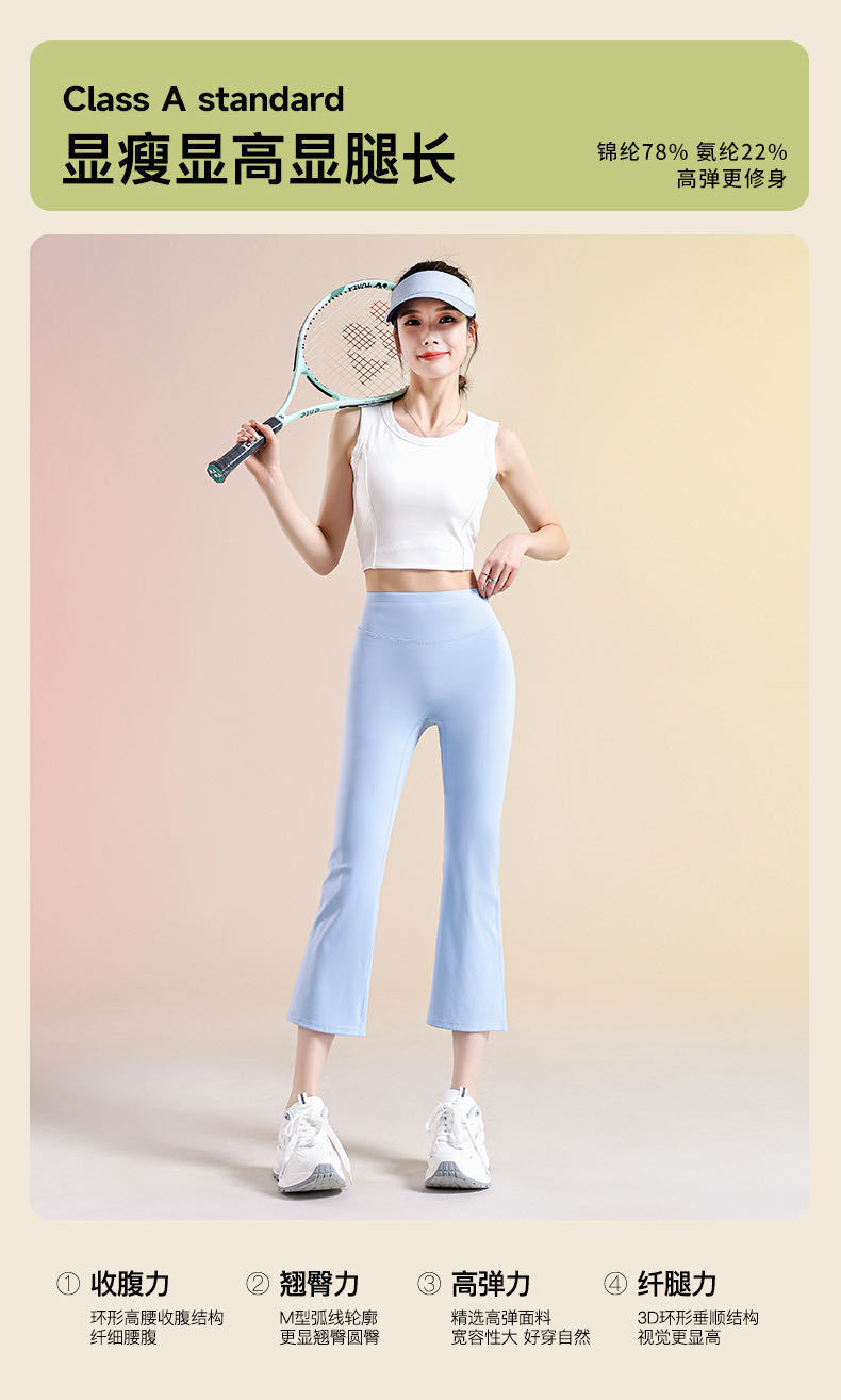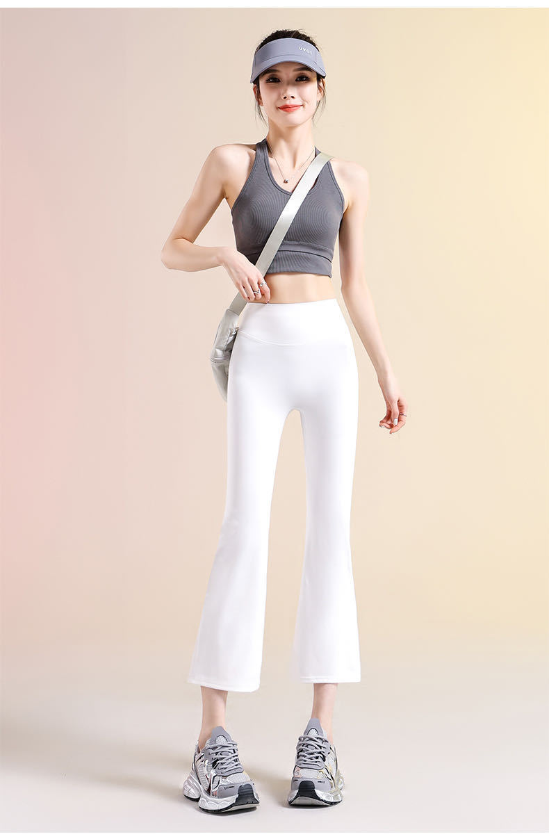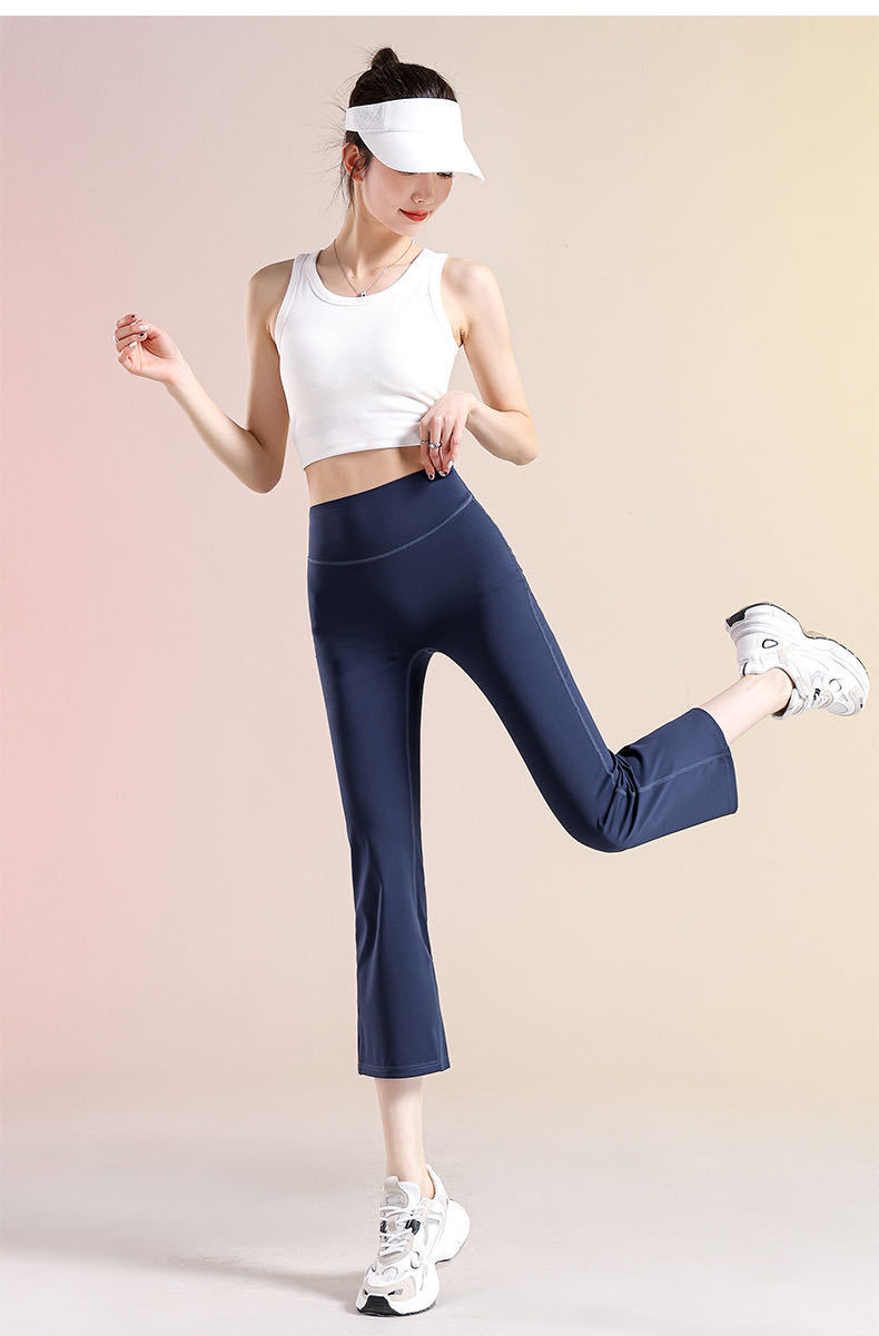 여성용 8부 블랙 마이크로 플레어 요가 팬츠, 봄 신상 하이웨이스트 슬리밍 힙업 효과, 외부 착용 가능, 편안한 라인 없는 레깅스스토어 가기