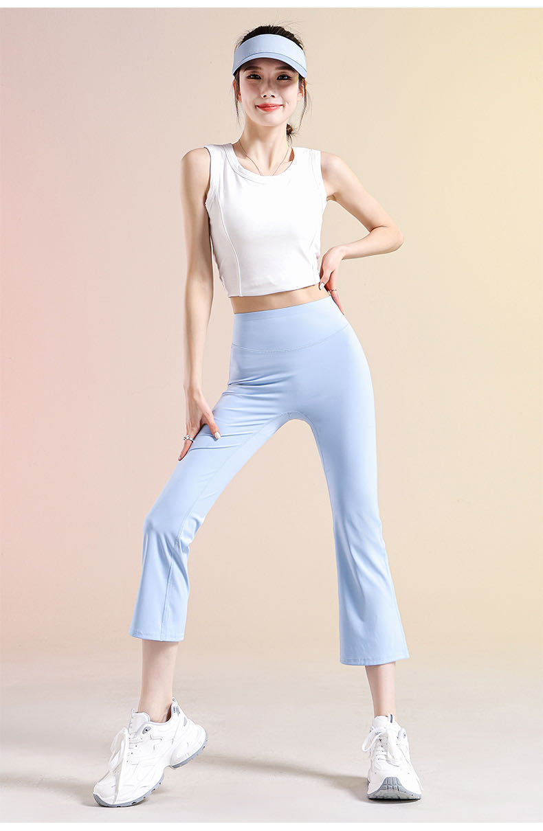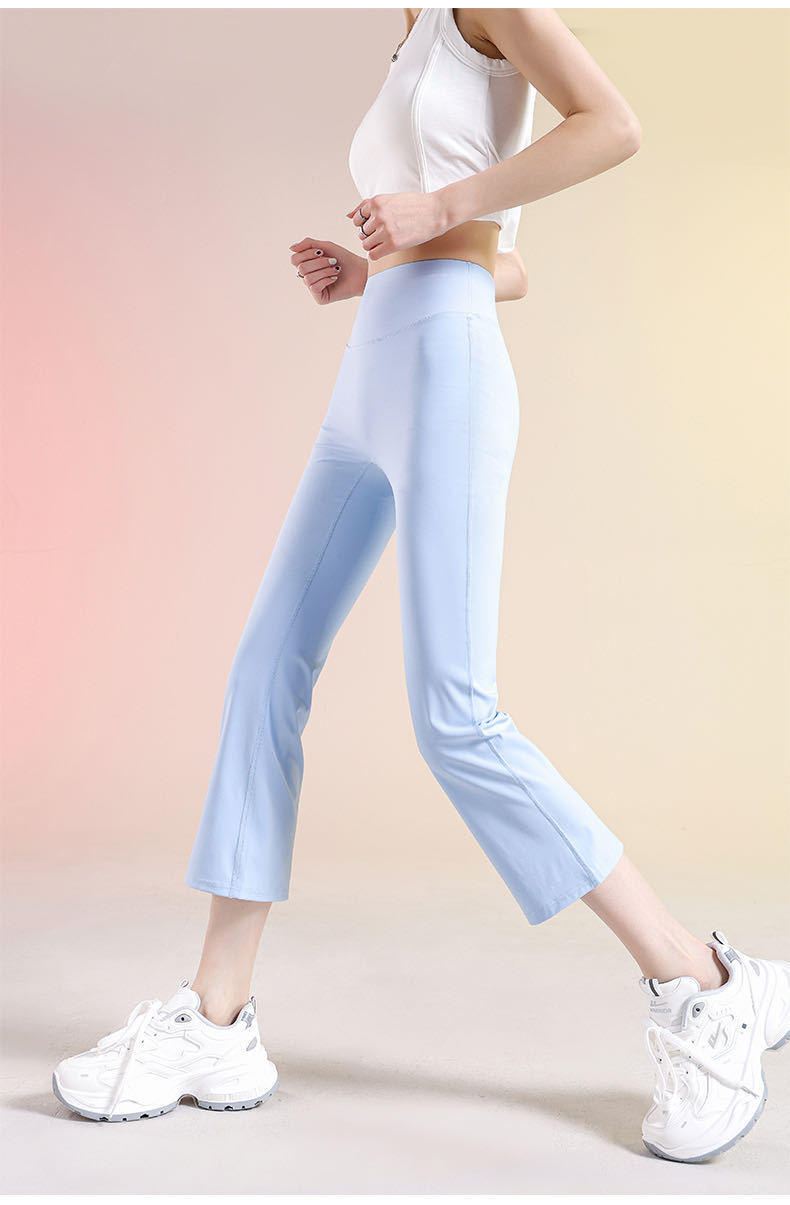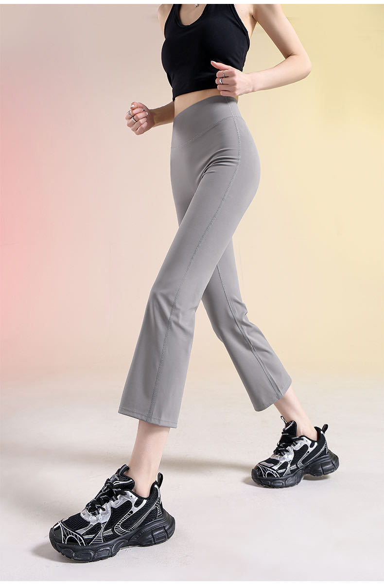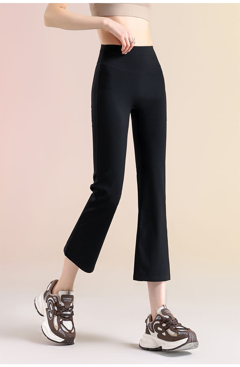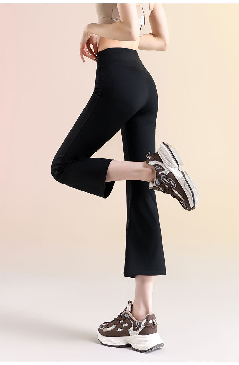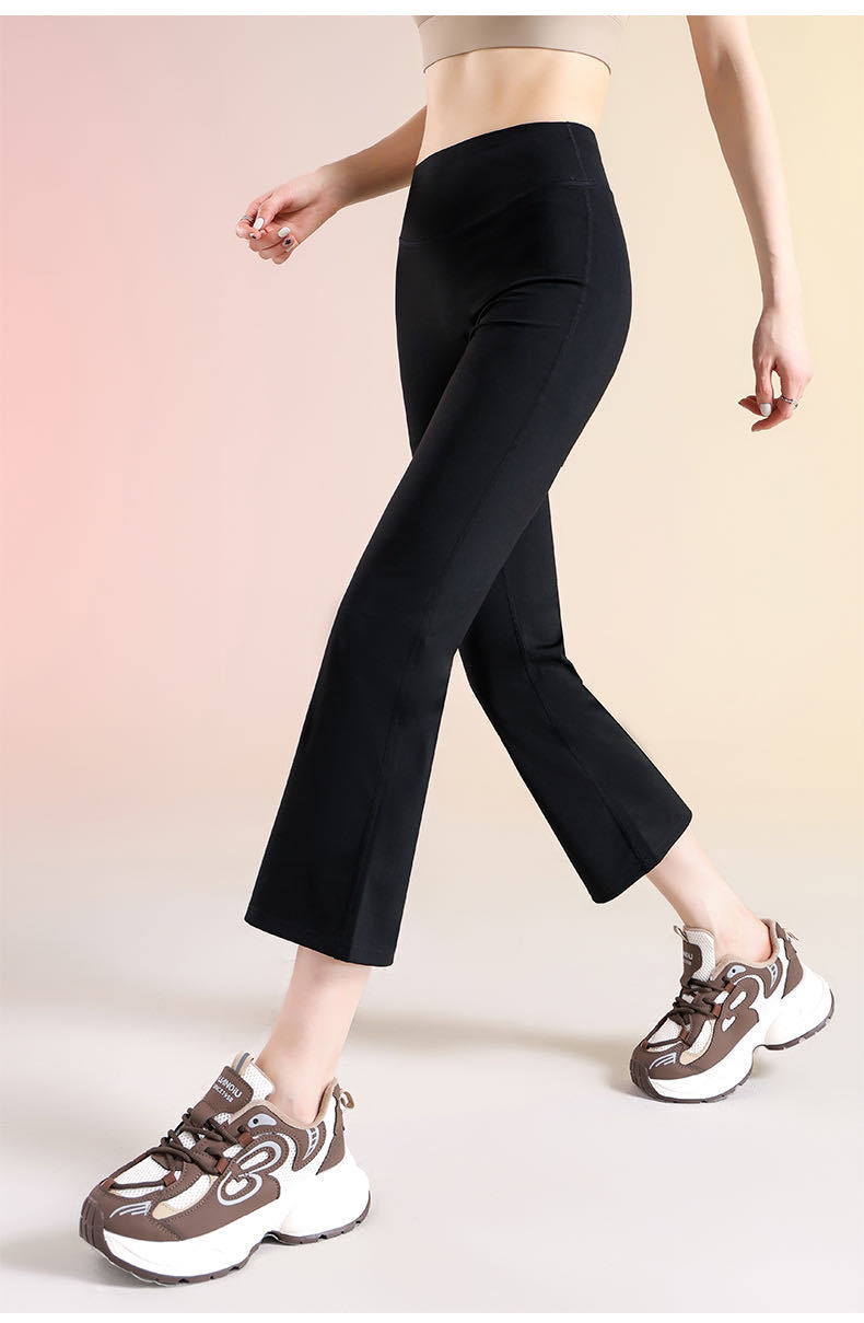 여성용 8부 블랙 마이크로 플레어 요가 팬츠, 봄 신상 하이웨이스트 슬리밍 힙업 효과, 외부 착용 가능, 편안한 라인 없는 레깅스