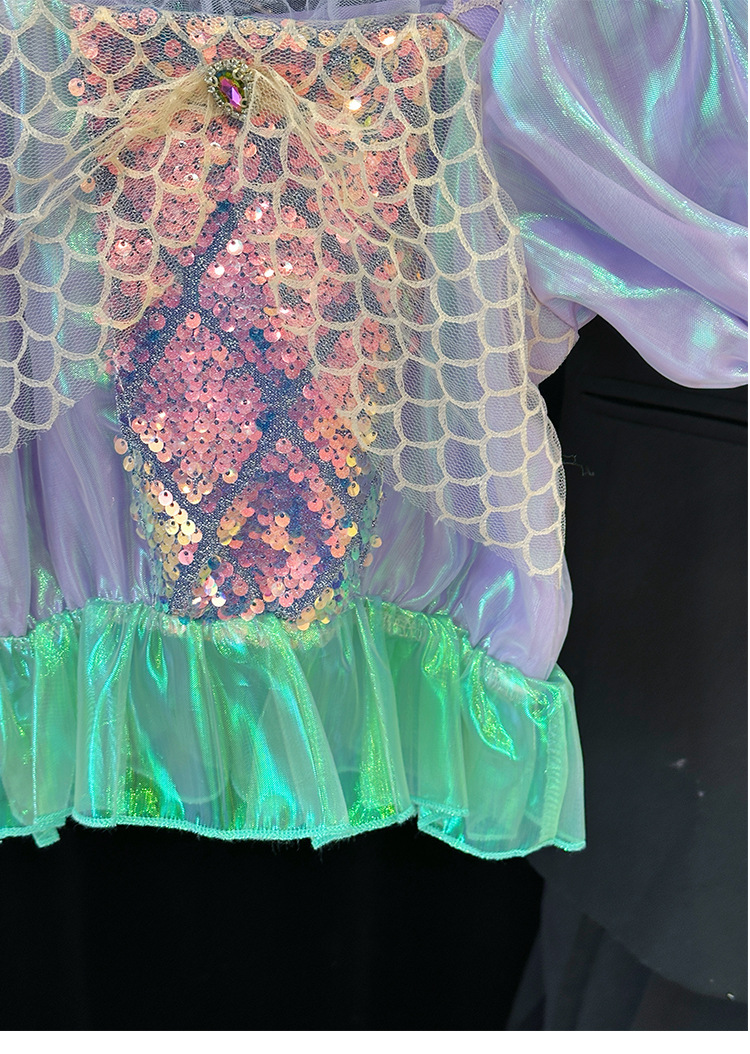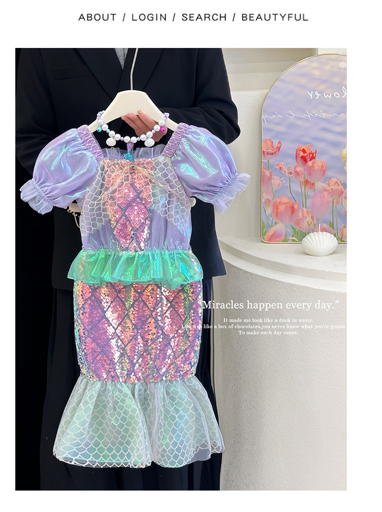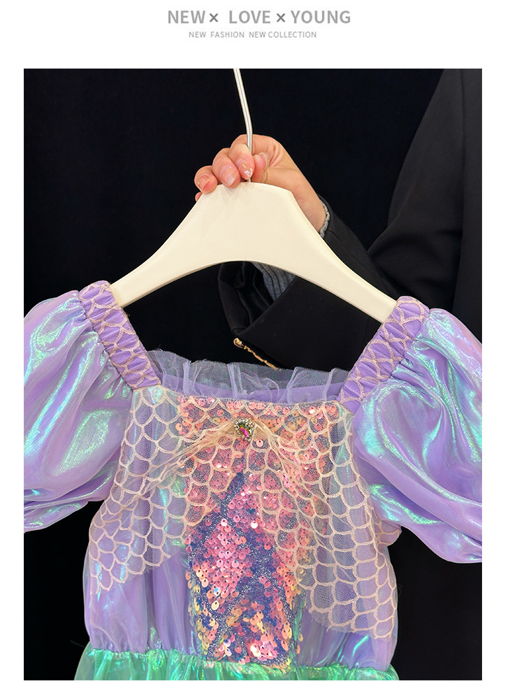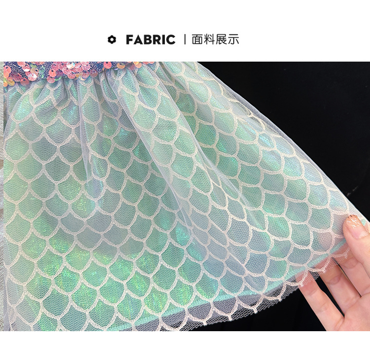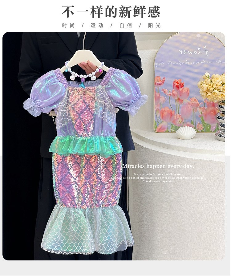 여자 반팔 세트 2025 년 여름 새 어린이 퍼프 소매 탑 스커트 인어 6 일 공연 원피스스토어 가기