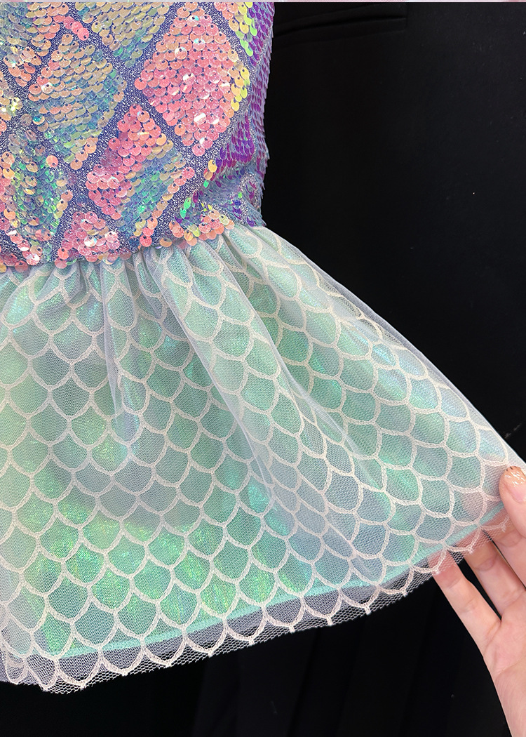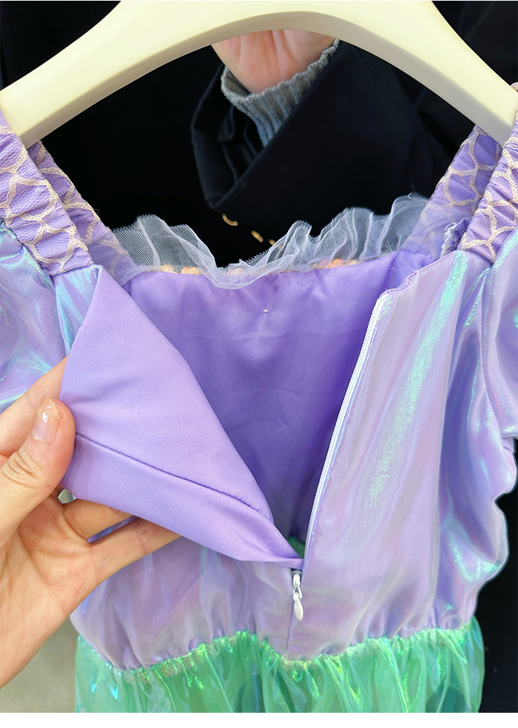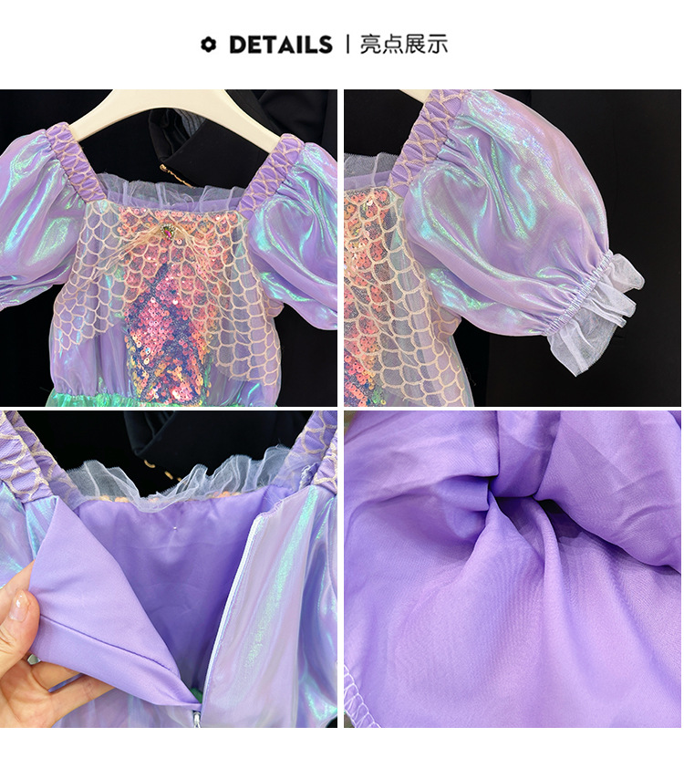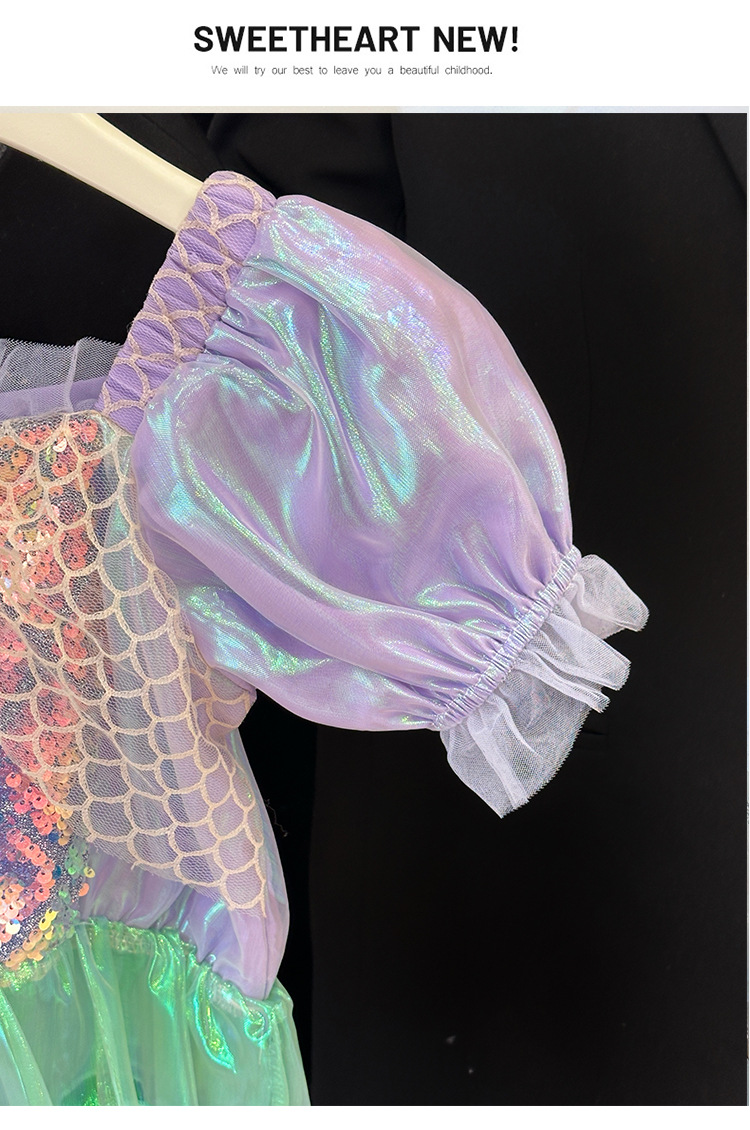 여자 반팔 세트 2025 년 여름 새 어린이 퍼프 소매 탑 스커트 인어 6 일 공연 원피스
