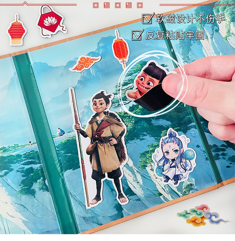 네 접는 마술 아이 자기 조용한 책 만화 퍼즐 DIY 수제 자기 흡입 원피스 업 장면 조용한 책