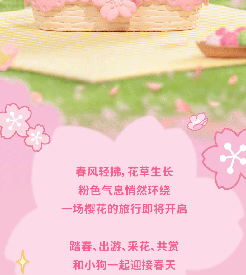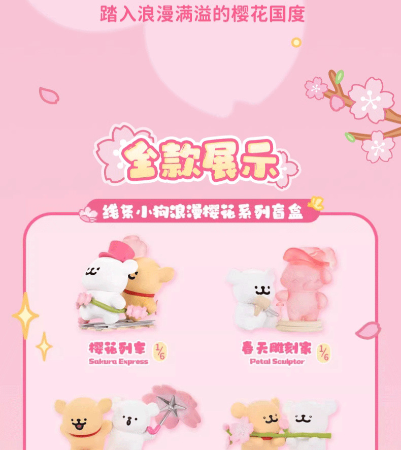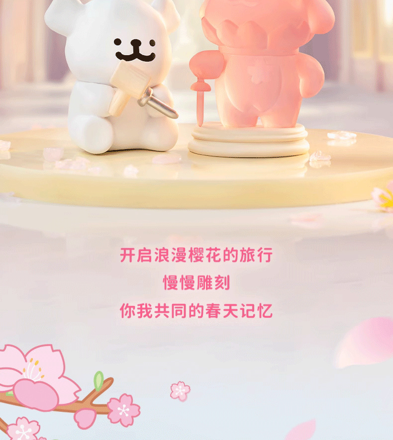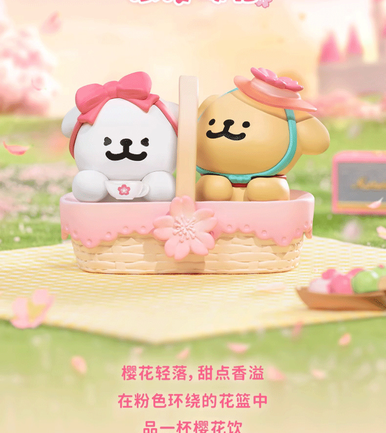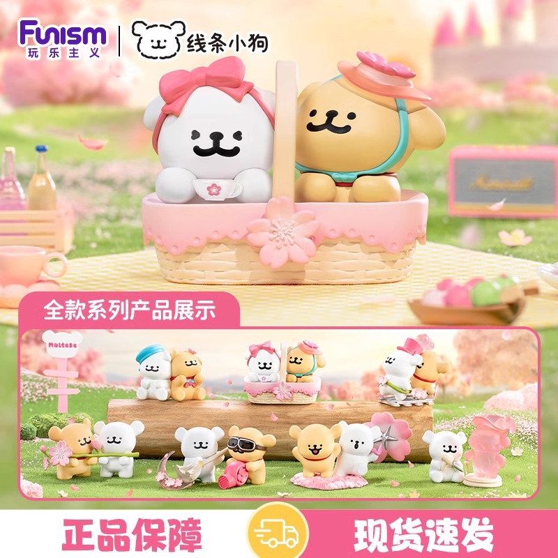 정품 플레이 리즘 라인 강아지 블라인드 박스 로맨틱 벚꽃 주변 손으로 만든 인형 워크 스테이션 인형 장식품 선물스토어 가기