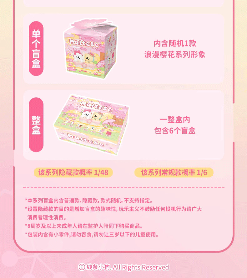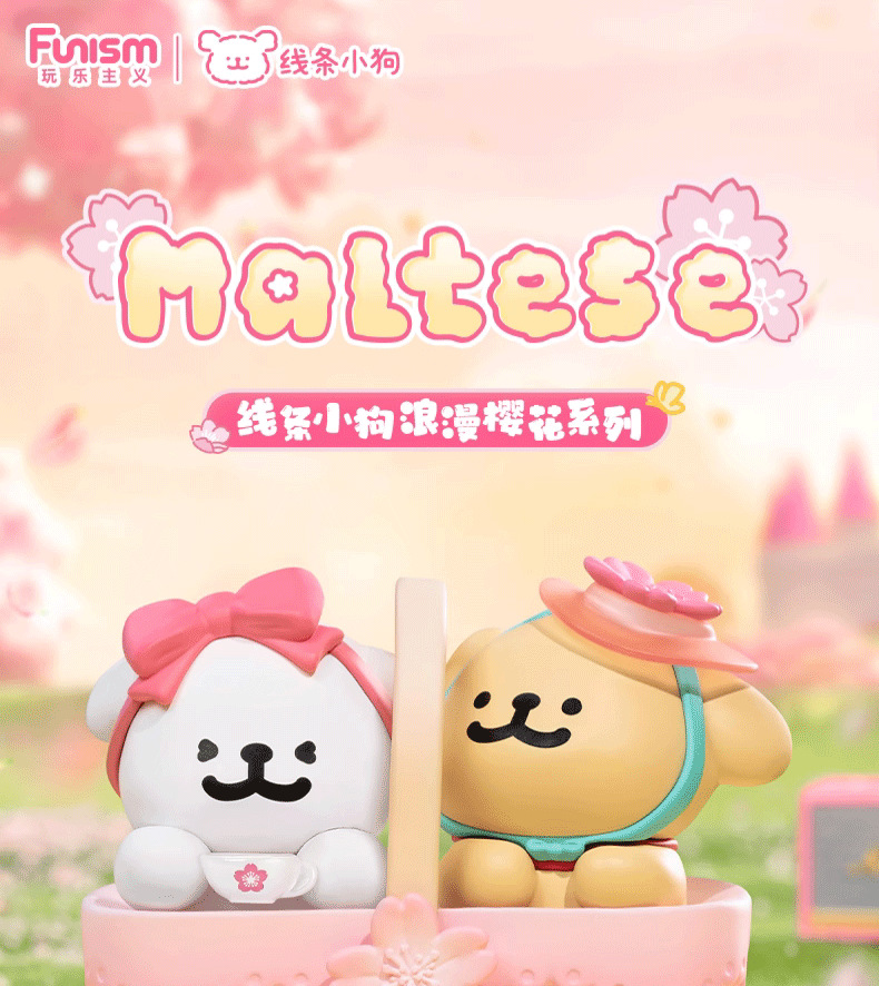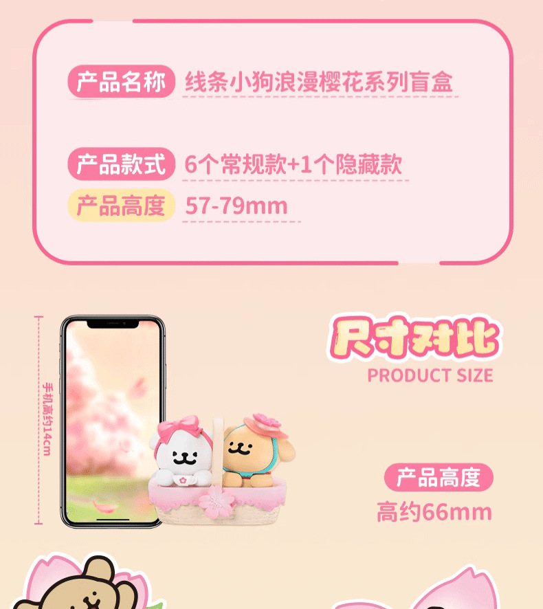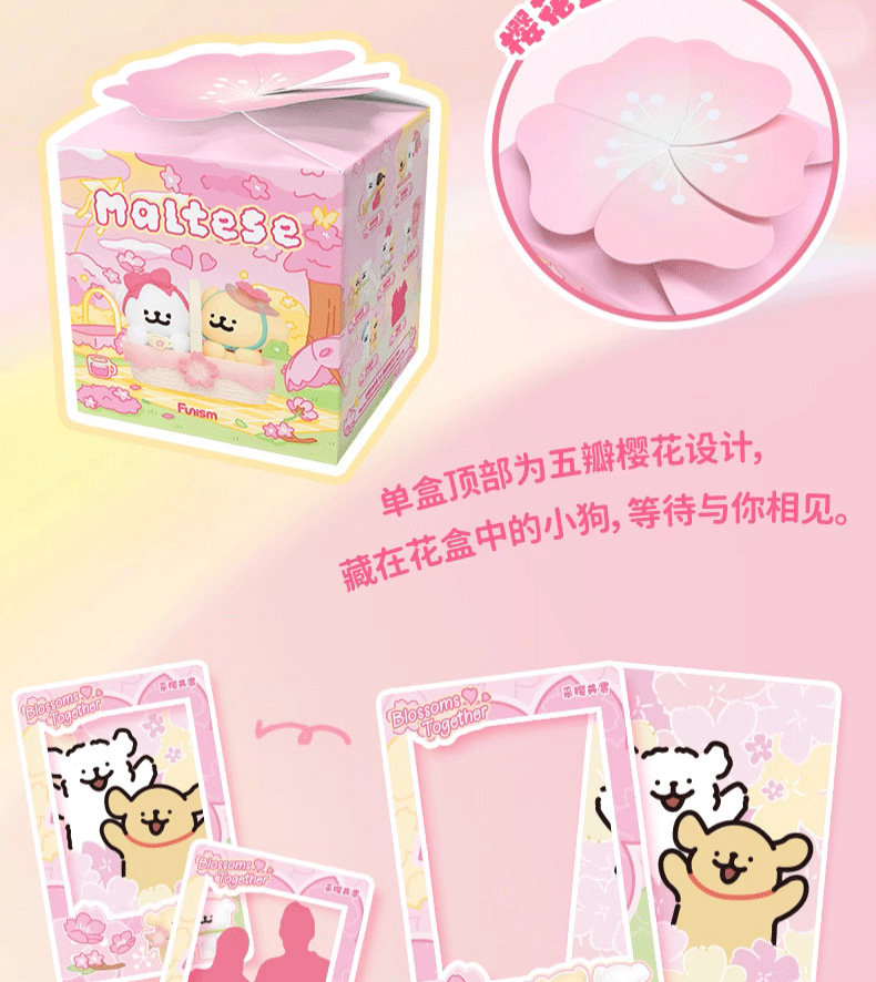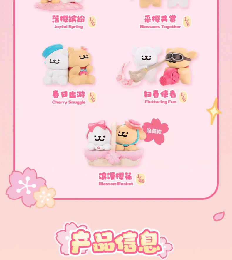 정품 플레이 리즘 라인 강아지 블라인드 박스 로맨틱 벚꽃 주변 손으로 만든 인형 워크 스테이션 인형 장식품 선물스토어 가기