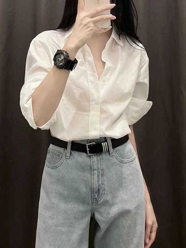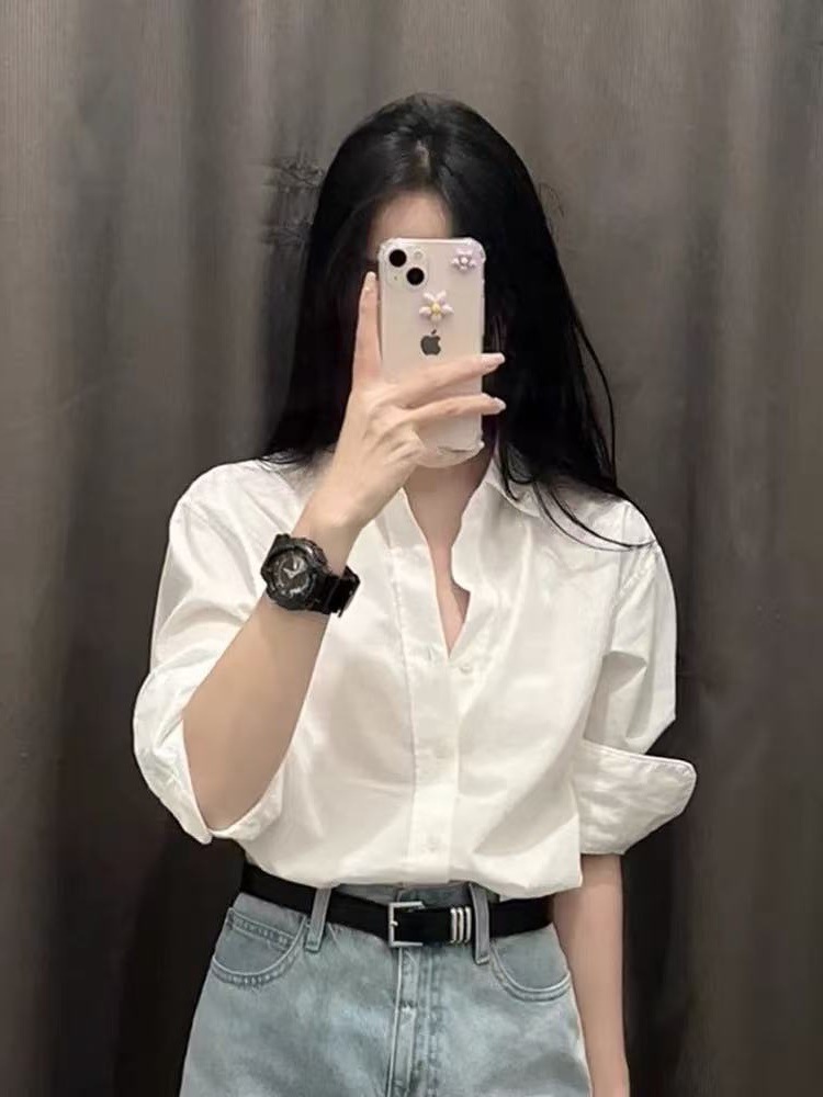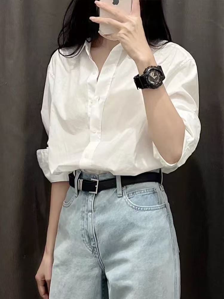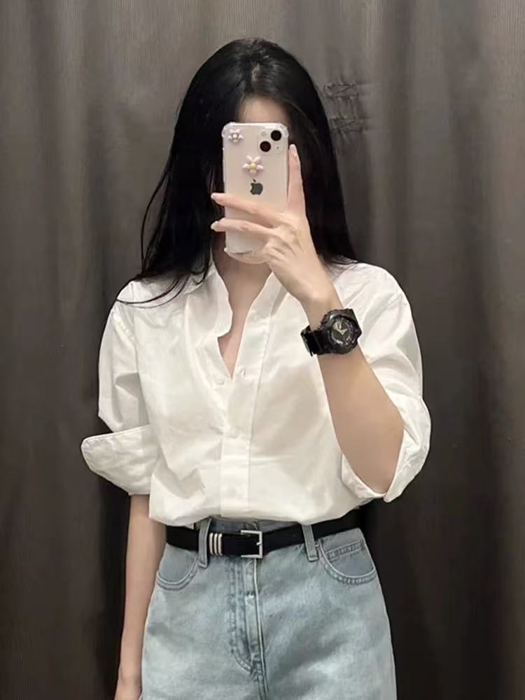 프랑스 스타일 화이트 셔츠 여성의 2025 새로운 봄과 여름 느슨한 긴 소매 셔츠 스몰 사이즈 전문 통근 탑스토어 가기