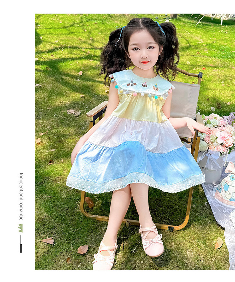 여자 드레스 여름 새 스타일 아기 소녀 유행 색상 일치 자수 연꽃 잎 칼라 케이크 드레스 여자 조끼 드레스 유행