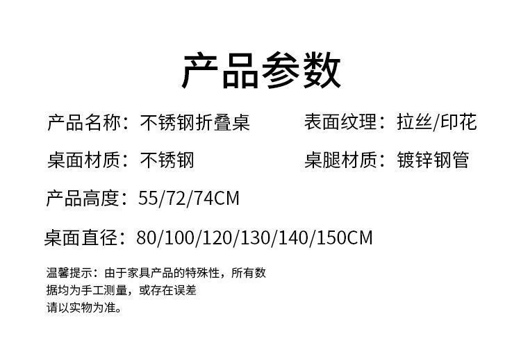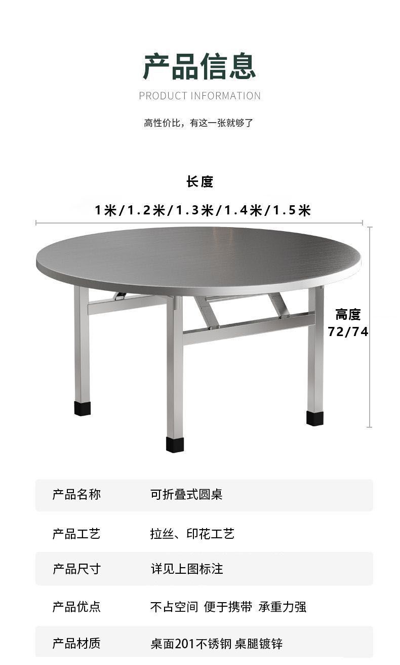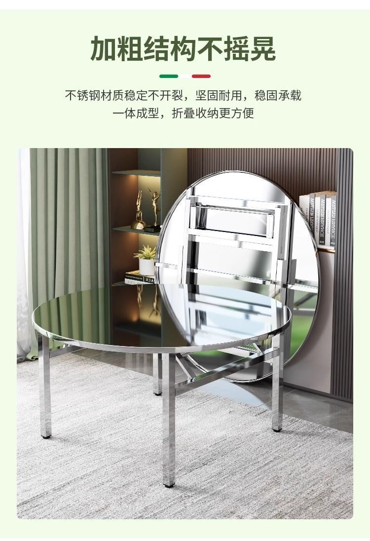 가정용 대형 기어 스테인레스 스틸 테이블 멀티 사용 바베큐 식사를위한 두꺼운 접이식 라운드 테이블 스톨 스테인레스 스틸 테이블