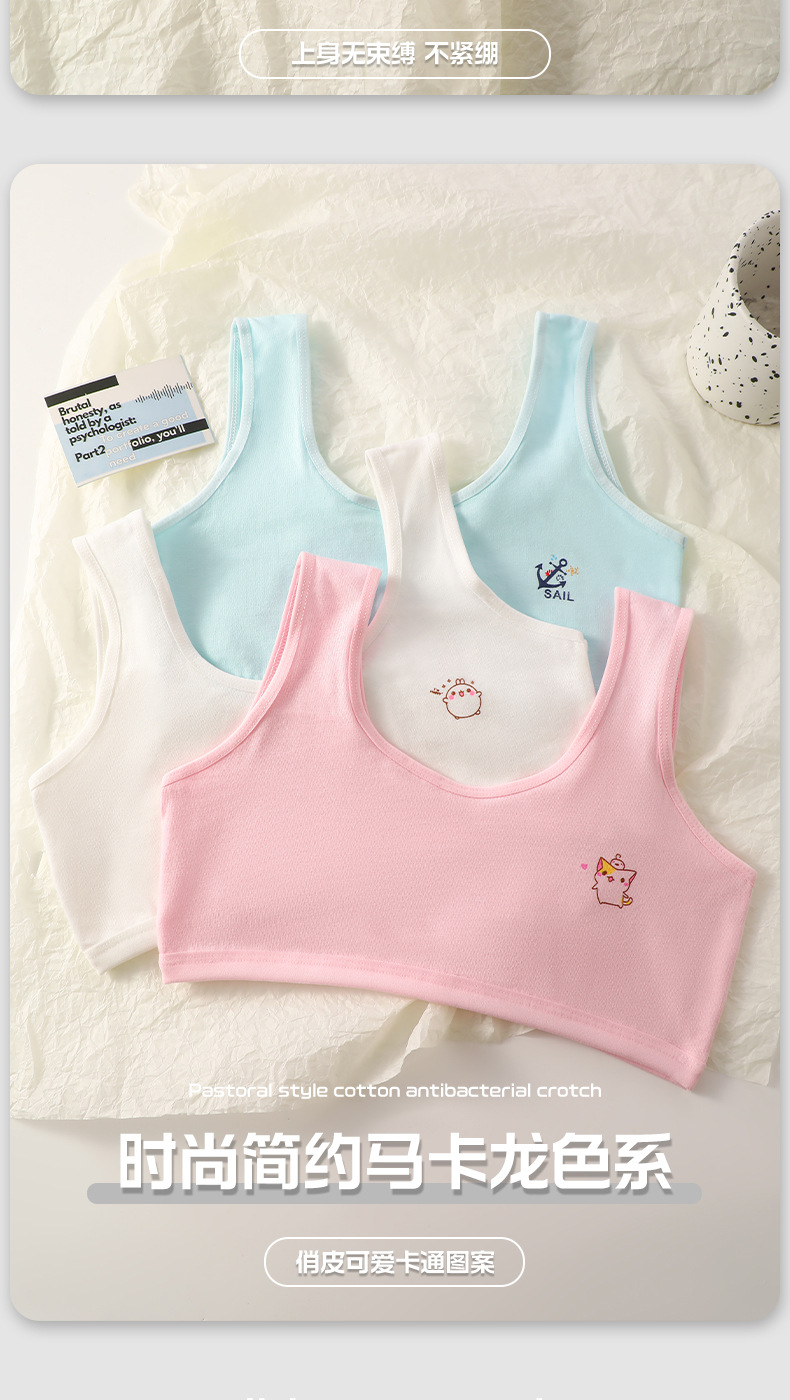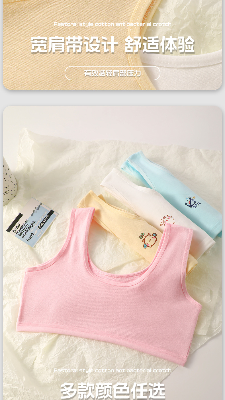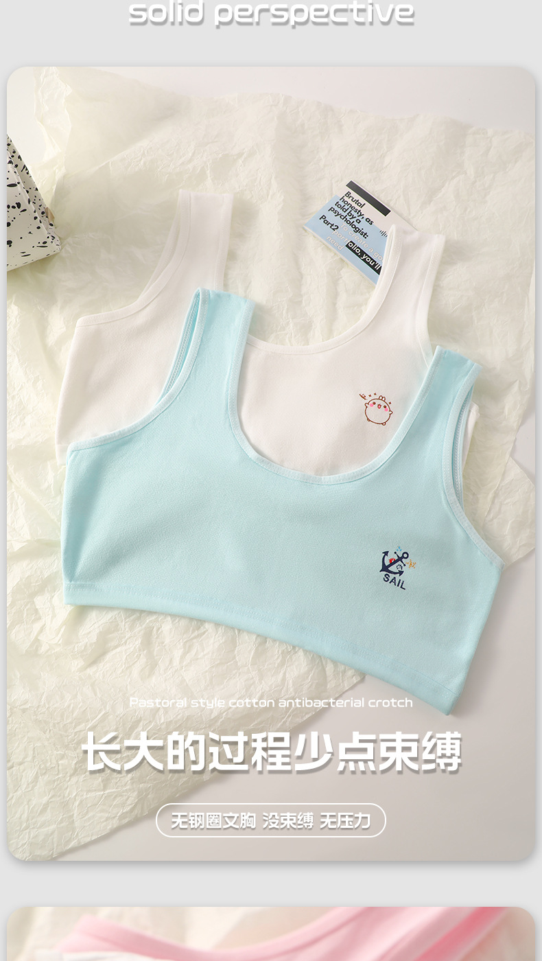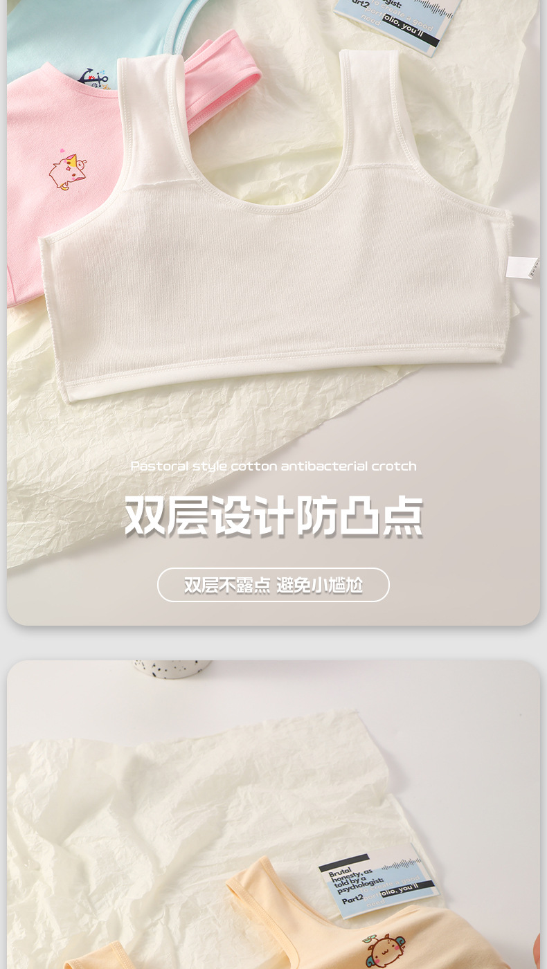 여아 속옷 여름 어린이 이중층 발달 기간 초등학생 소녀 조끼 노출 방지, 편안하고 통기성