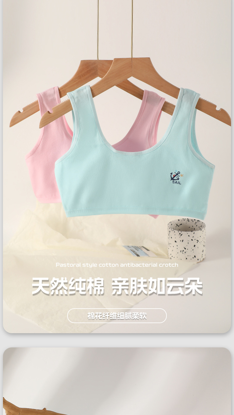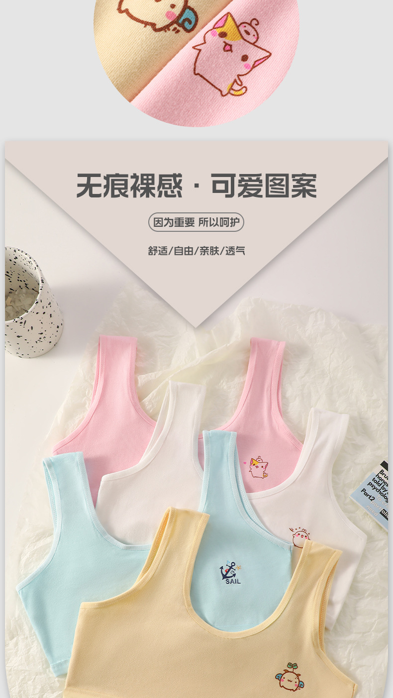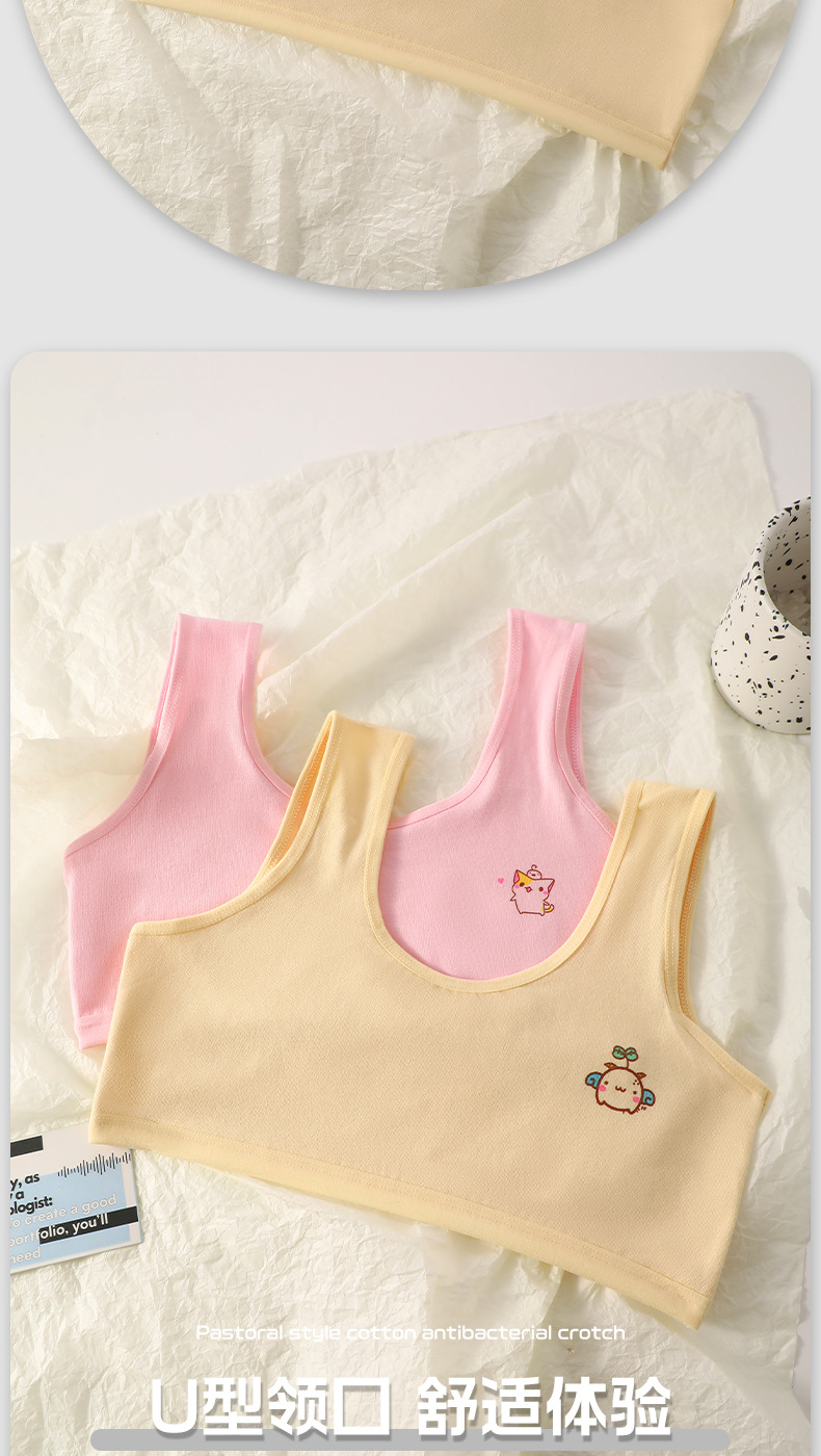 여아 속옷 여름 어린이 이중층 발달 기간 초등학생 소녀 조끼 노출 방지, 편안하고 통기성스토어 가기