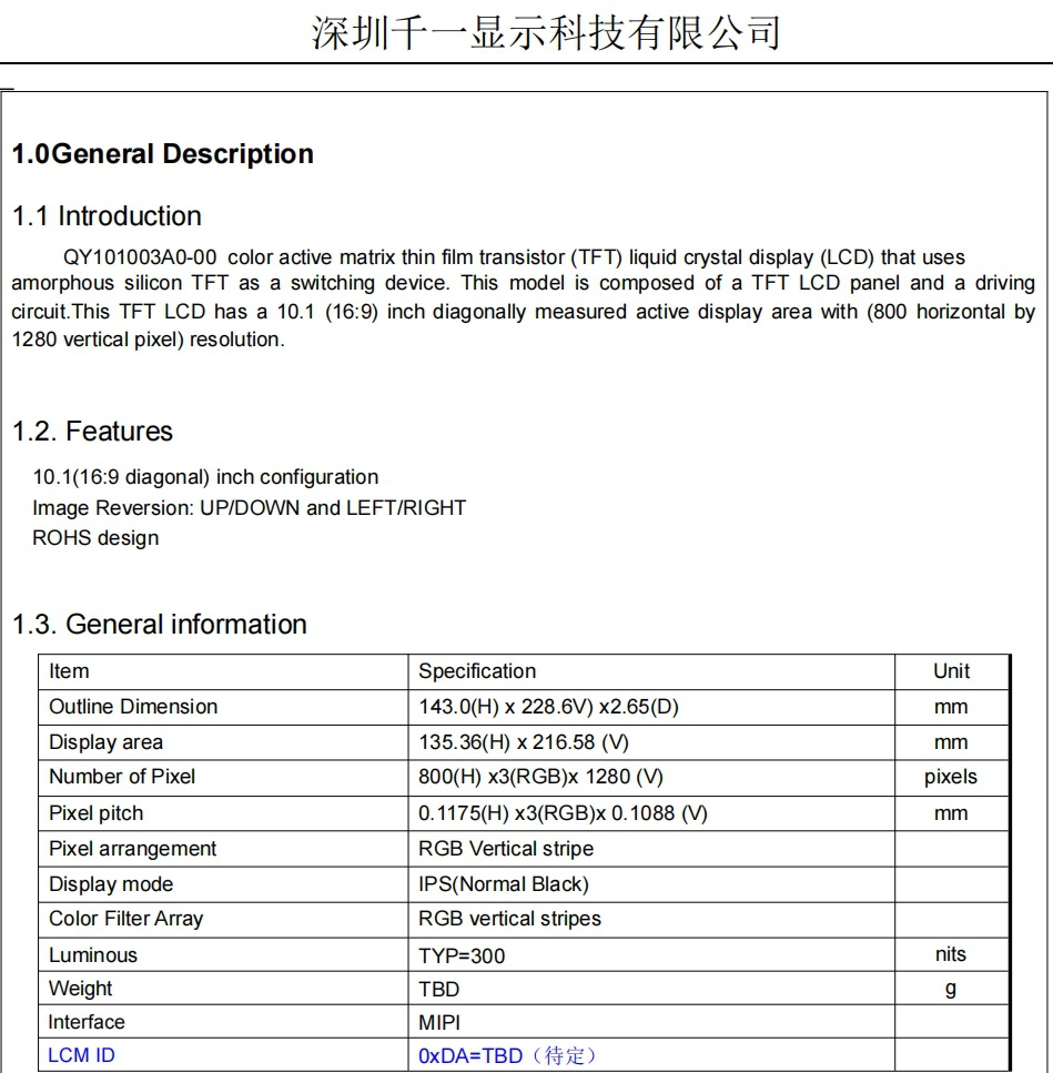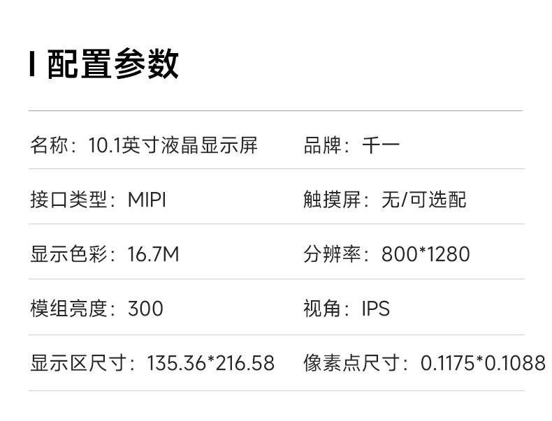 10.1inch LCD LCD 디스플레이 TFT 스크린 MIPI 인터페이스 800*1280 휴대용 LCD 디스플레이 모듈
